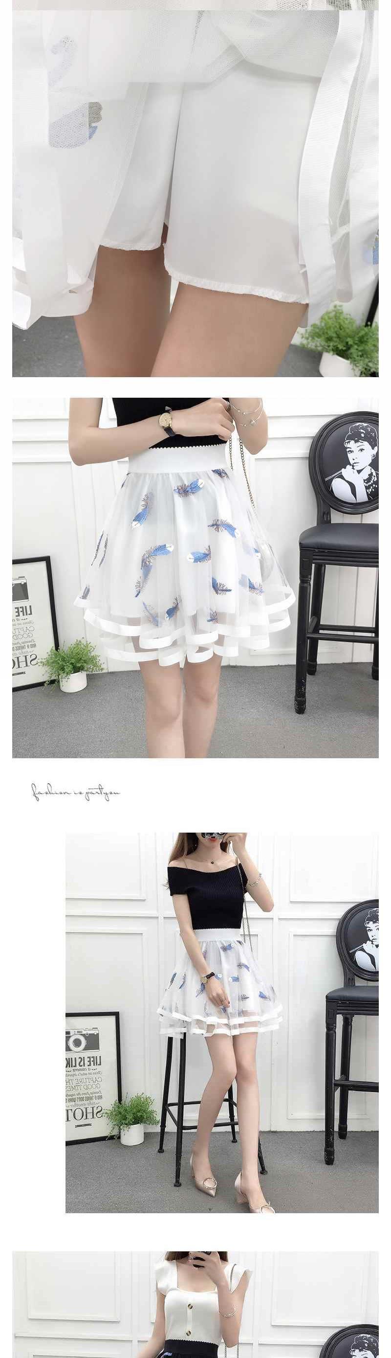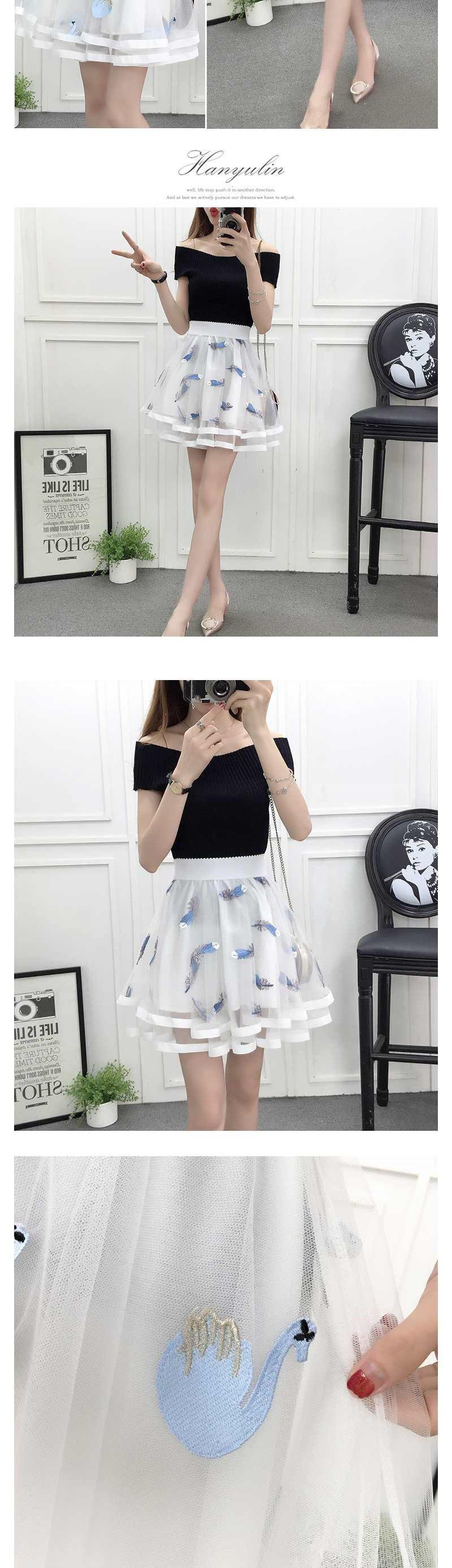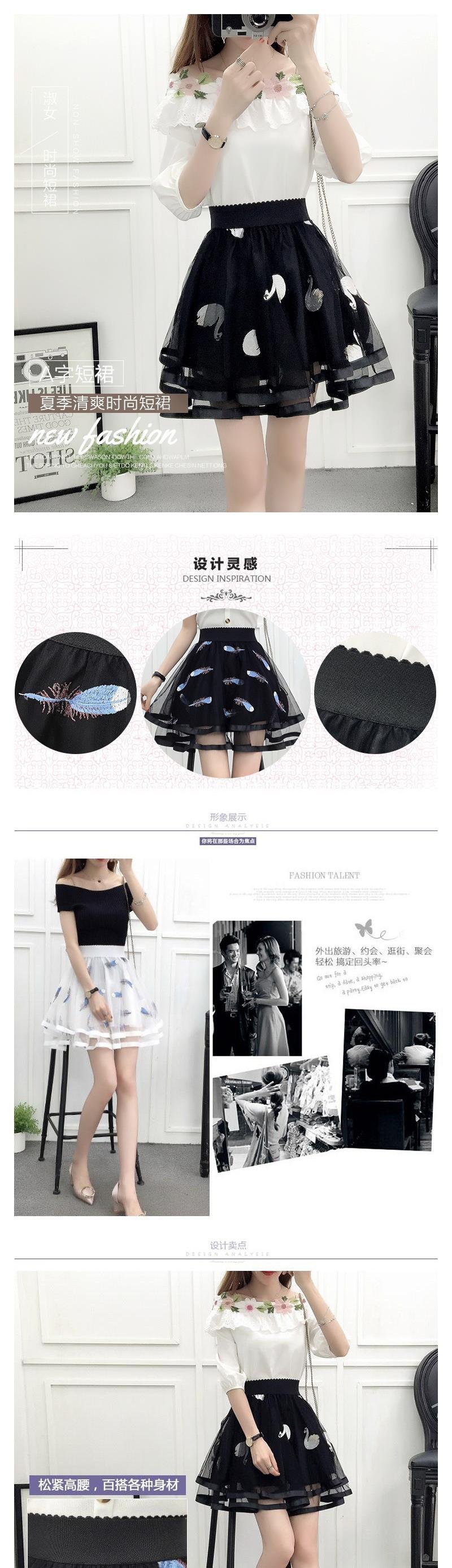 2024 Nuevo Estilo de Verano Cintura Elástica Versátil Falda Tutú Bordada Línea A Cintura Alta Falda de Malla