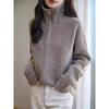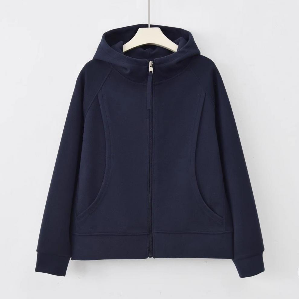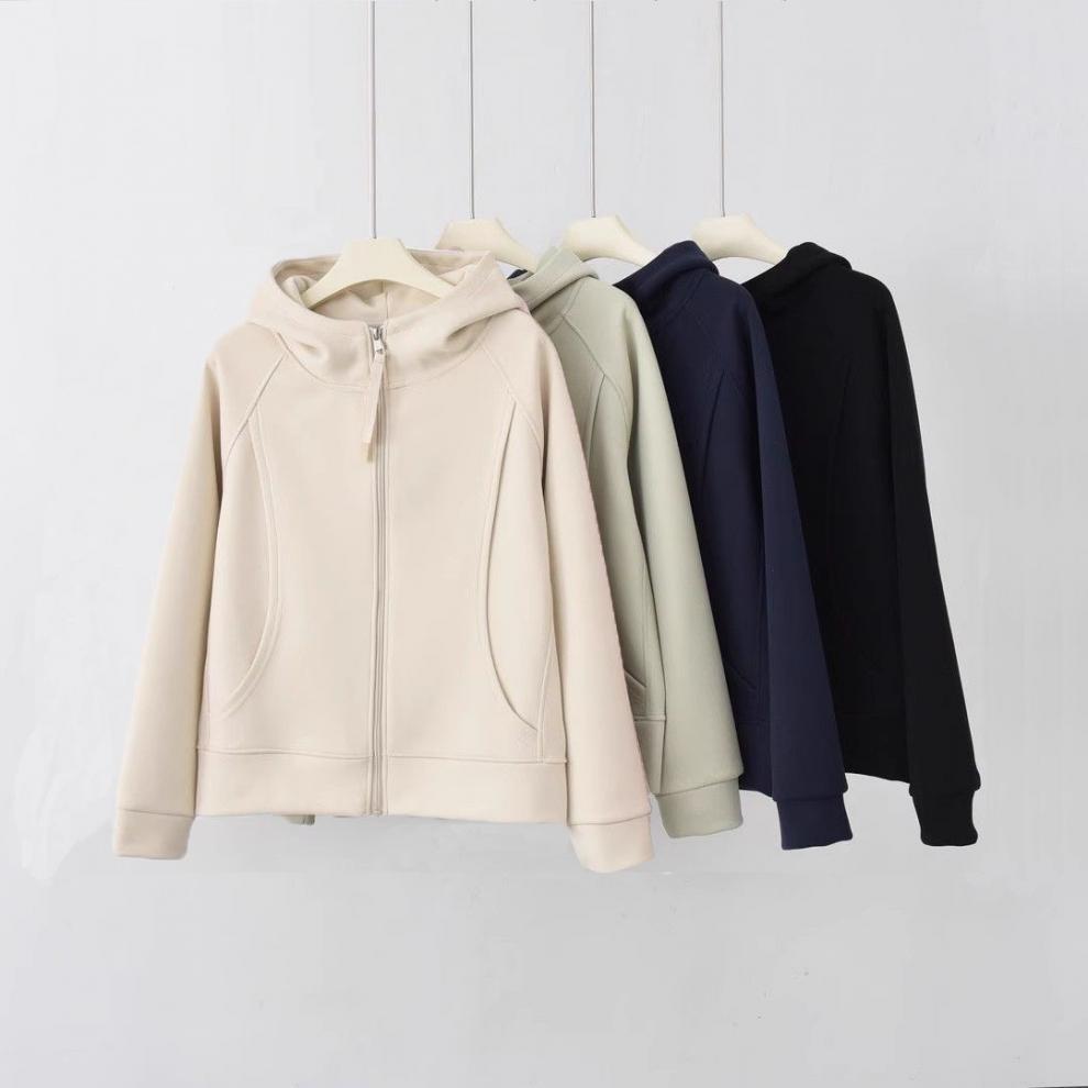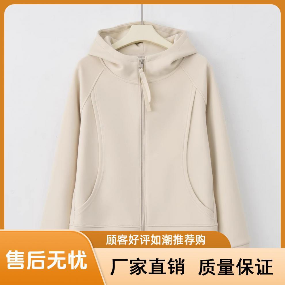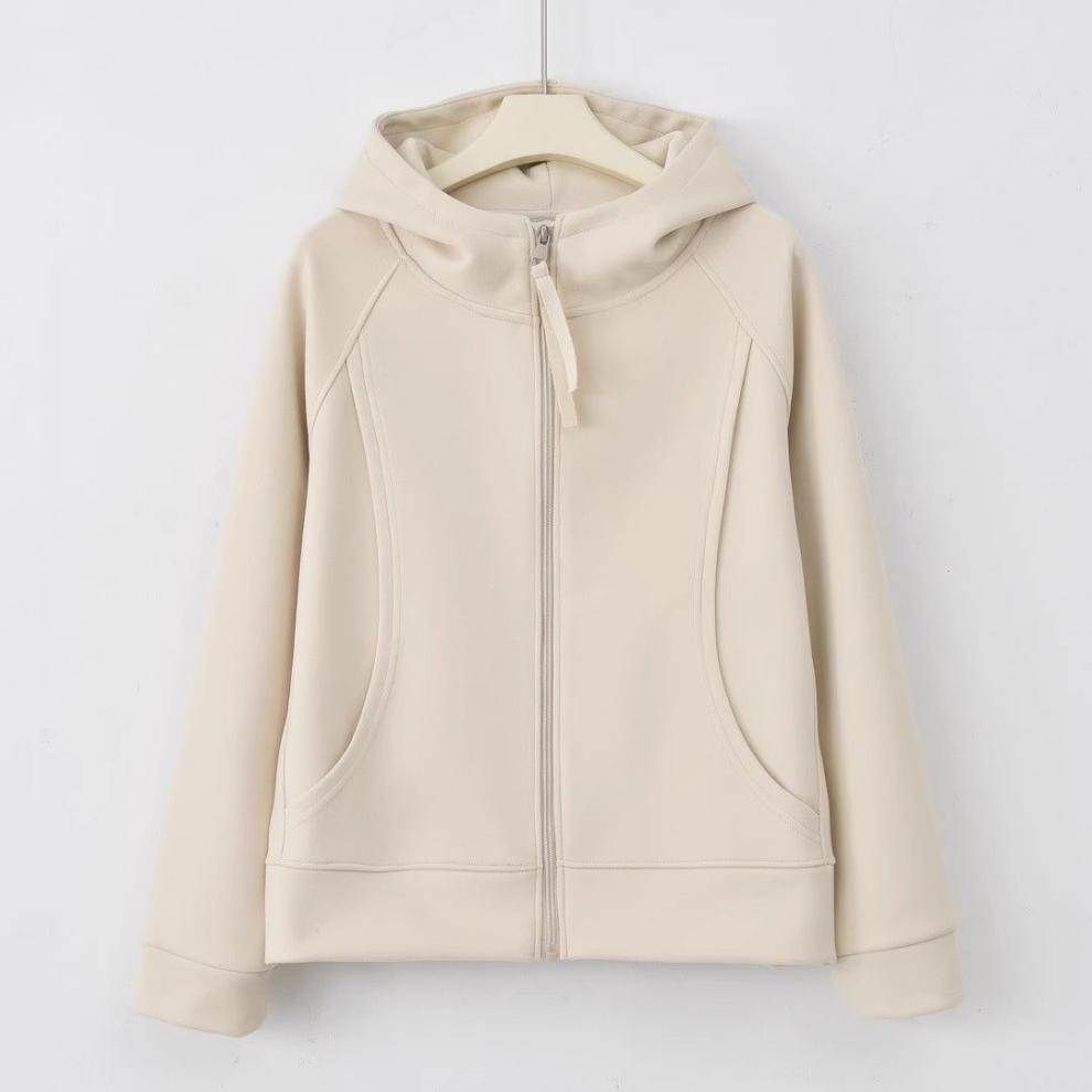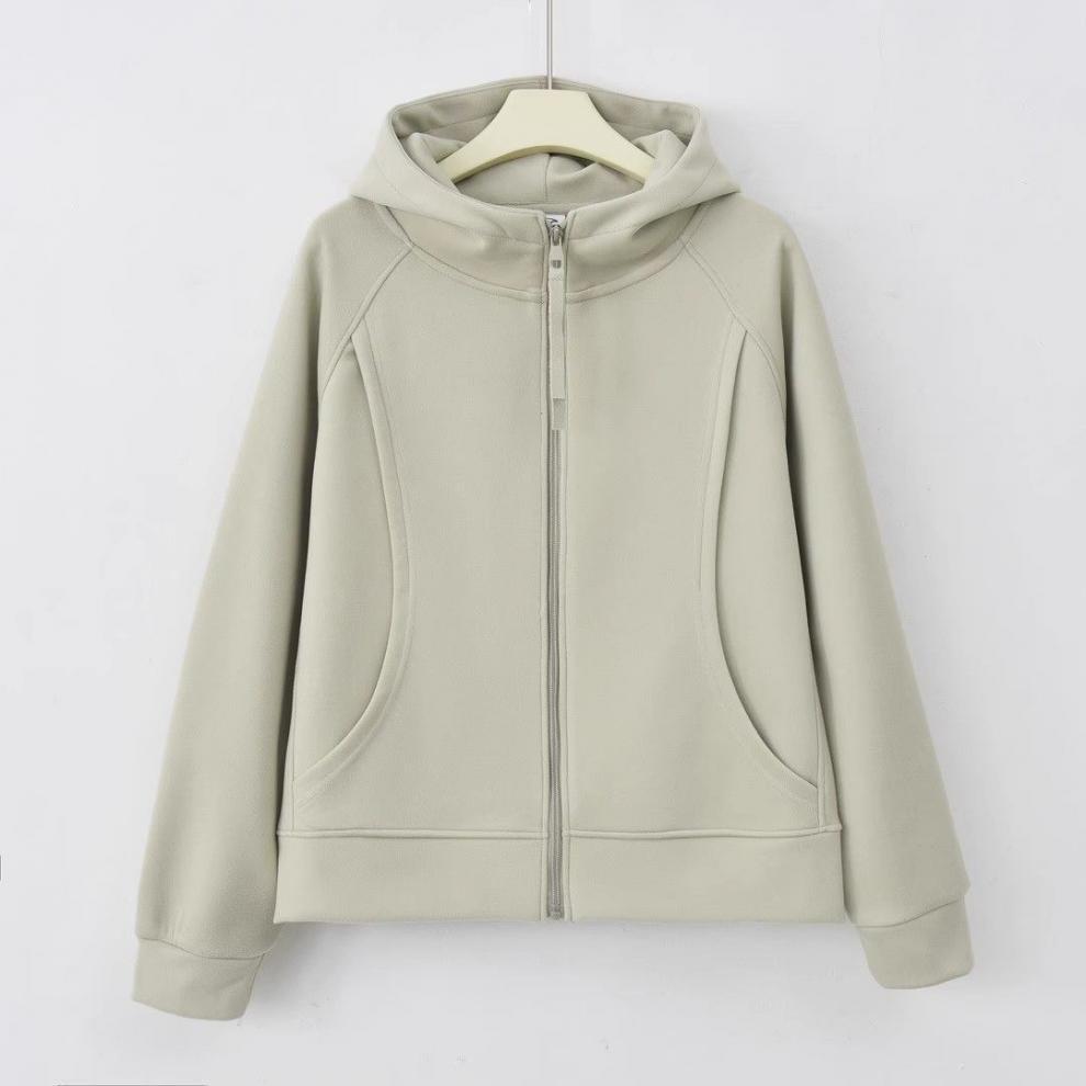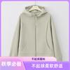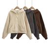 Otoño e Invierno Nuevo Cárdigan con Cremallera Color Sólido Suéter Elegante Engrosado Cálido Deportivo Manga Larga Costuras Top con Capucha para Mujer