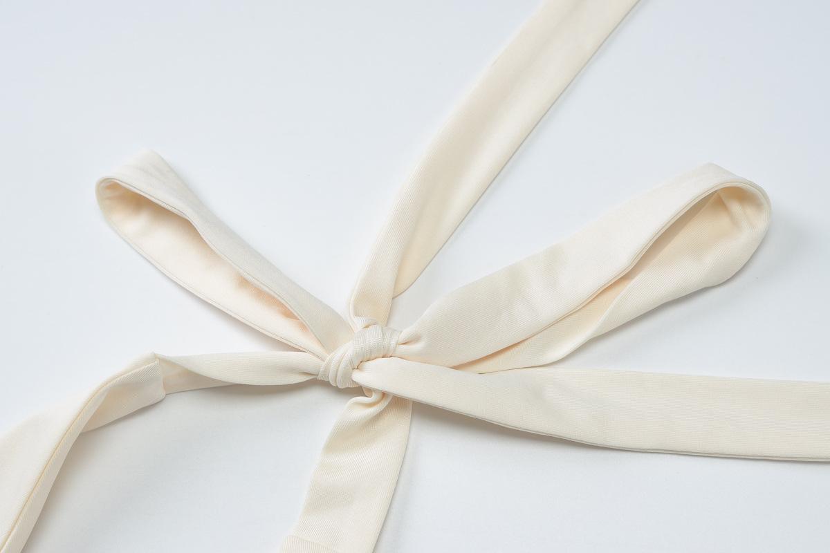 2025 Otoño Nuevo Estilo Europeo y Americano Ropa de Mujer Color Sólido Adorno de Encaje Espalda Descubierta Ajustado Patchwork Un Hombro Anudar Top Corto Mujer