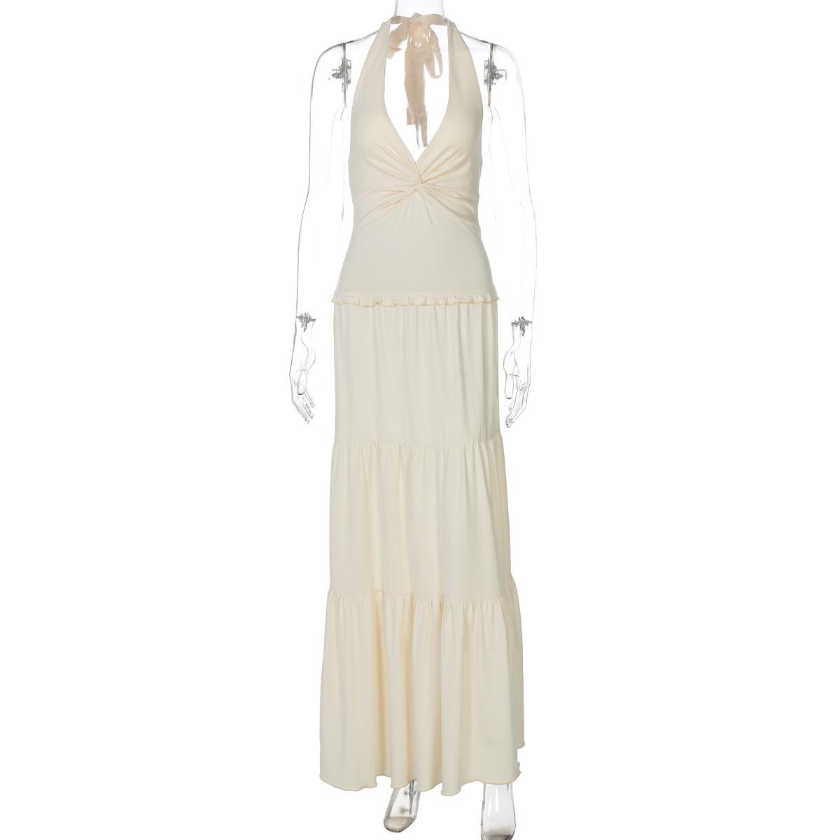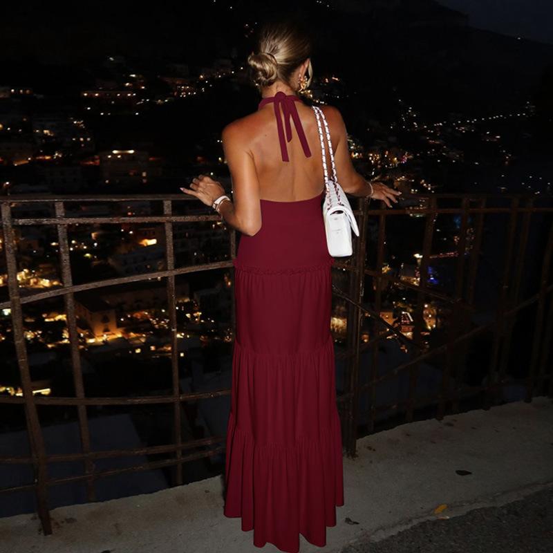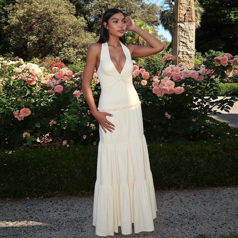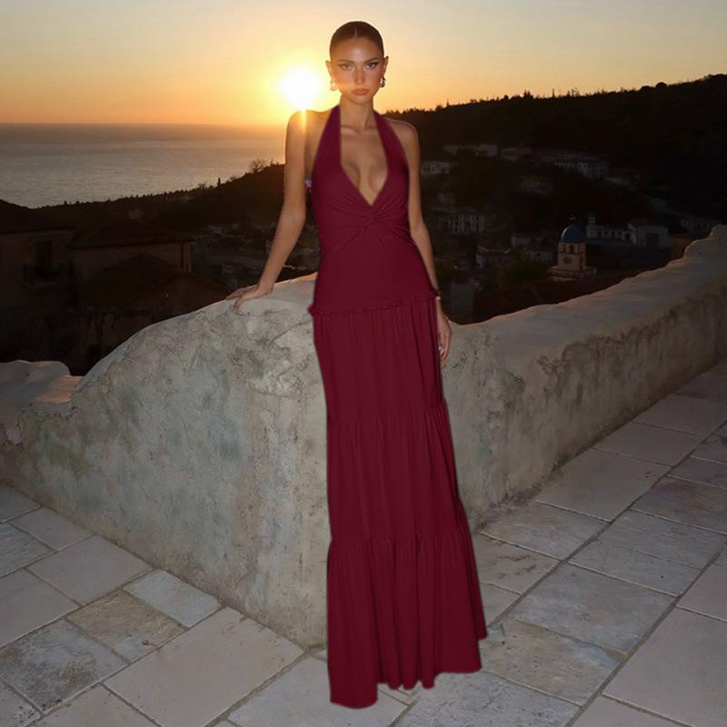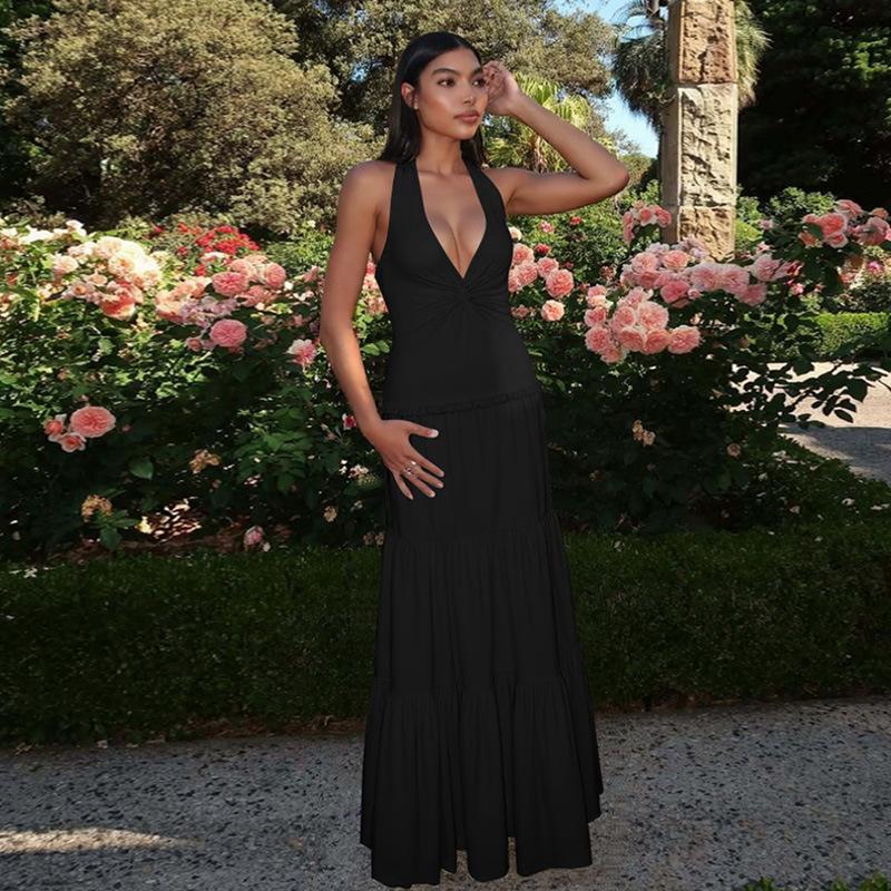 Amazon Transfronterizo Más Vendido Nueva Moda Temperamento Sexy Cuello Caído Sin Espalda Largo Ajustado Empalmado Vendaje Vestido