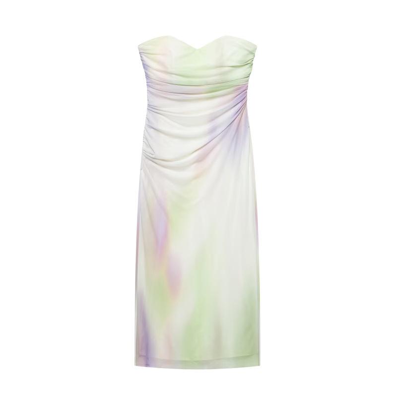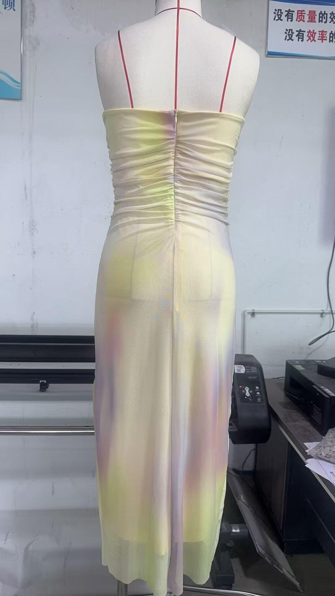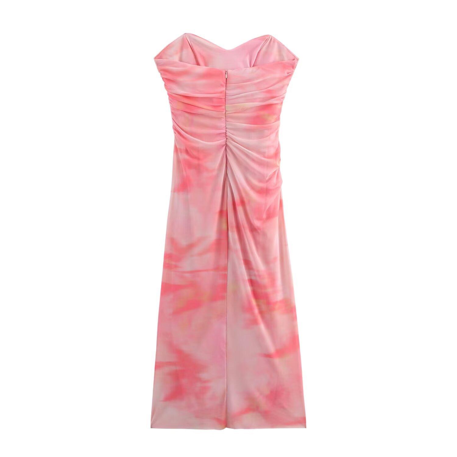 Aliexpress Transfronterizo Ropa Europea y Americana al por Mayor 2025 Principios de Primavera Nuevo Vestido Tubo de Malla de Seda Estampada
