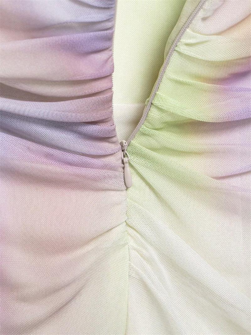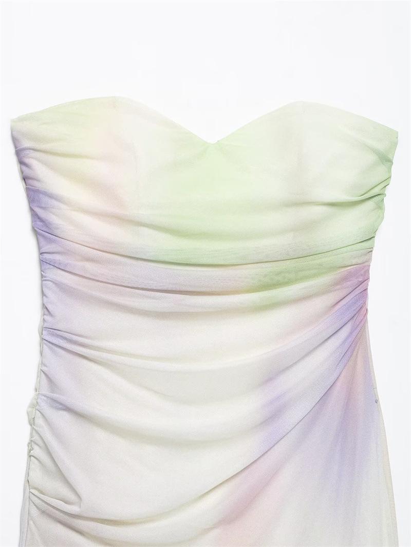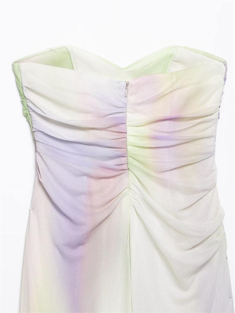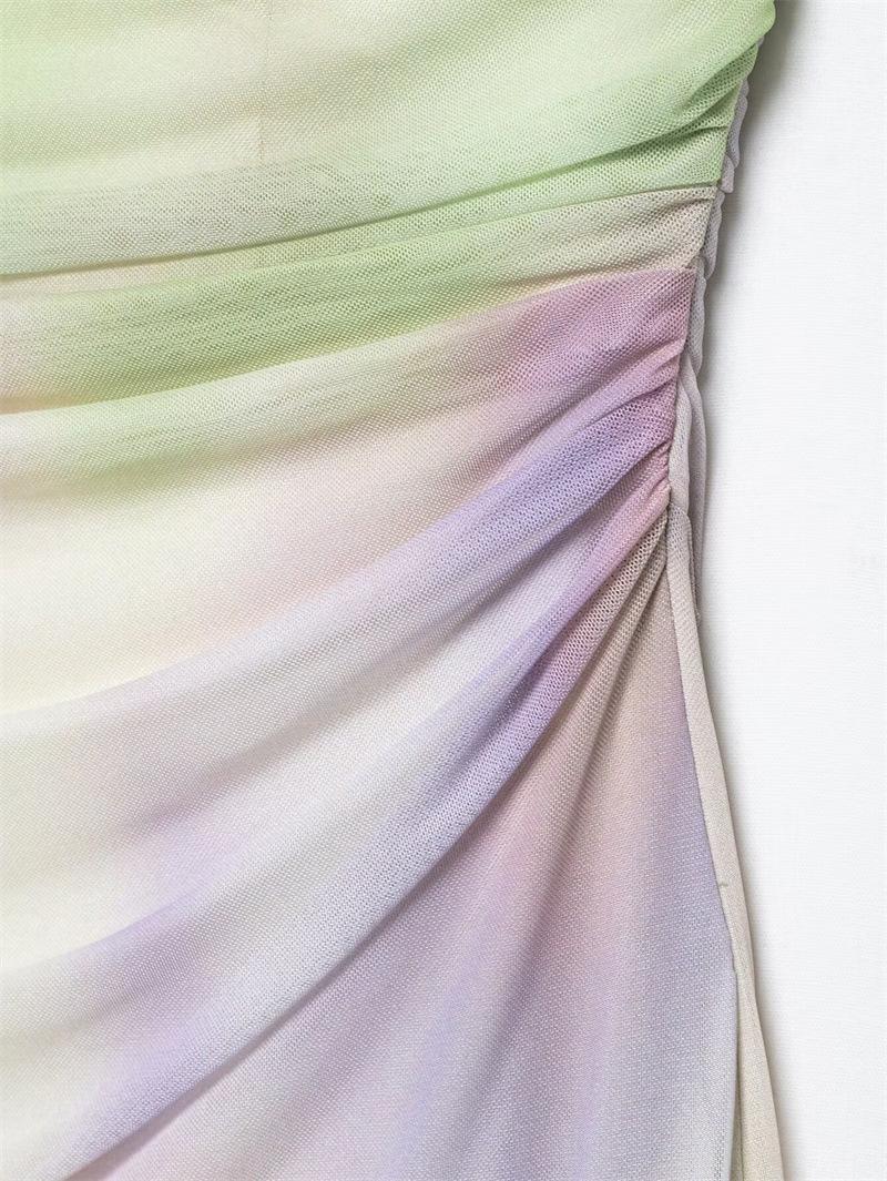 Aliexpress Transfronterizo Ropa Europea y Americana al por Mayor 2025 Principios de Primavera Nuevo Vestido Tubo de Malla de Seda Estampada