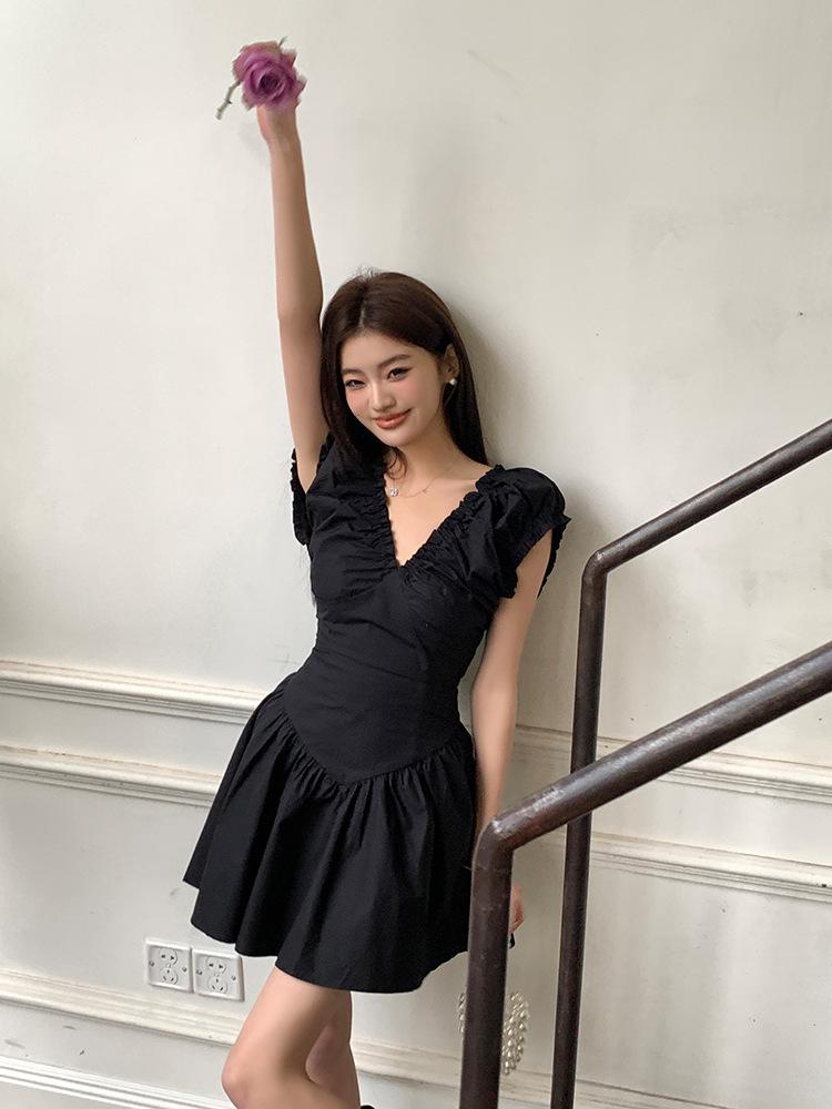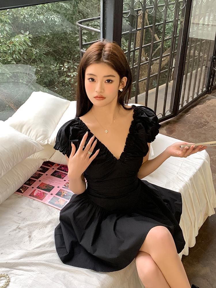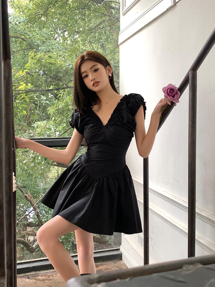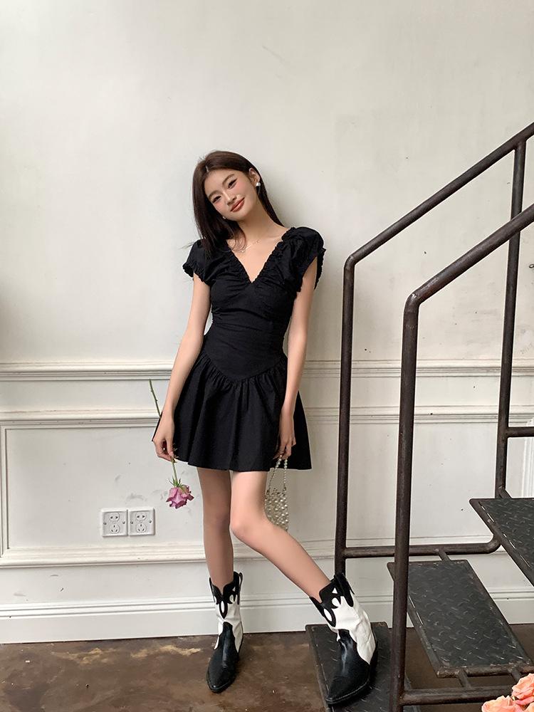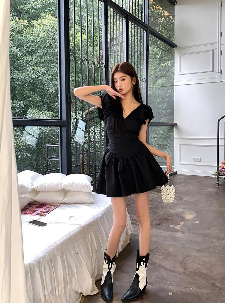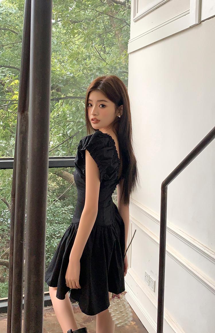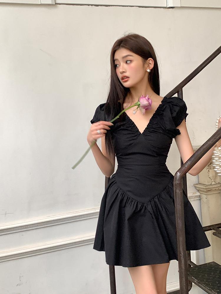 Foto Real de Vestido Francés de Diseño Nuevo de Primavera y Verano 2025 para Mujer con Cintura Plisada que Afina la Figura, Vestido Dulce de Princesa de Hada