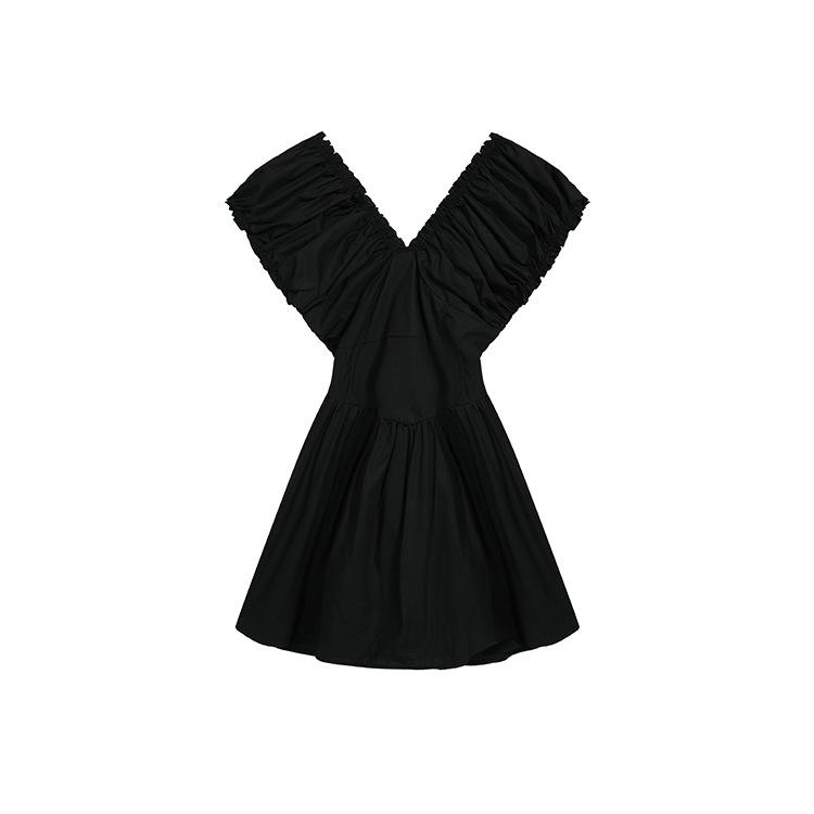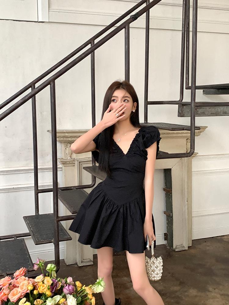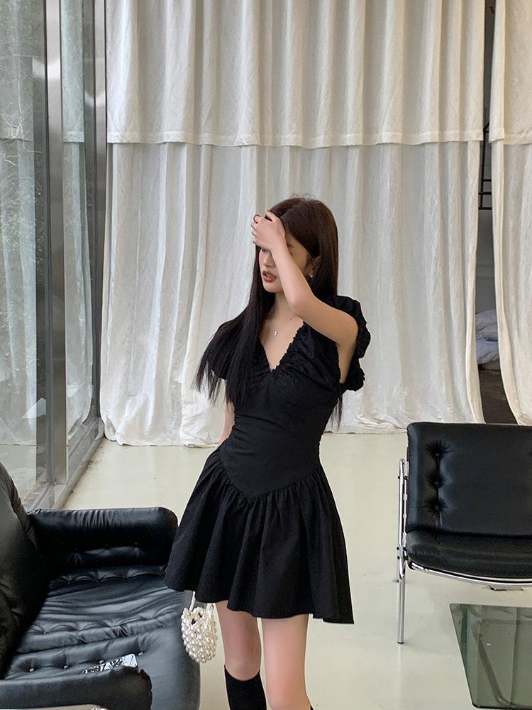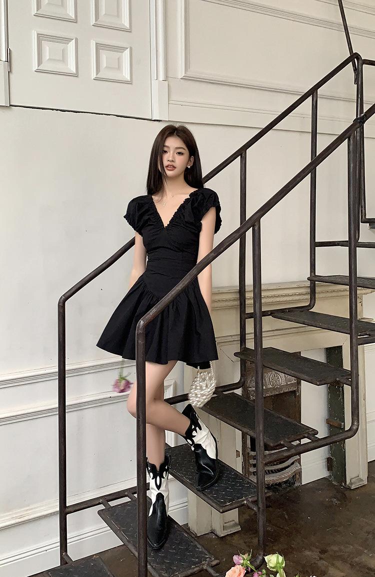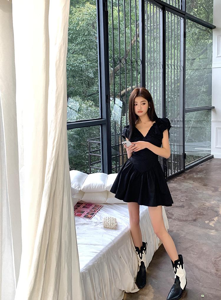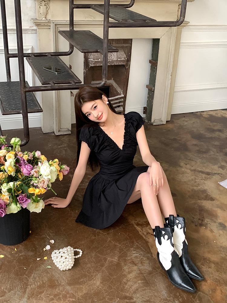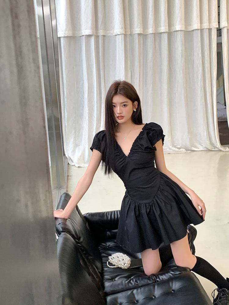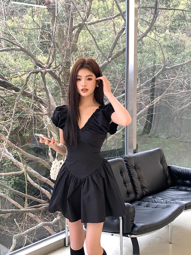 Foto Real de Vestido Francés de Diseño Nuevo de Primavera y Verano 2025 para Mujer con Cintura Plisada que Afina la Figura, Vestido Dulce de Princesa de Hada