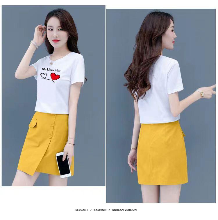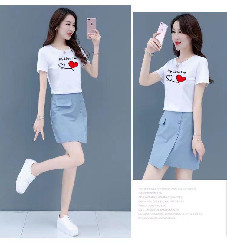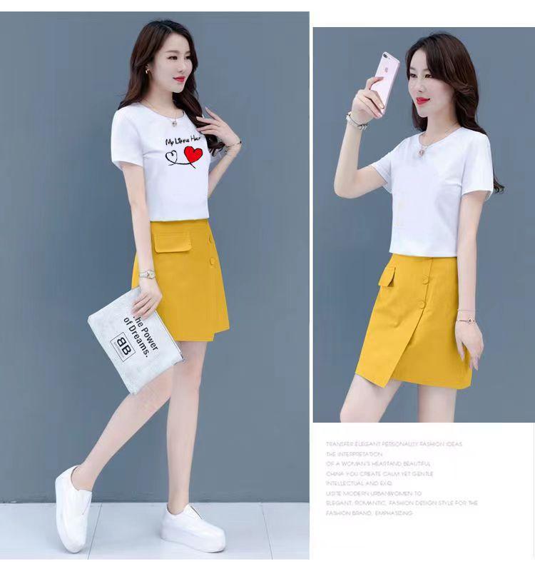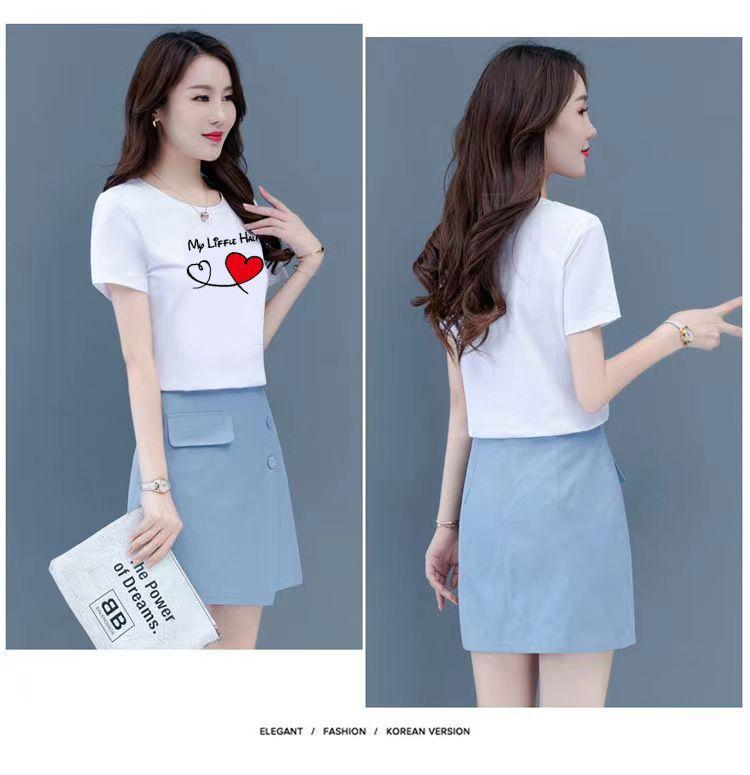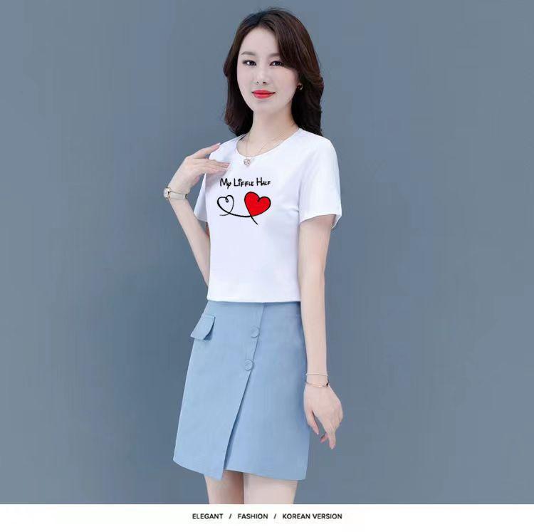 Traje de Falda Corta de Verano para Personas Pequeñas, Traje de Moda Nueva para Mujer, Falda Estilo Occidental, Camiseta, Conjunto de Dos Piezas, Falda de Mujer