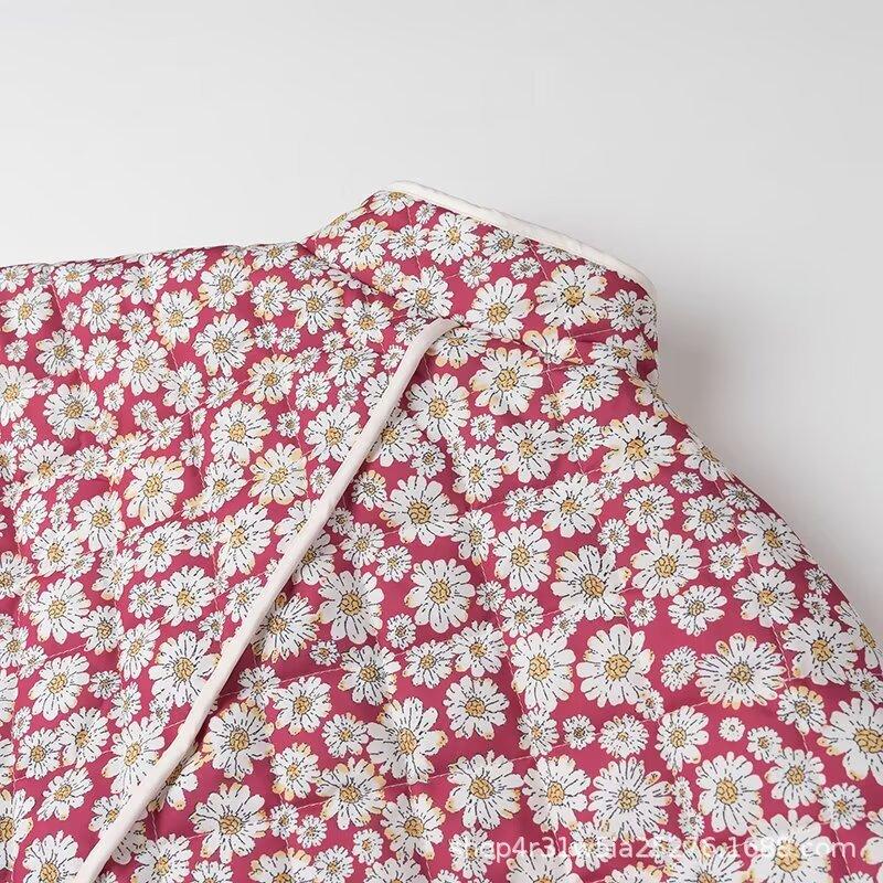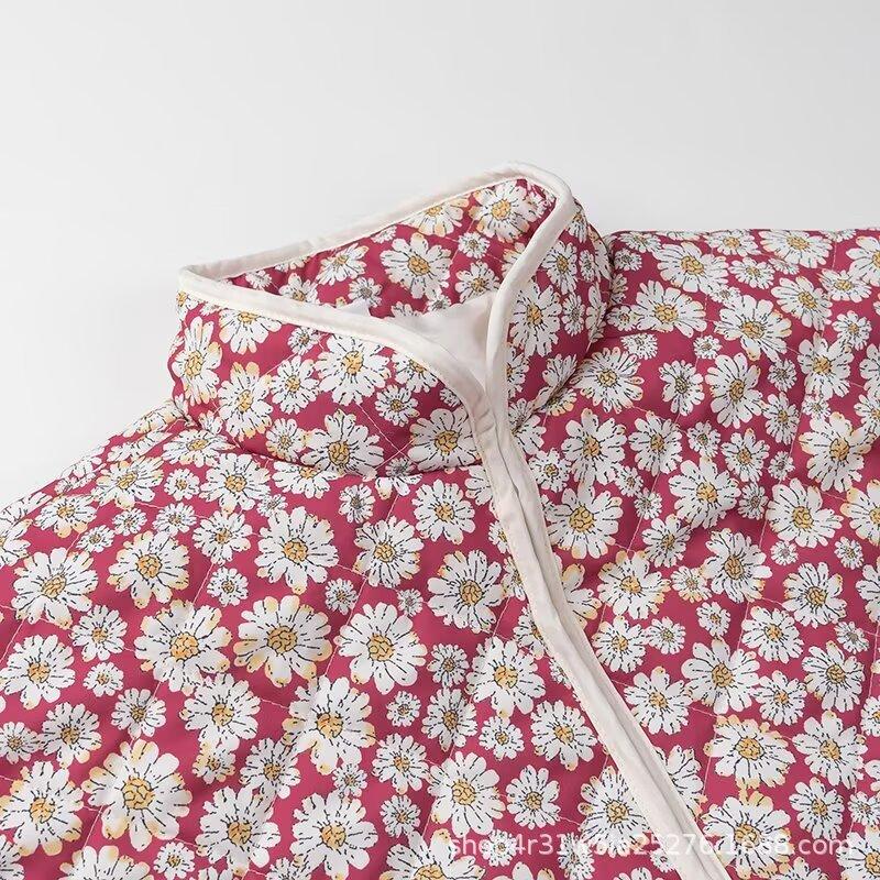 Estilo Europeo y Americano Amazon Venta al por Mayor Transfronteriza 2024 Otoño Nuevo Estampado Cuello Alto Cálido Bloque de Color Manga Larga Algodón Chaqueta