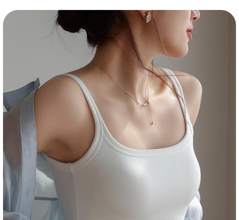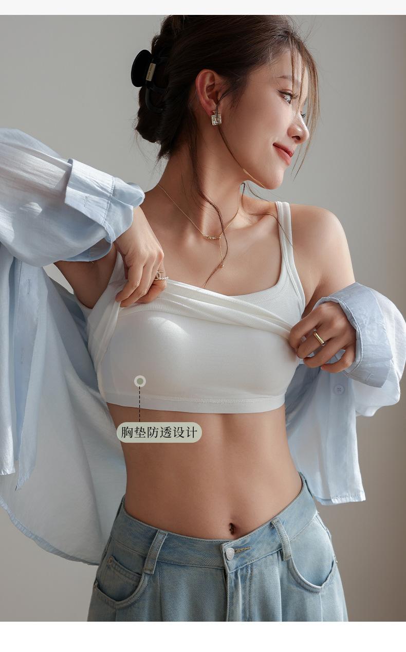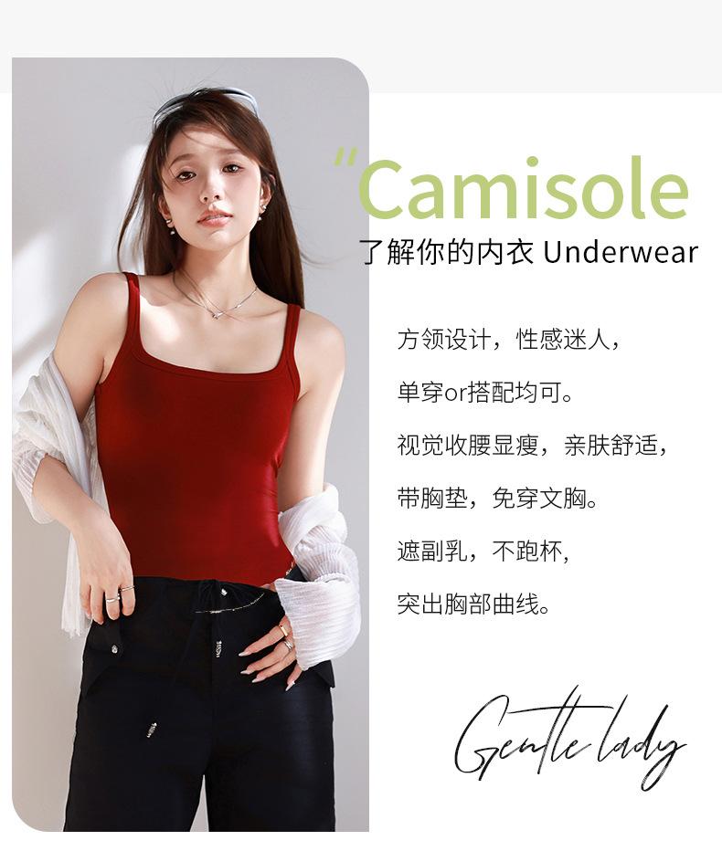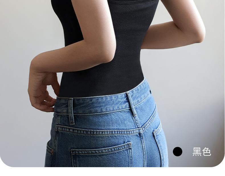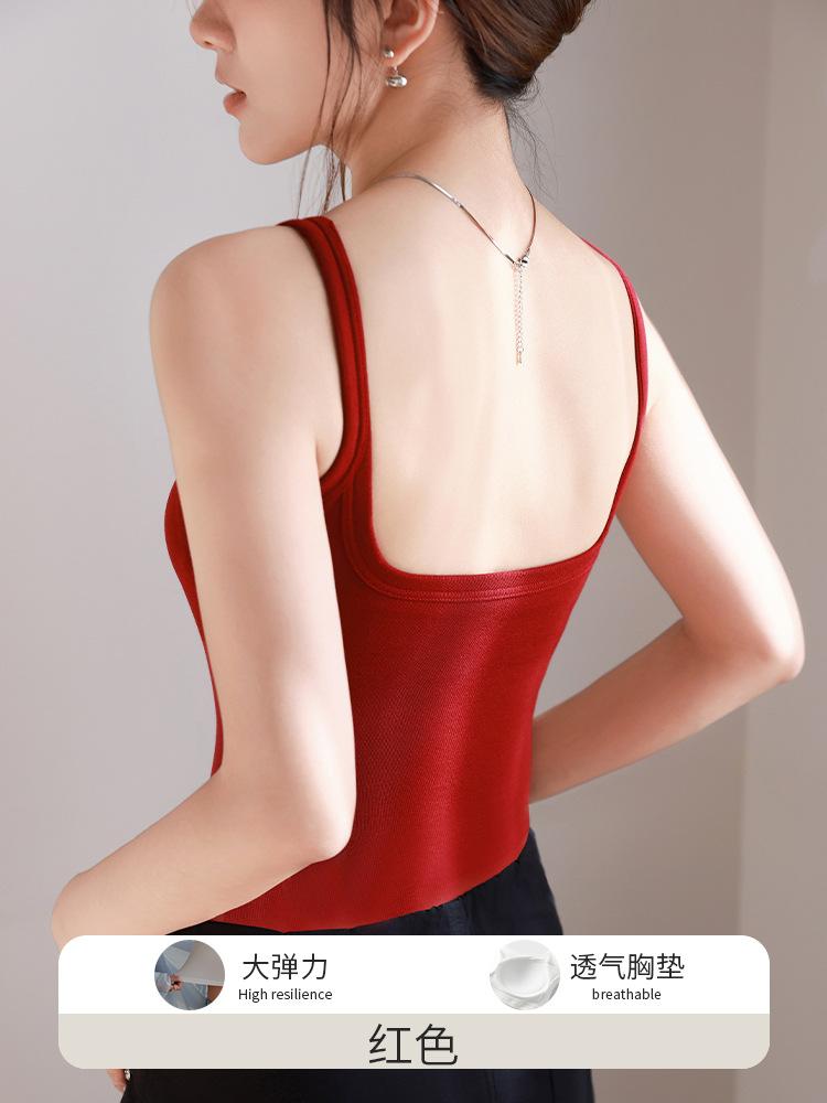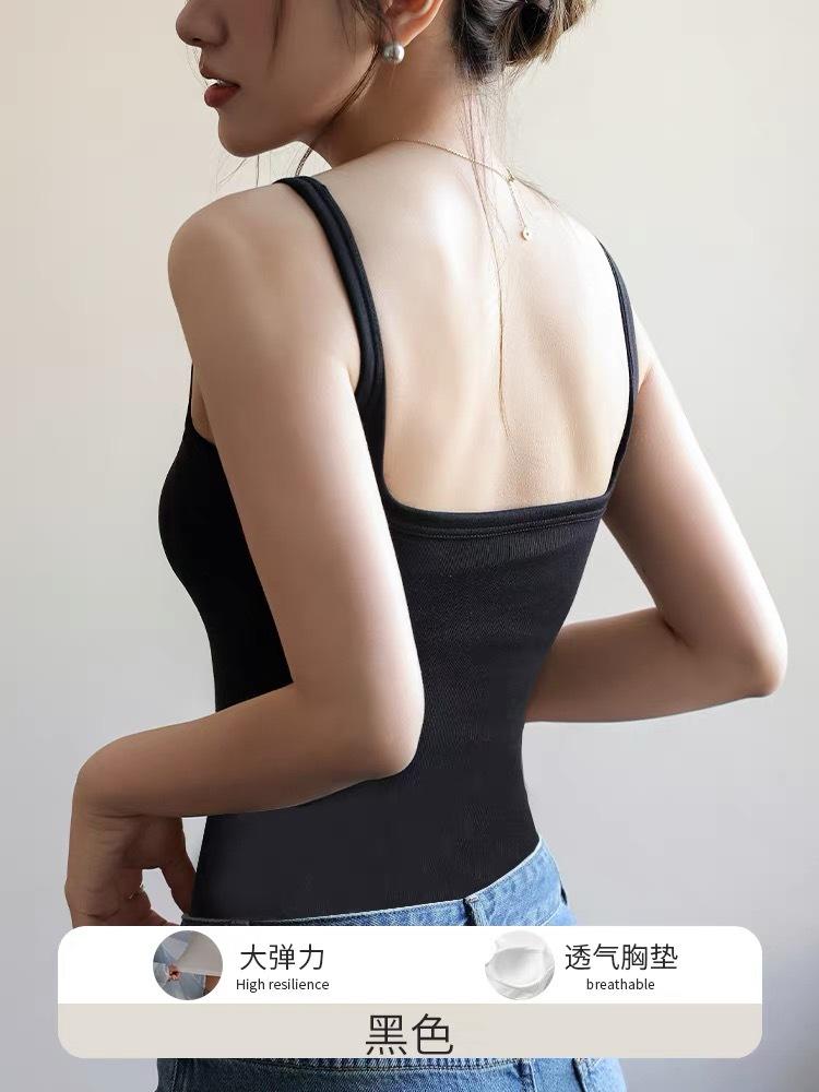 Hermoso Body de Espalda Descubierta con Tirantes Finos de Verano con Cuello Cuadrado y Tirantes con Almohadilla en el Pecho Top Básico sin Mangas