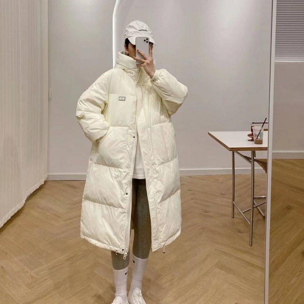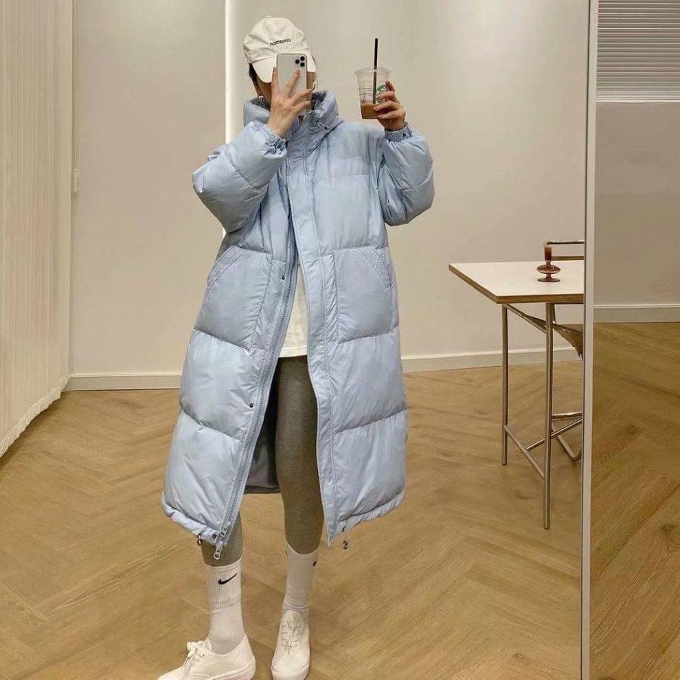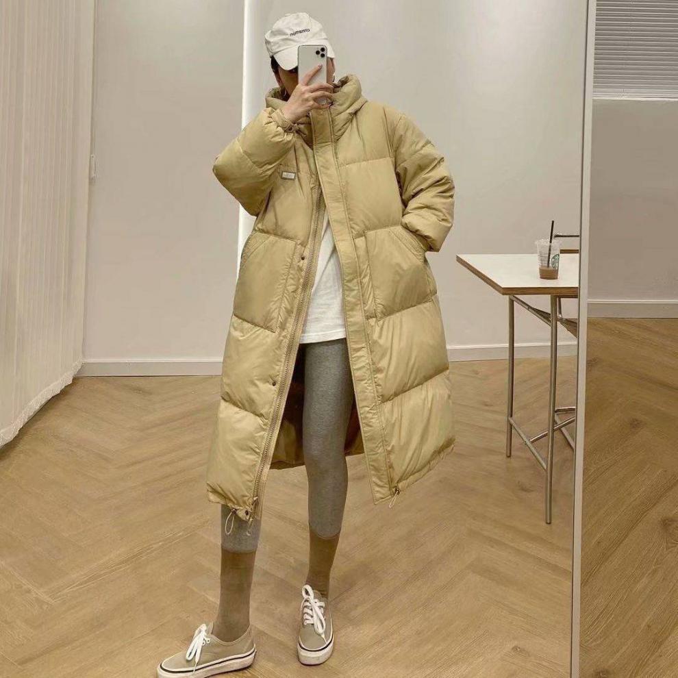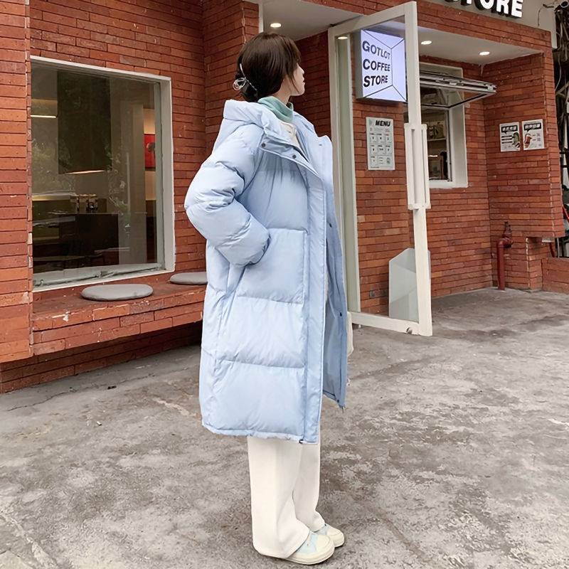 Chamarra de Plumas de Invierno Nueva 2024 para Mujer de Largo Medio Estilo Coreano a la Moda Chaqueta Acolchada Gruesa Holgada con Capucha
