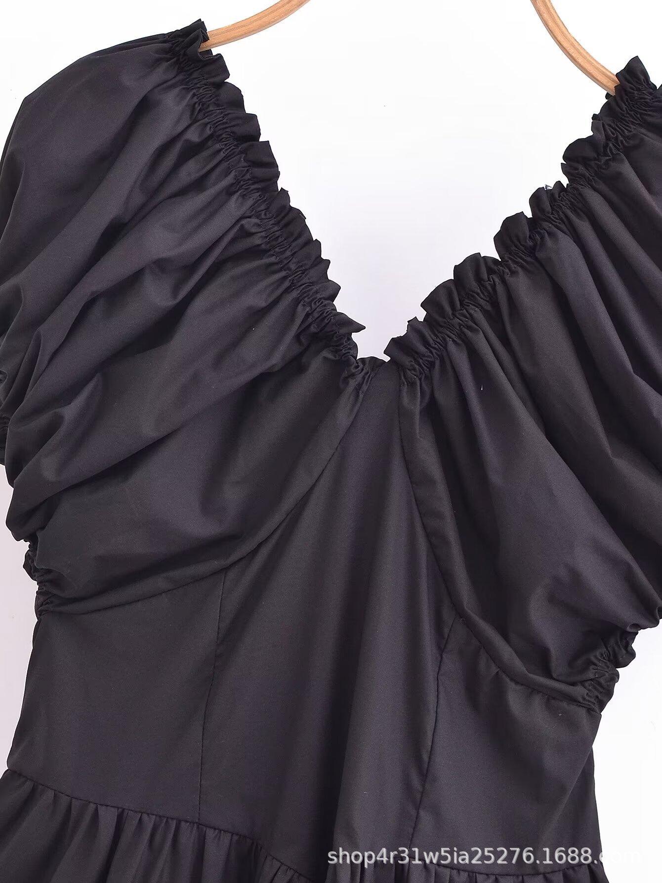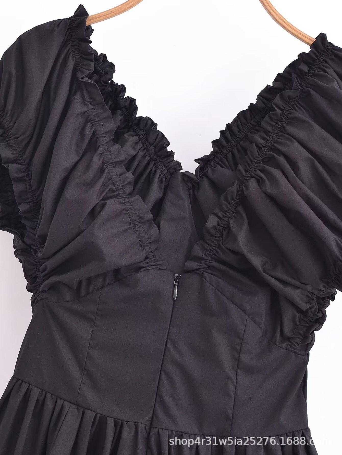 Estilo europeo y americano 2024 primavera y verano nueva moda elegante largo cuello en V cintura ceñida vestido falda sin mangas