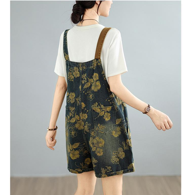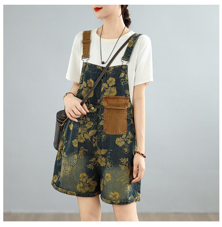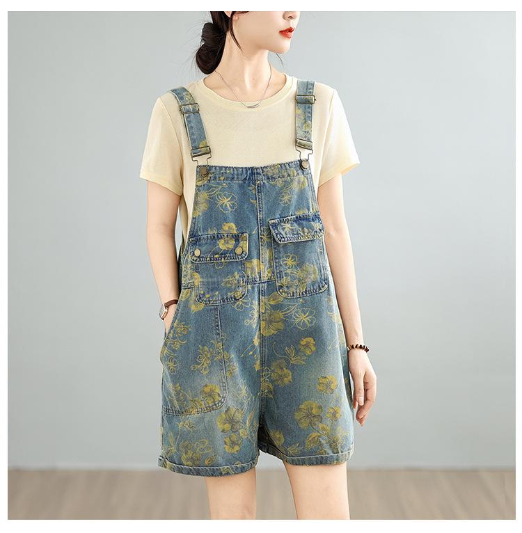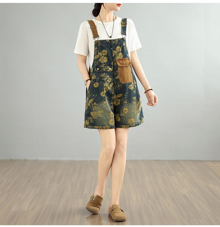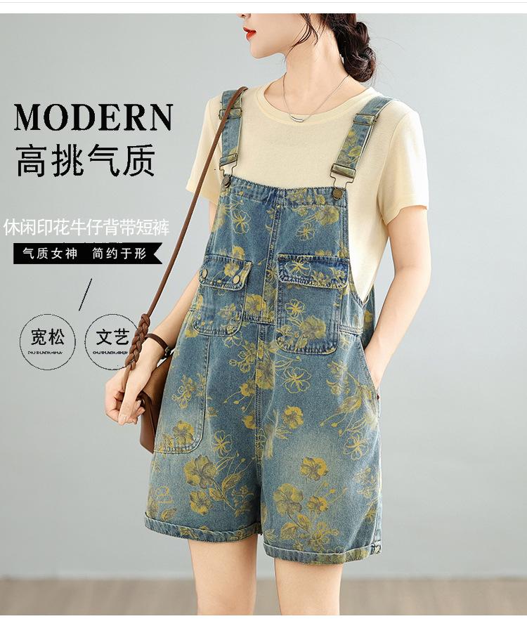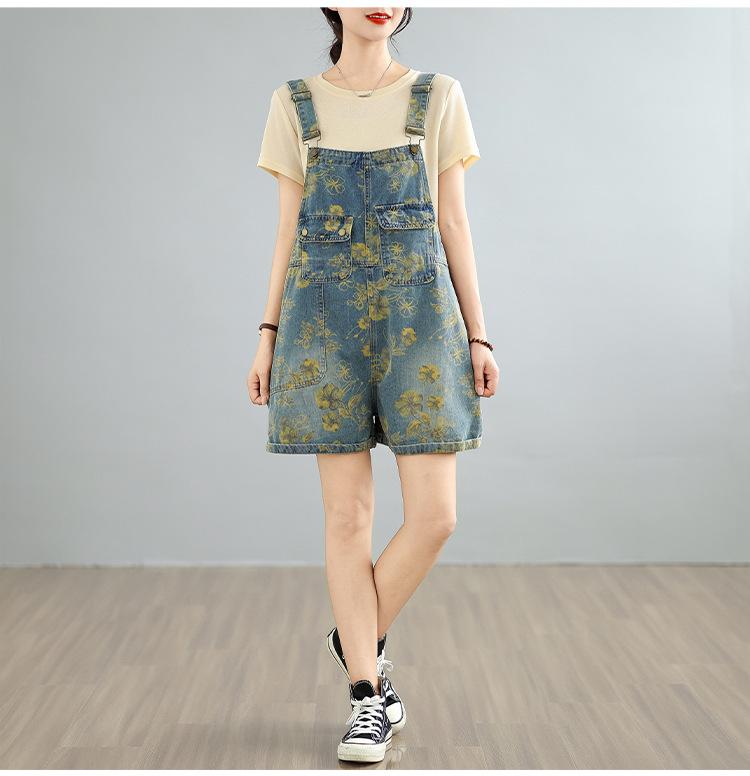 2025 Nuevo Verano Estampado Suelto Peto de Mezclilla Shorts para Mujer