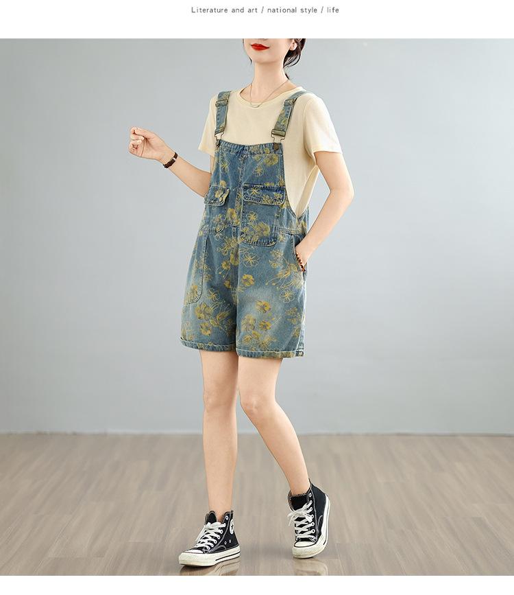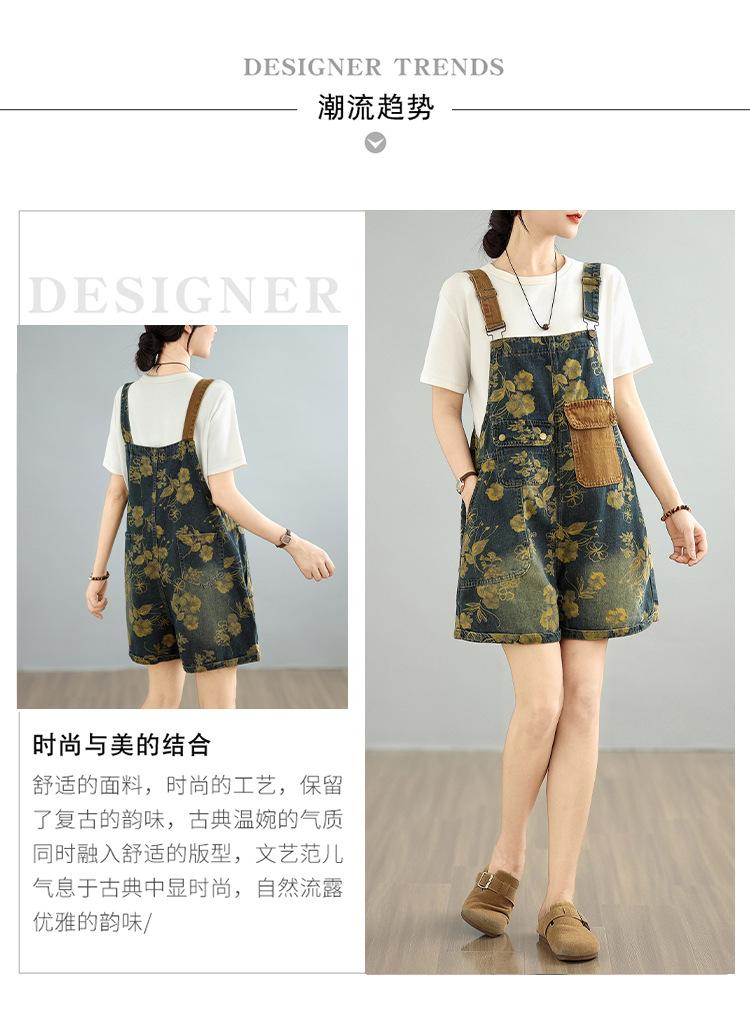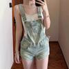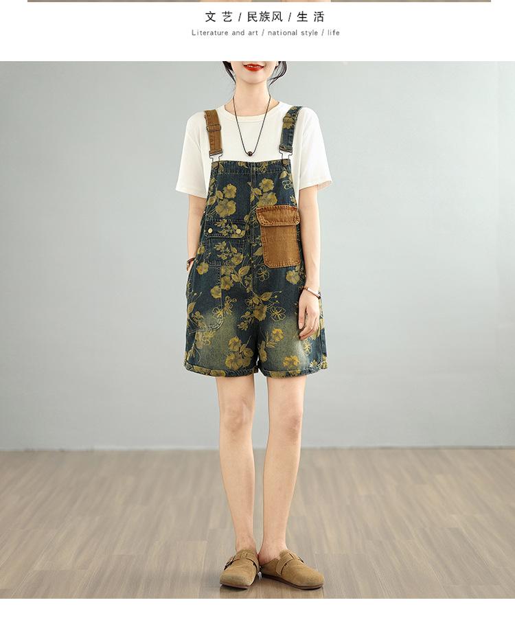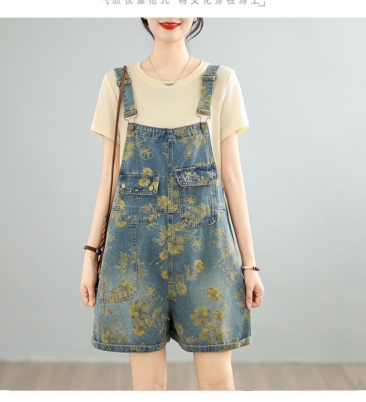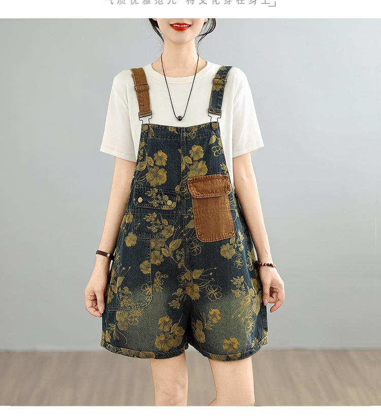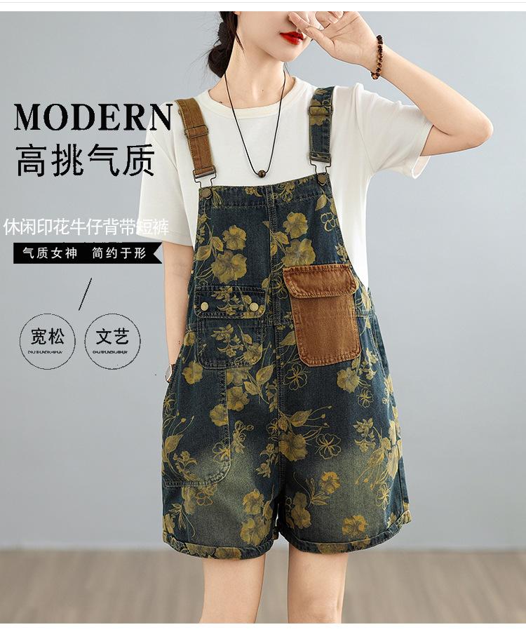 2025 Nuevo Verano Estampado Suelto Peto de Mezclilla Shorts para Mujer