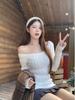 Spice Girls Nicho Moda Simple Elegante Otoño e Invierno Camiseta de Manga Larga Top de Hombro Tejido con Cuello Inclinado Estilo Americano Ins Mujeres