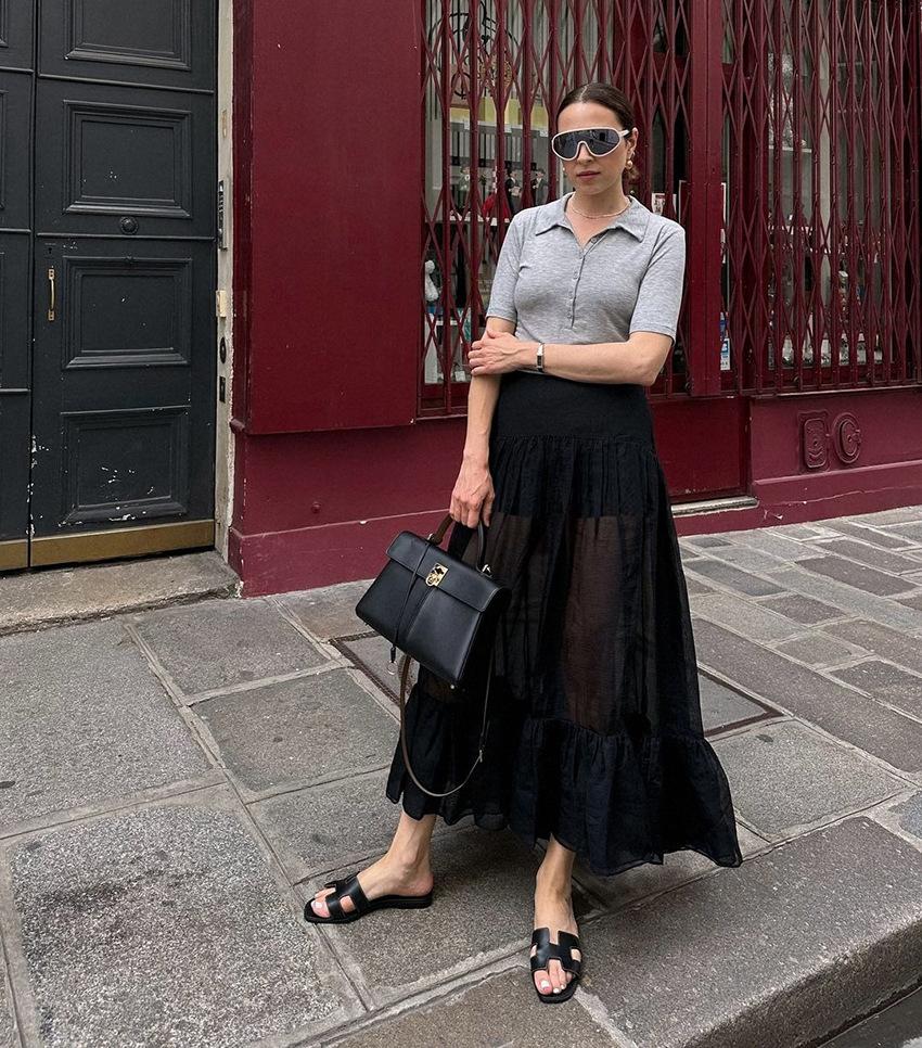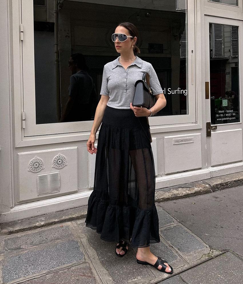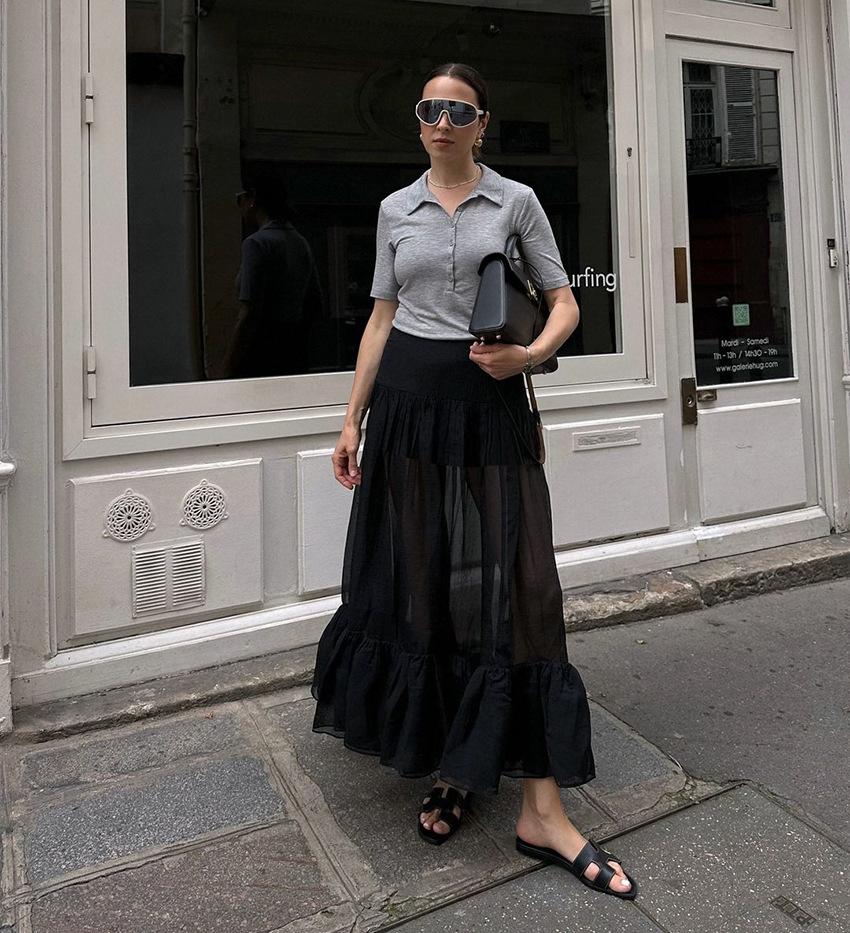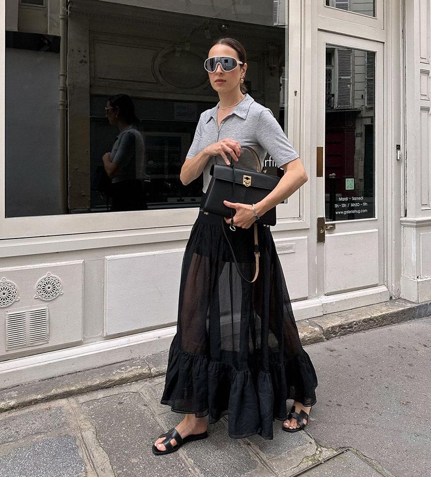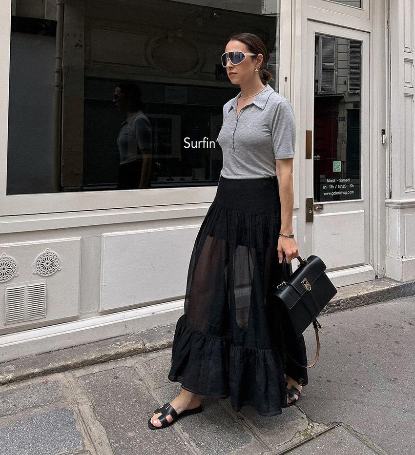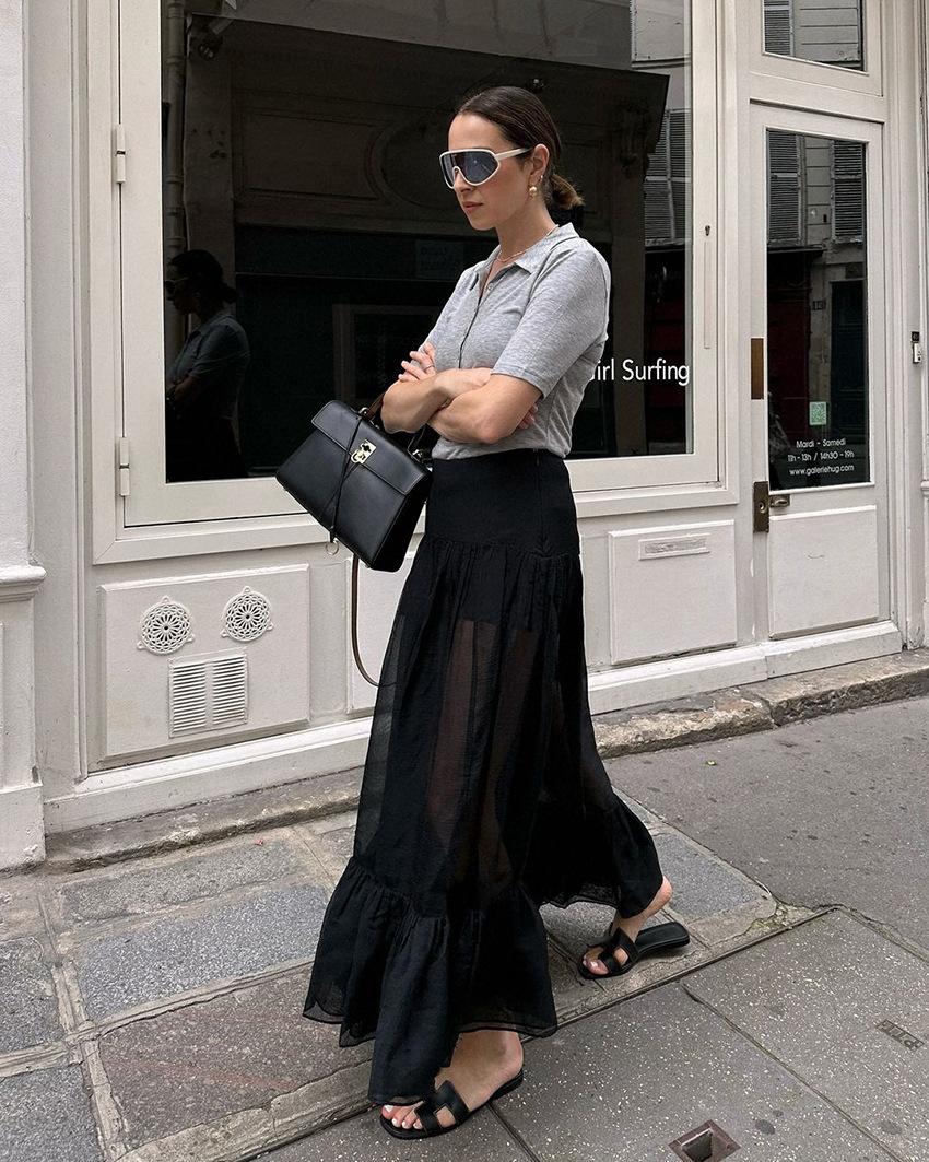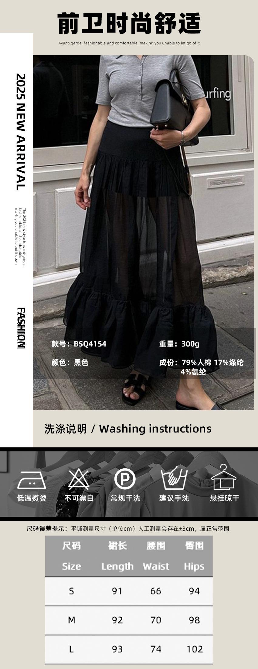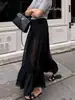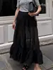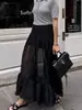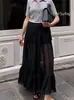 Falda Línea A Elegante Retro Francesa de Malla Negra para Mujer Verano 2025 Chic Look Holgado Adelgazante Falda Larga para Mujer