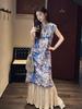 Nuevo Chinoiserie Elegante Bordado de Industria Pesada Cheongsam Mejorado Falda Larga Verano Nuevo Estilo Nacional Vestido con Empalme para Mujer N4073