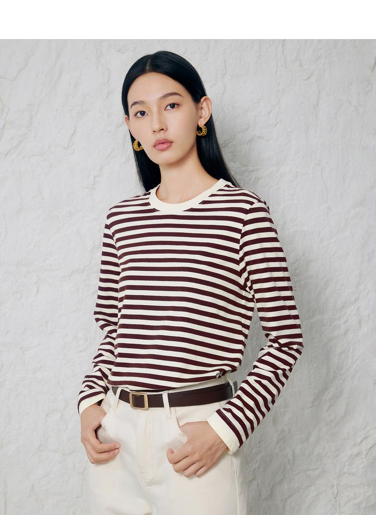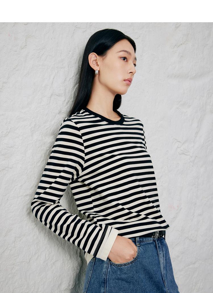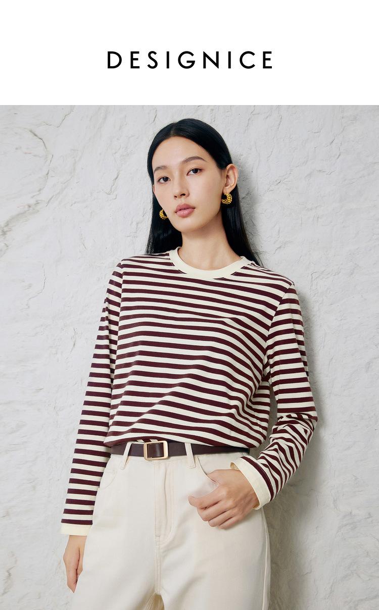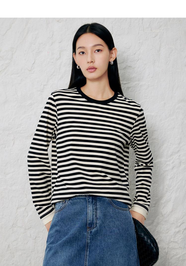 Camiseta Base Rayada para Mujer 2025 Nuevo Estilo Primavera y Otoño Manga Larga Versátil Elegante Ajustada Top