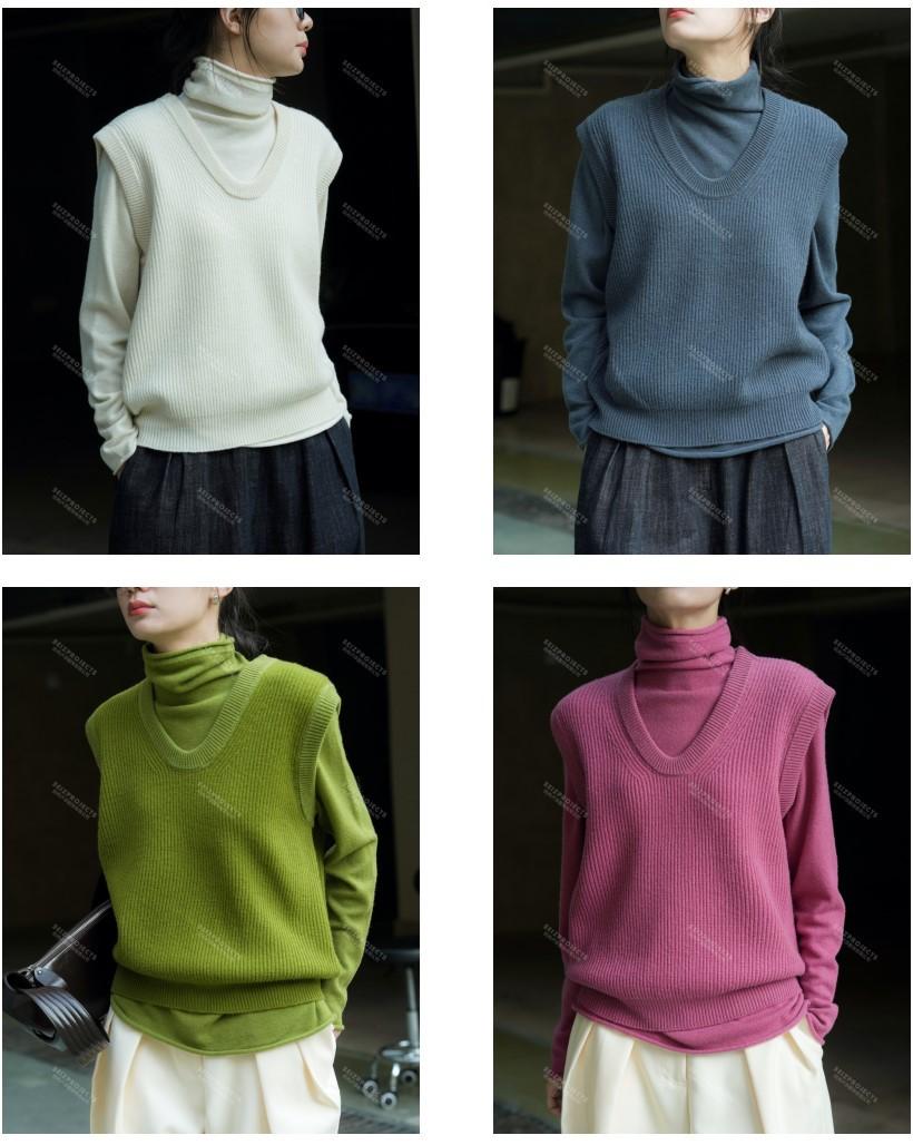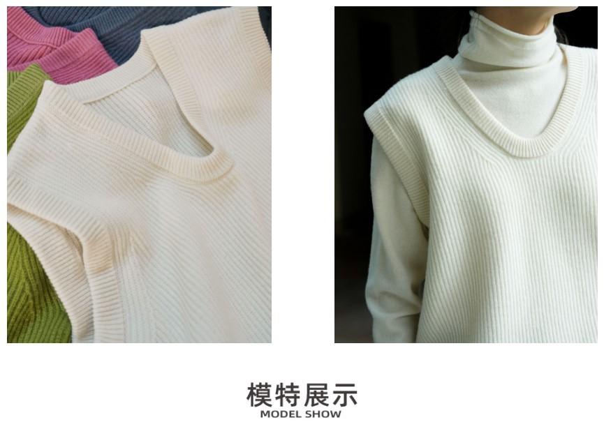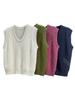 Invierno Nuevo Estilo Coreano Simple Lana Cuello en V Chaleco, Cómodo y Moderno Chaleco de Punto en Capas para Mujer