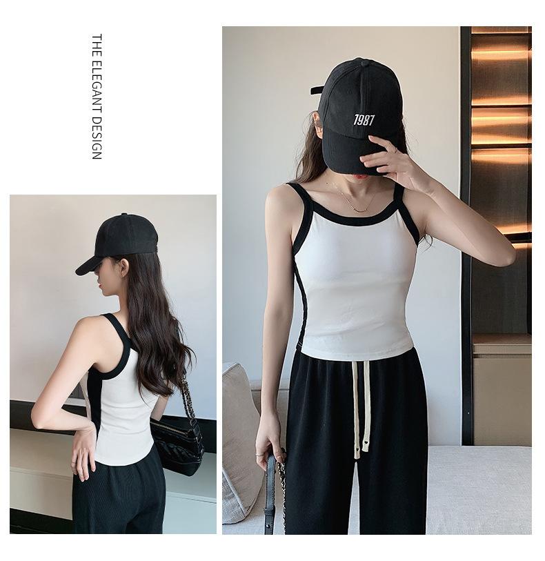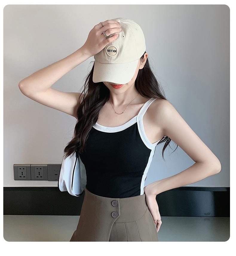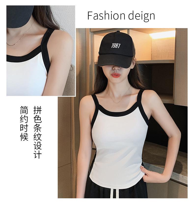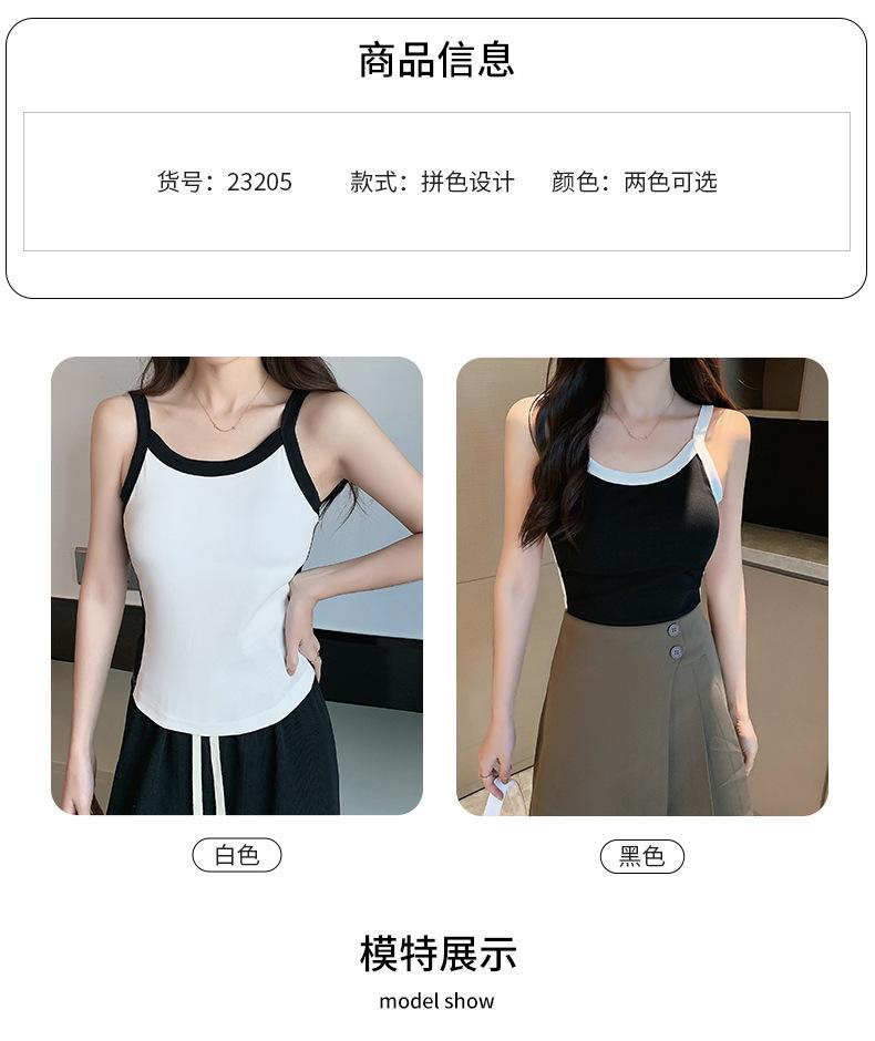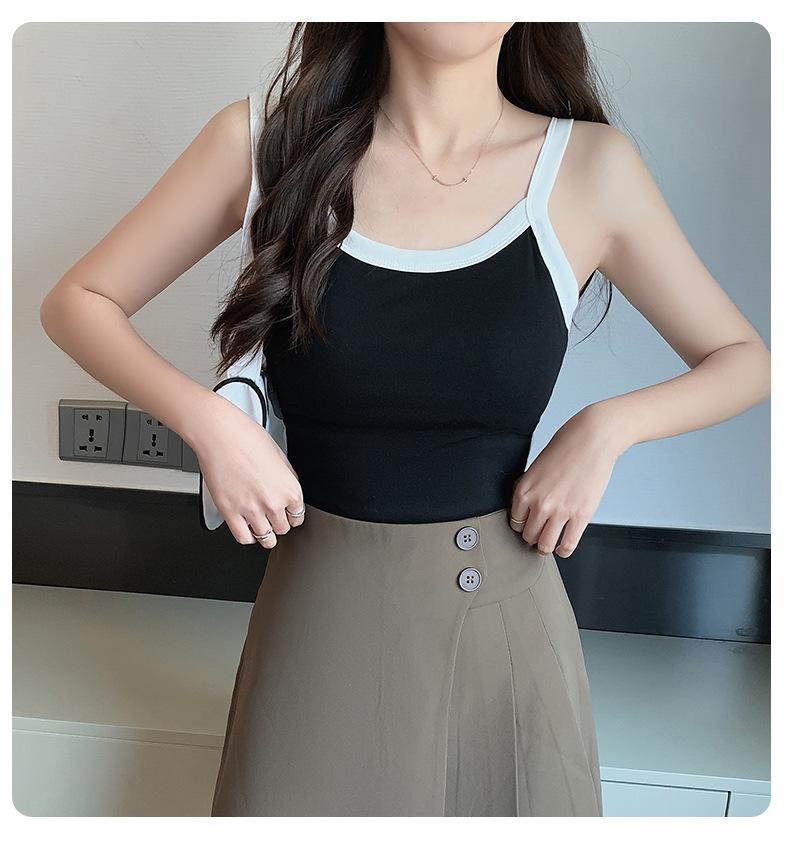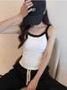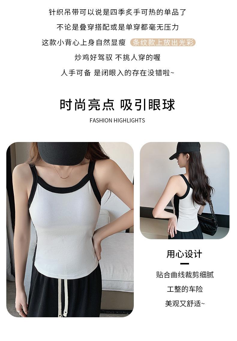 Camisola de Punto con Hilo para Mujer Verano Slim Nuevo Estilo Color en Contraste Adelgazante Top Exterior Fondo Sin Mangas Anti-Exposición