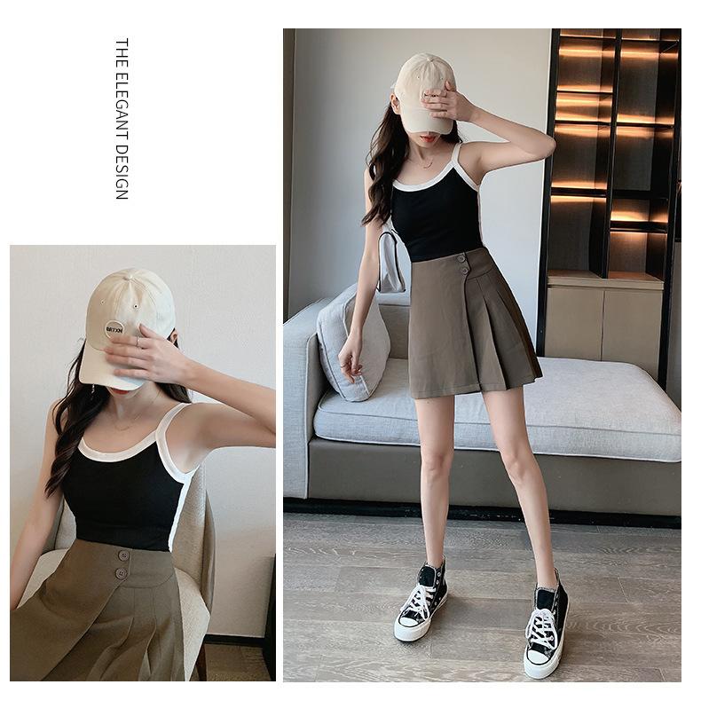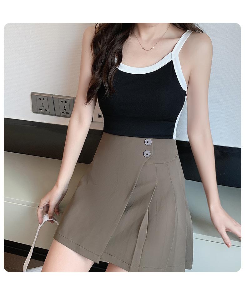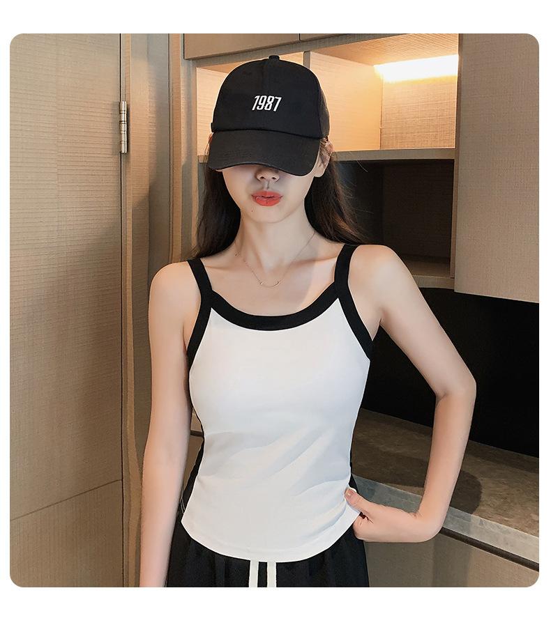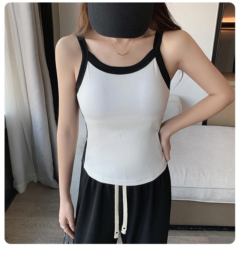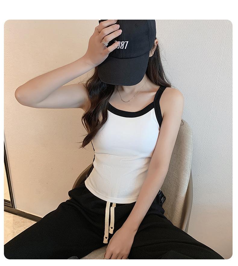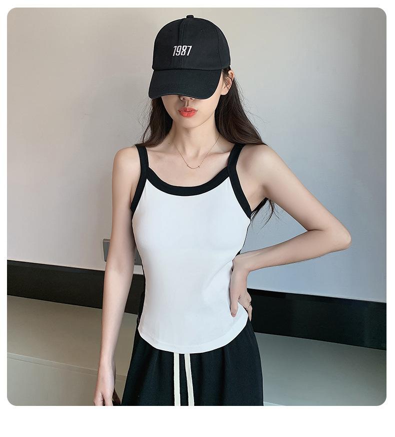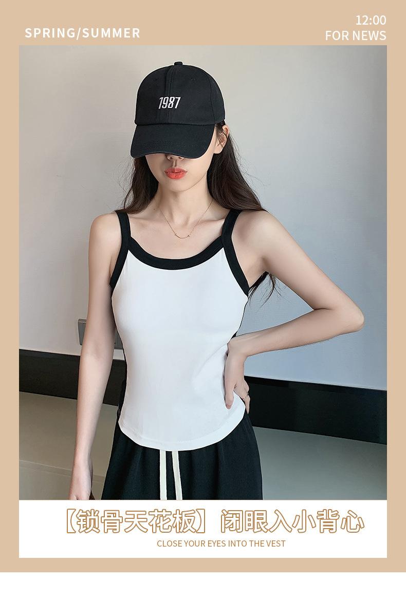 Camisola de Punto con Hilo para Mujer Verano Slim Nuevo Estilo Color en Contraste Adelgazante Top Exterior Fondo Sin Mangas Anti-Exposición