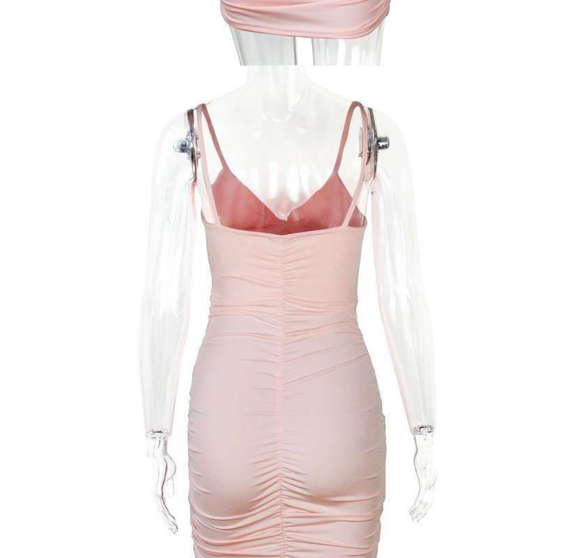 Vestido Sexy de Cadera Plisado de Corte Bajo para Mujer Vestido Sexy de Cadera Plisado de Corte Bajo