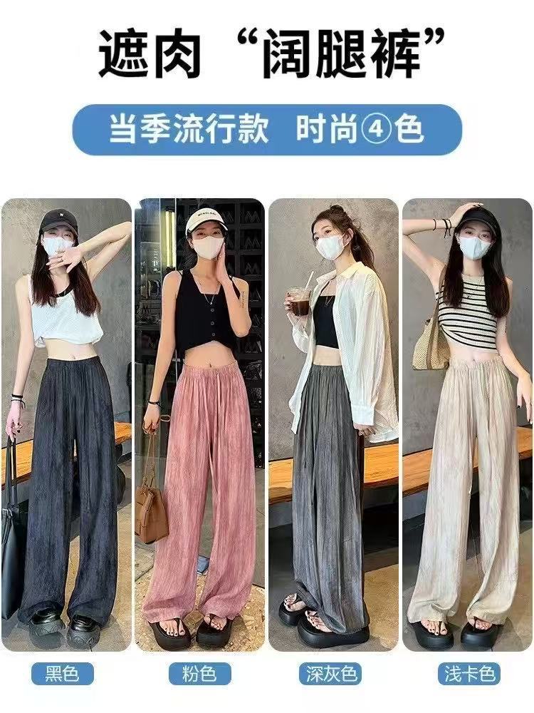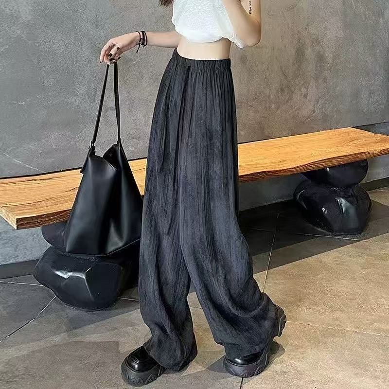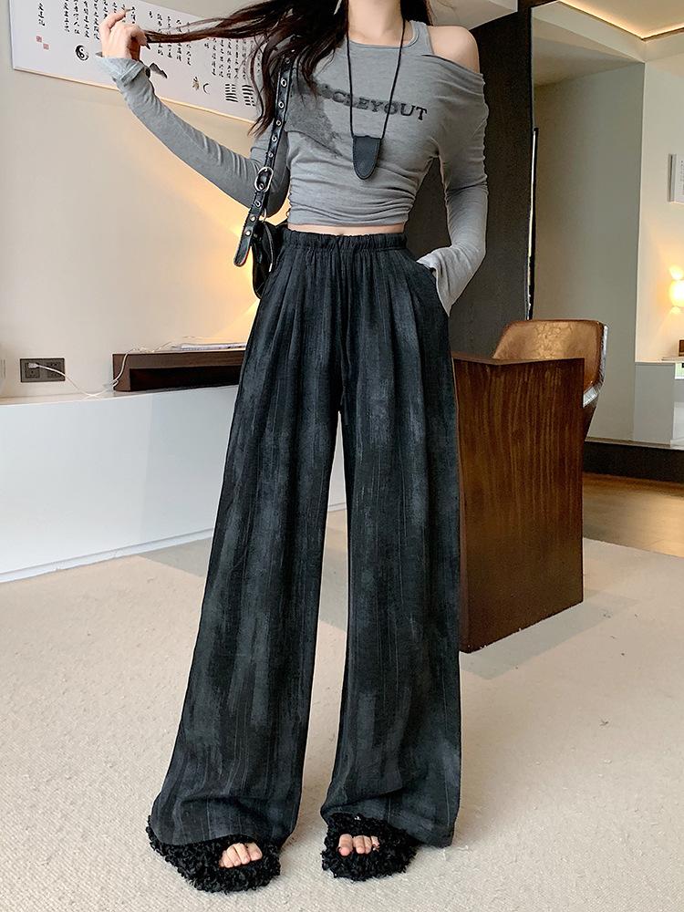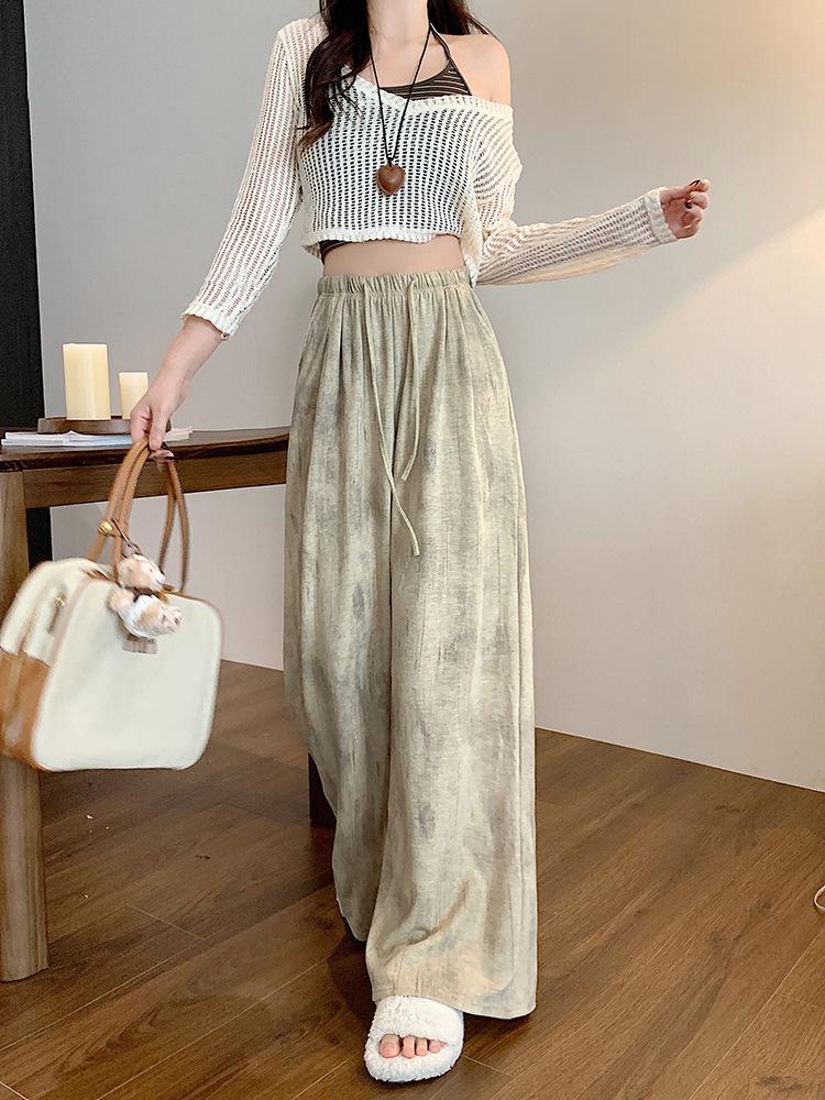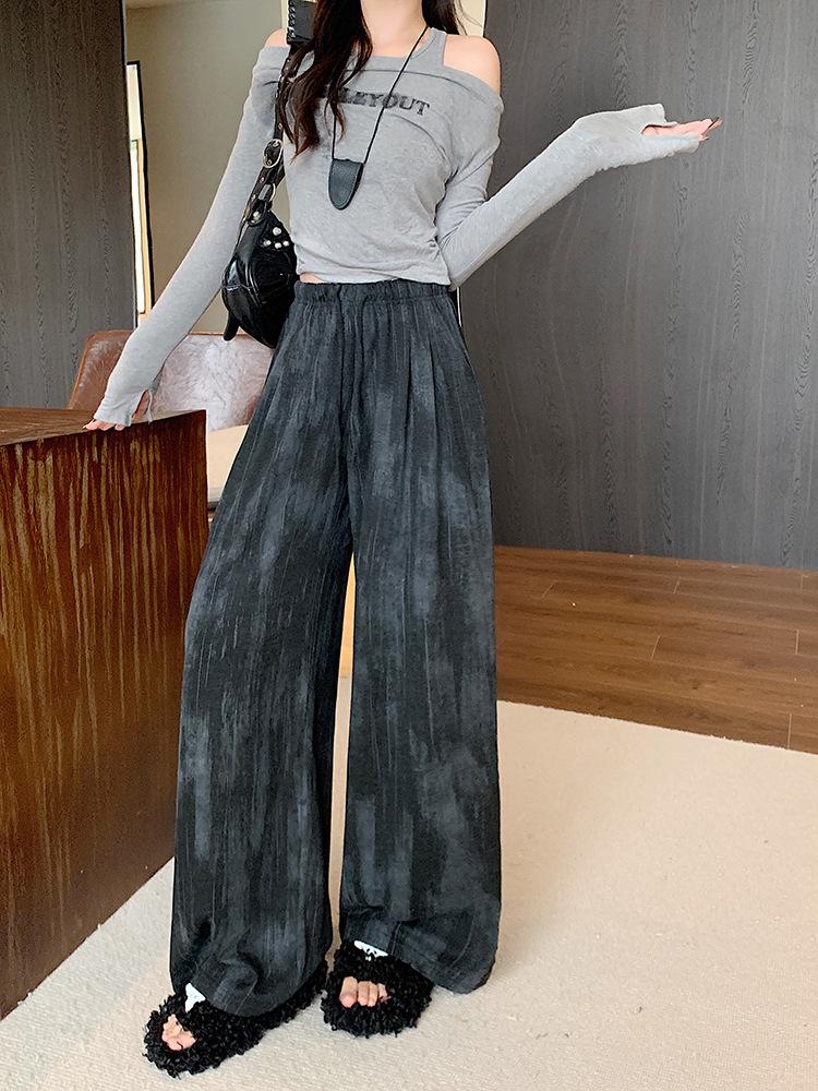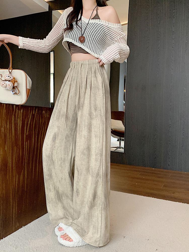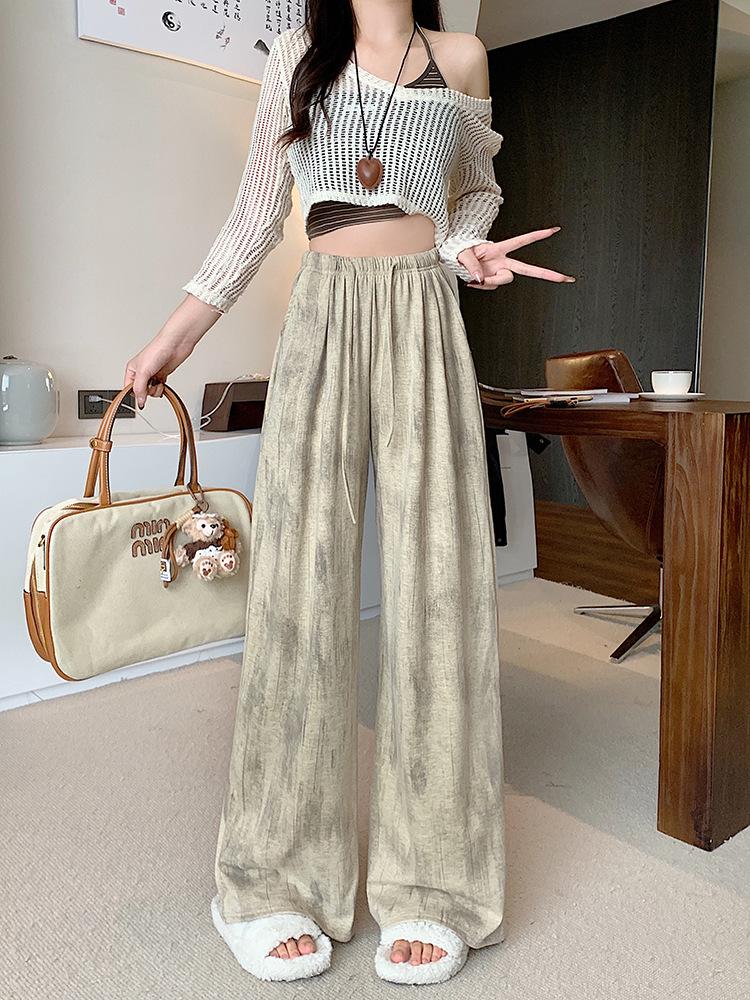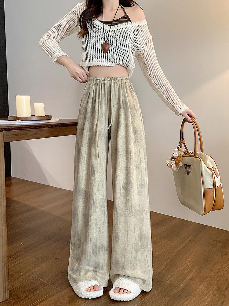 Pantalones de Pierna Ancha Tie-Dye para Mujer 2025 Verano Nuevo Delgados de Cintura Alta Sueltos con Caída Estilo Lazy Rectos Casuales Largos hasta el Piso