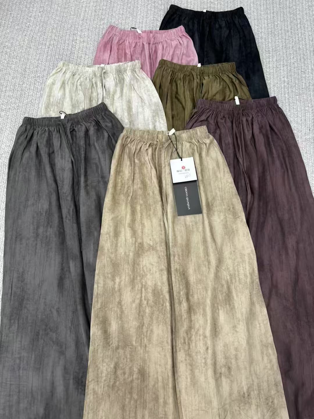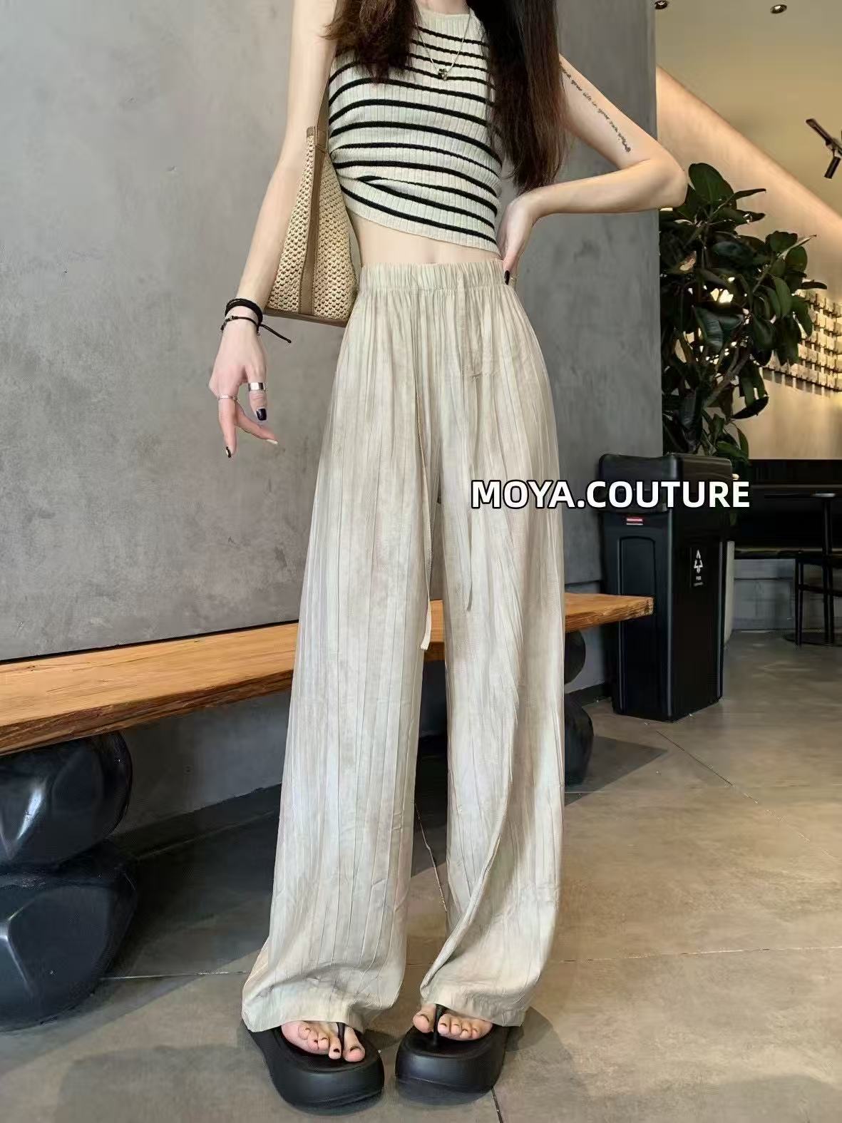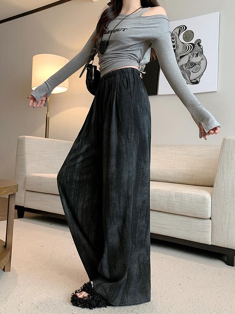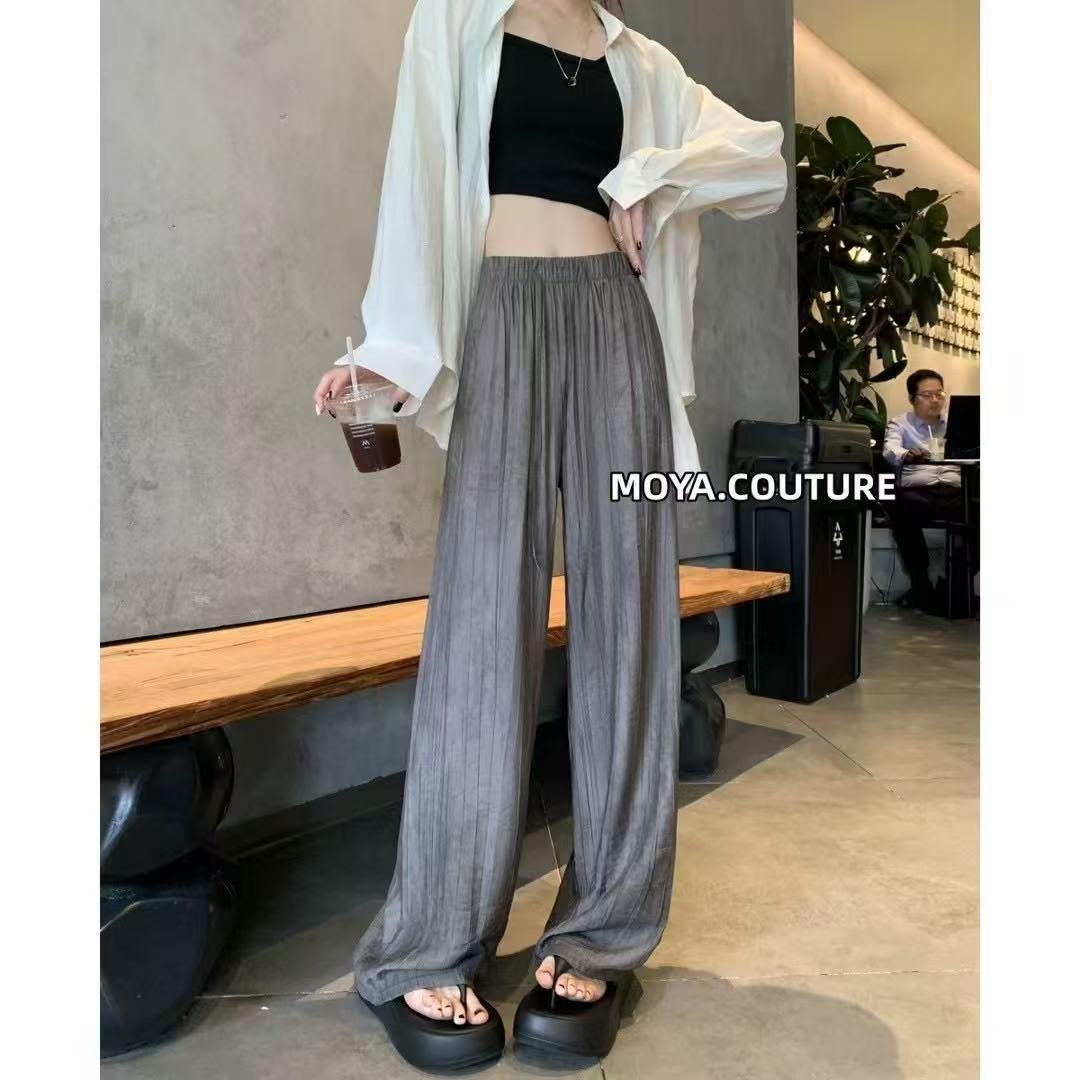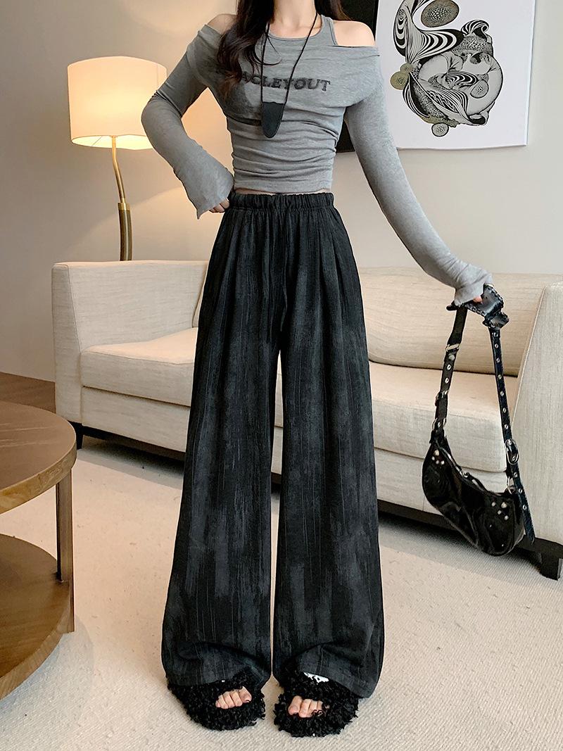 Pantalones de Pierna Ancha Tie-Dye para Mujer 2025 Verano Nuevo Delgados de Cintura Alta Sueltos con Caída Estilo Lazy Rectos Casuales Largos hasta el Piso