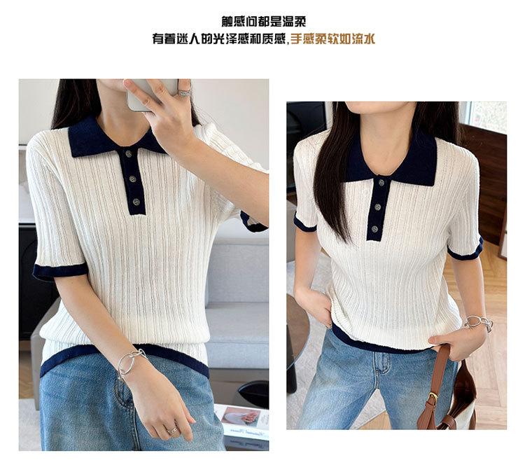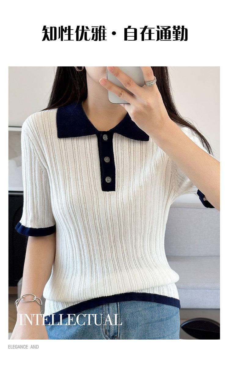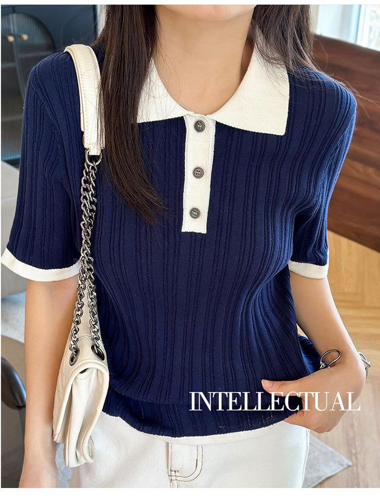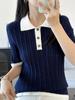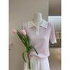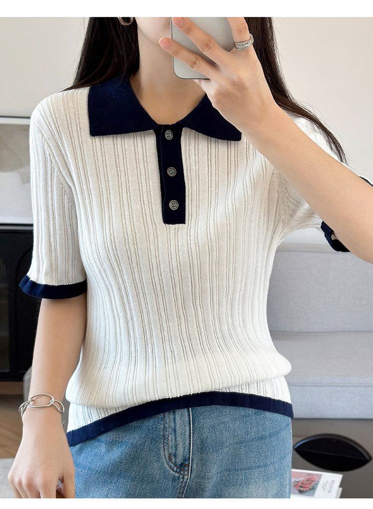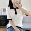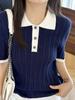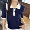Polo Juvenil Acanalado de Moda Casual Versátil Reductor de Edad Camiseta de Manga Corta Estilo Coreano Brillante Estilo Corto