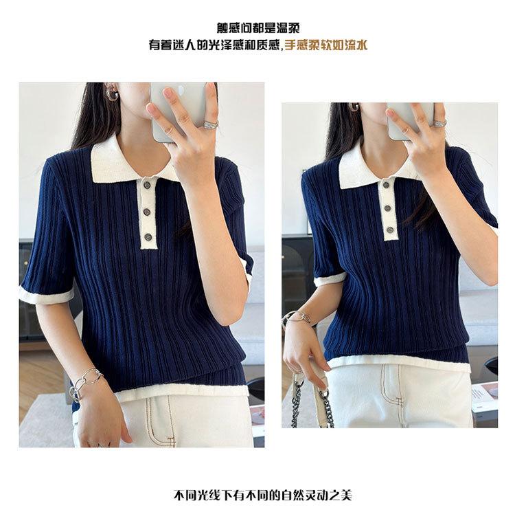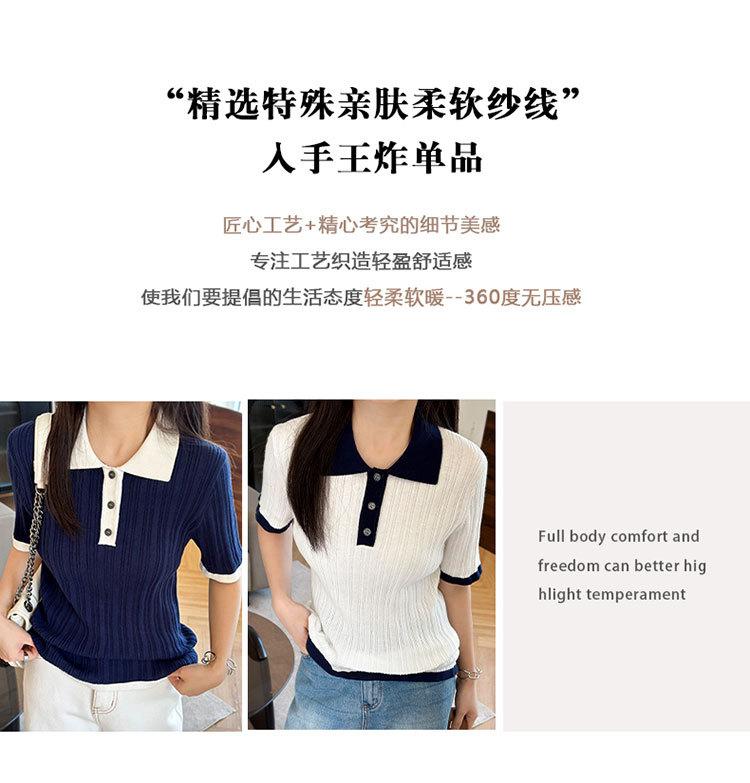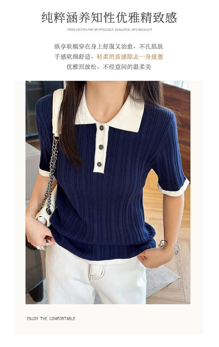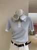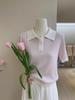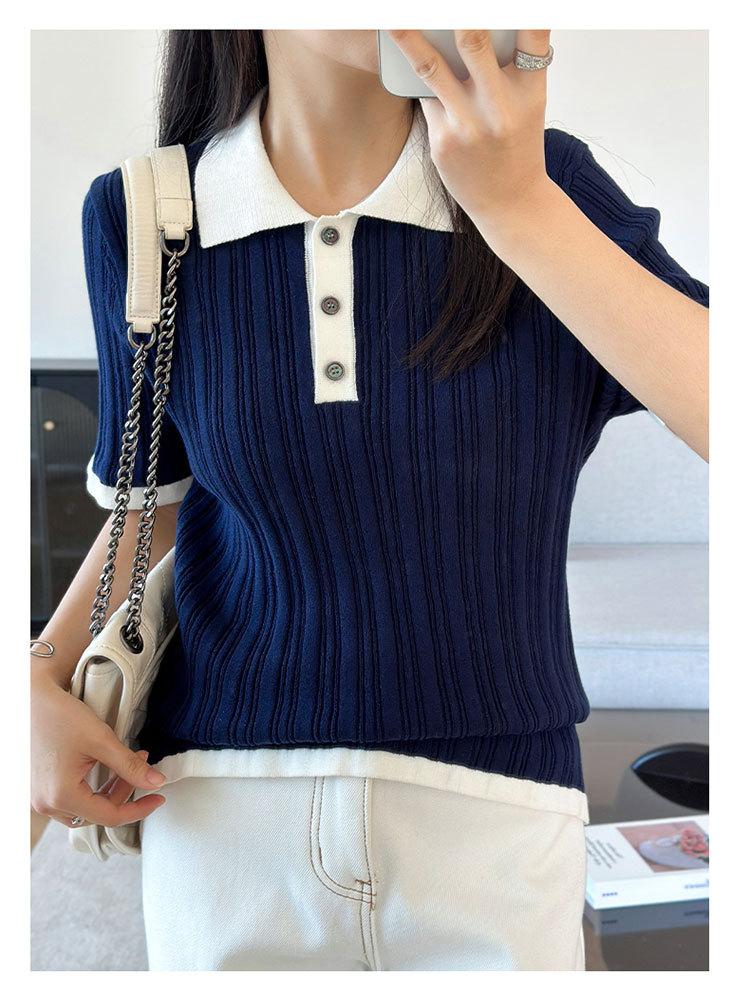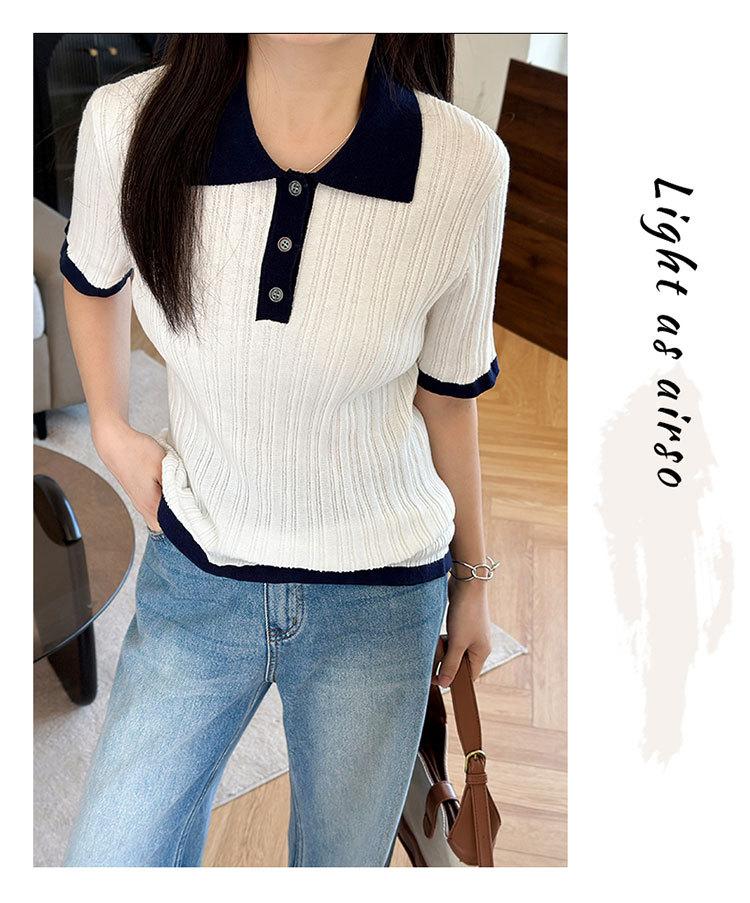 Polo Juvenil Acanalado de Moda Casual Versátil Reductor de Edad Camiseta de Manga Corta Estilo Coreano Brillante Estilo Corto