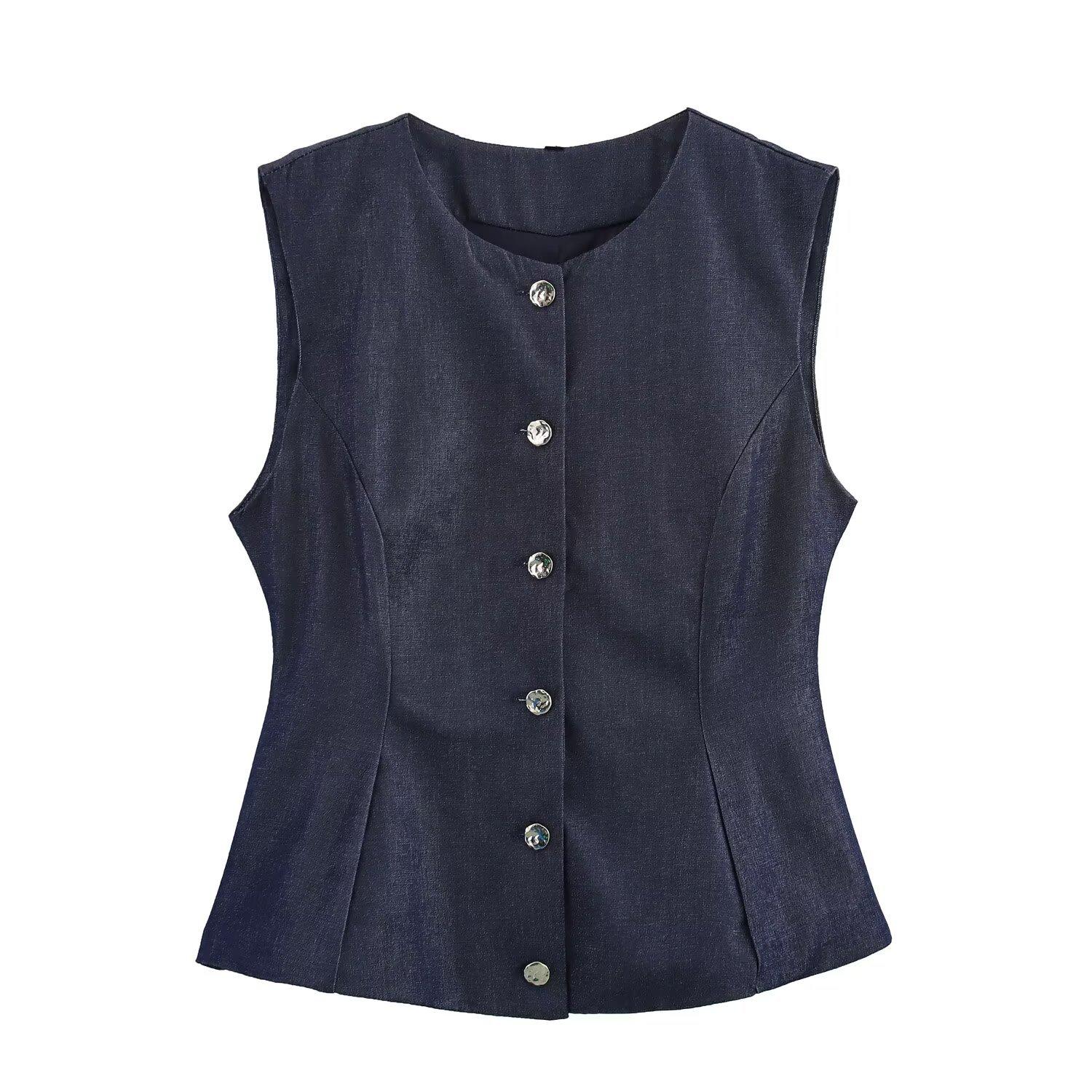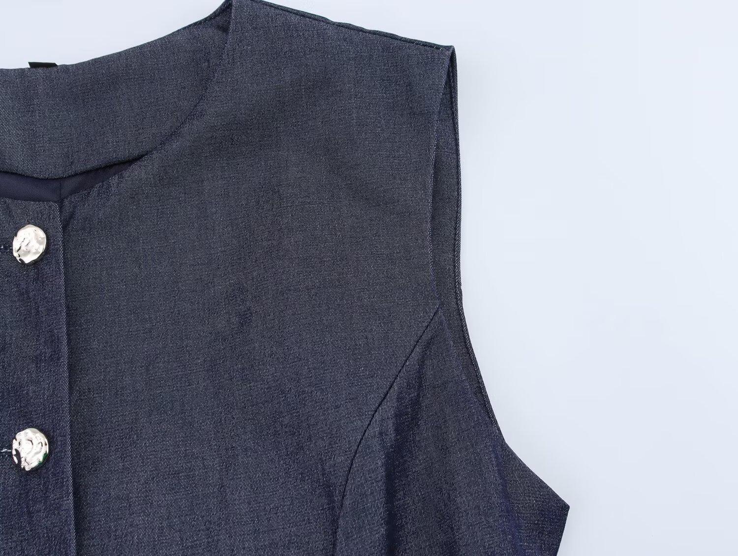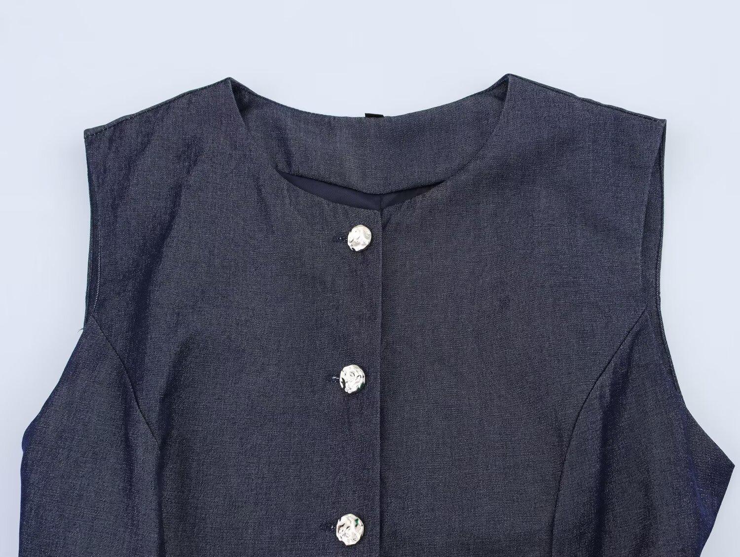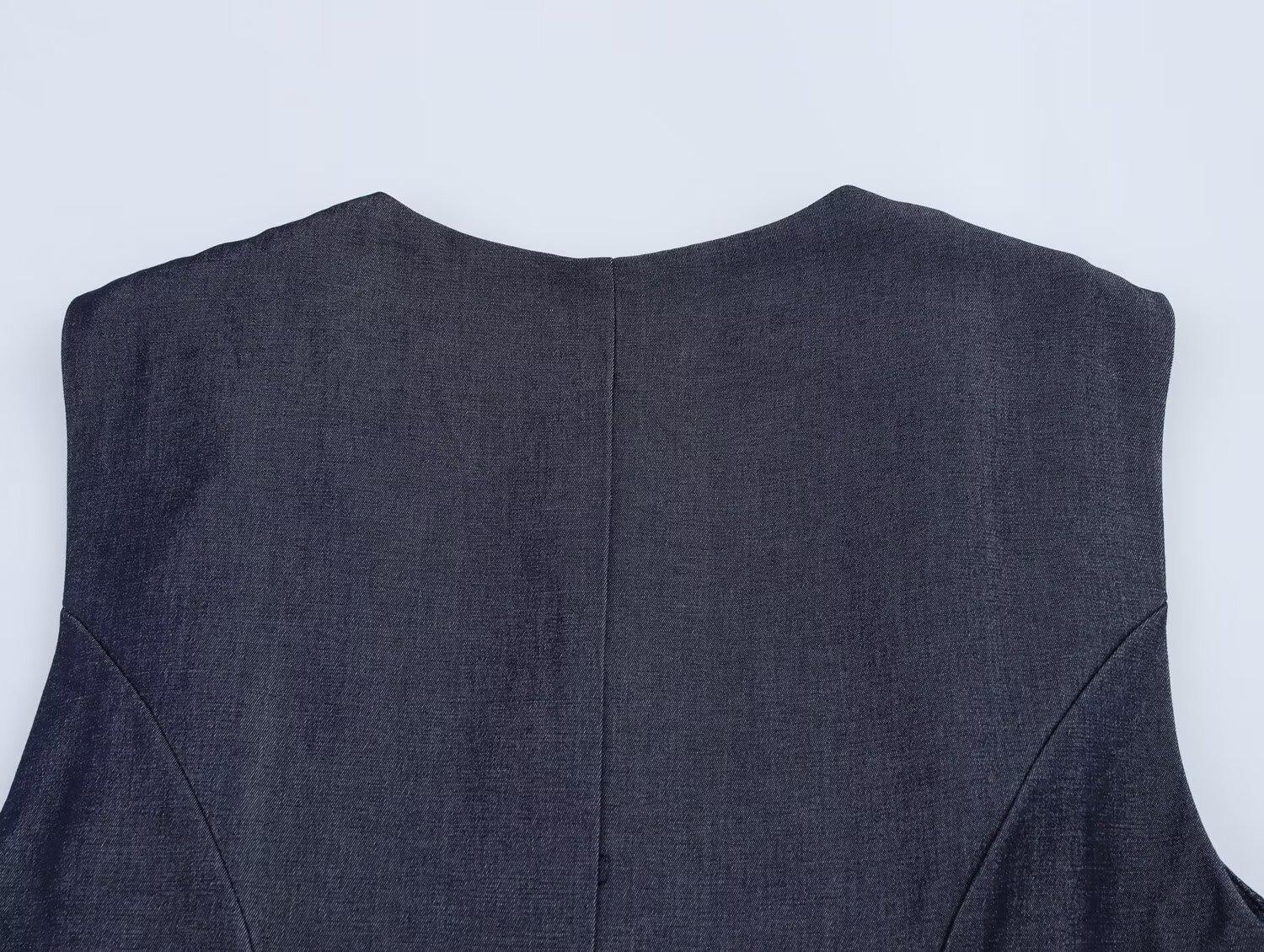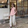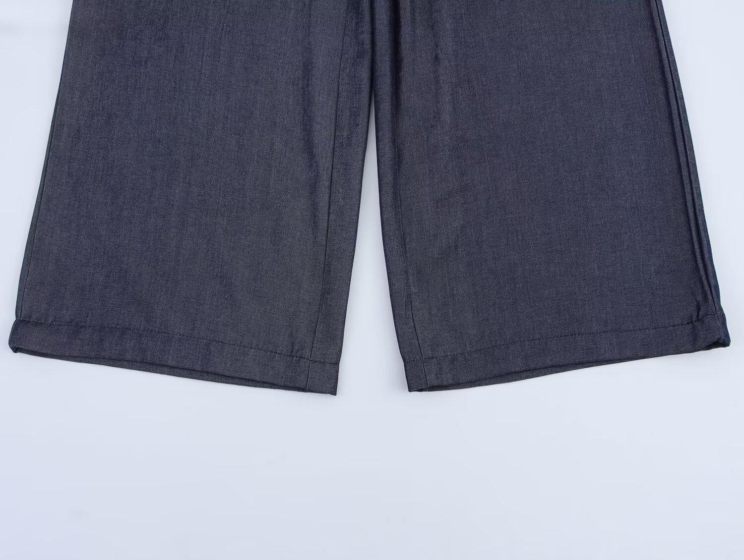 Venta al por Mayor Transfronteriza Ropa Europea y Americana Moda de Verano Lino Mezclado Chaleco Plisado + Traje Casual de Pantalones de Pierna Ancha E74635/6