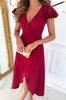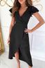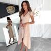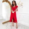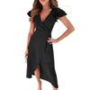 2025 Amazon Aliexpress Nueva Ropa de Trabajo de Verano Color Puro Cuello en V Cintura Manga Hoja de Loto Vestido Asimétrico para Mujer