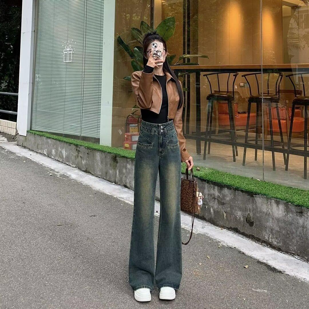 Pantalones vaqueros rectos holgados para mujer, primavera otoño e invierno 2025, nuevos, de cintura alta, adelgazantes, de pierna ancha y pequeña.
