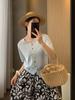 25 Verano Nuevo Suave Fresco Transpirable Cuello en V Color Hebilla Top Tejido Cárdigan Corto