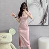 2025 Vestido Mejorado de Alta Gama Estilo Chino Nuevo para Mujer Verano Nuevo Elegante Ajustado Moda Cheongsam Falda Larga