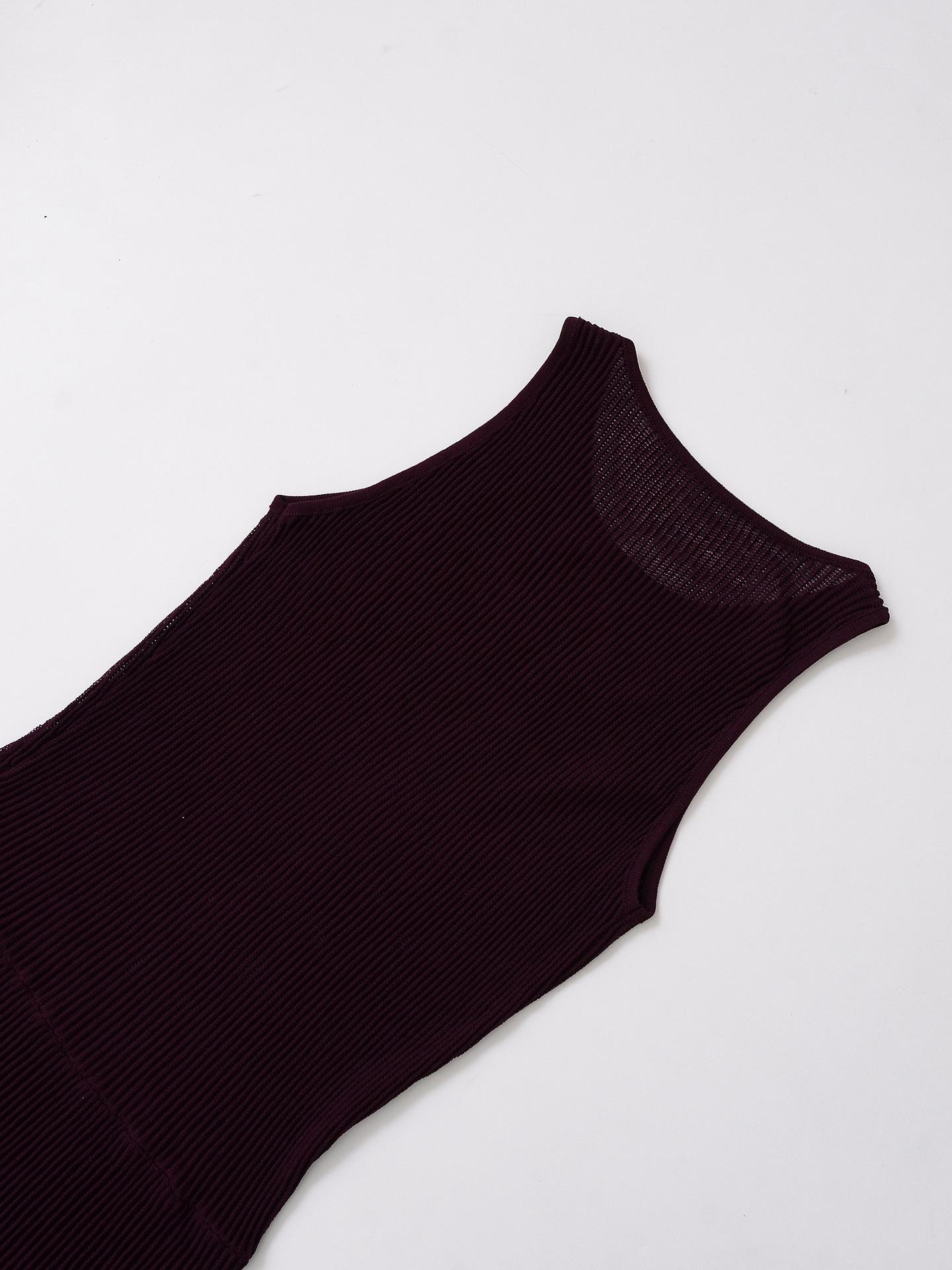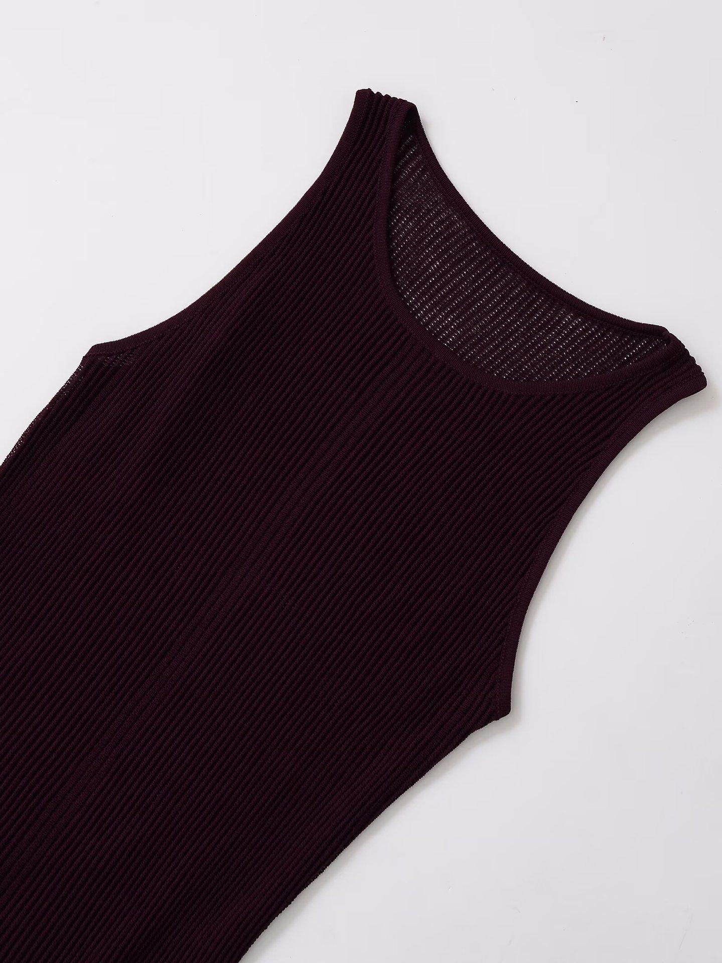 Ropa Europea y Americana Transfronteriza 2025 Verano Nueva Moda Casual Tejido de Punto Acanalado Sin Mangas Cuello Redondo Vestido 0014015
