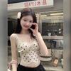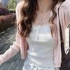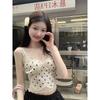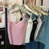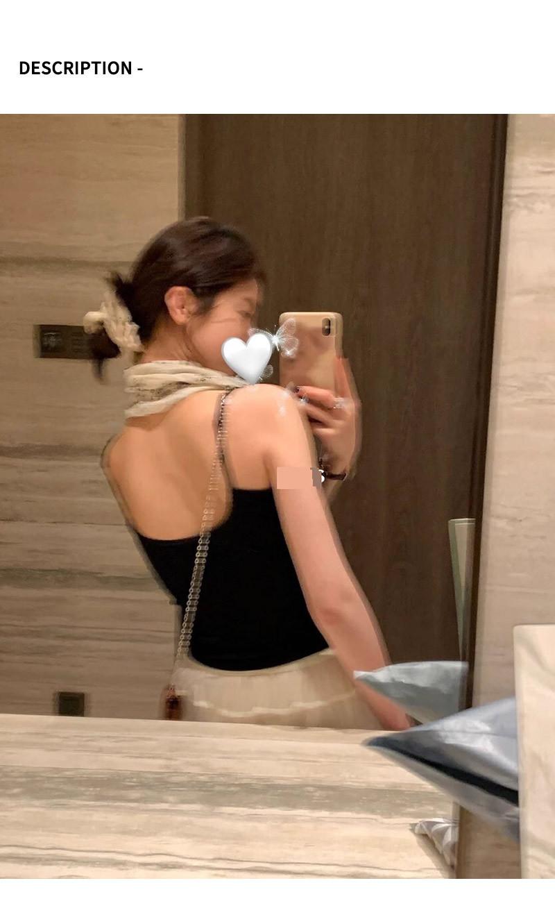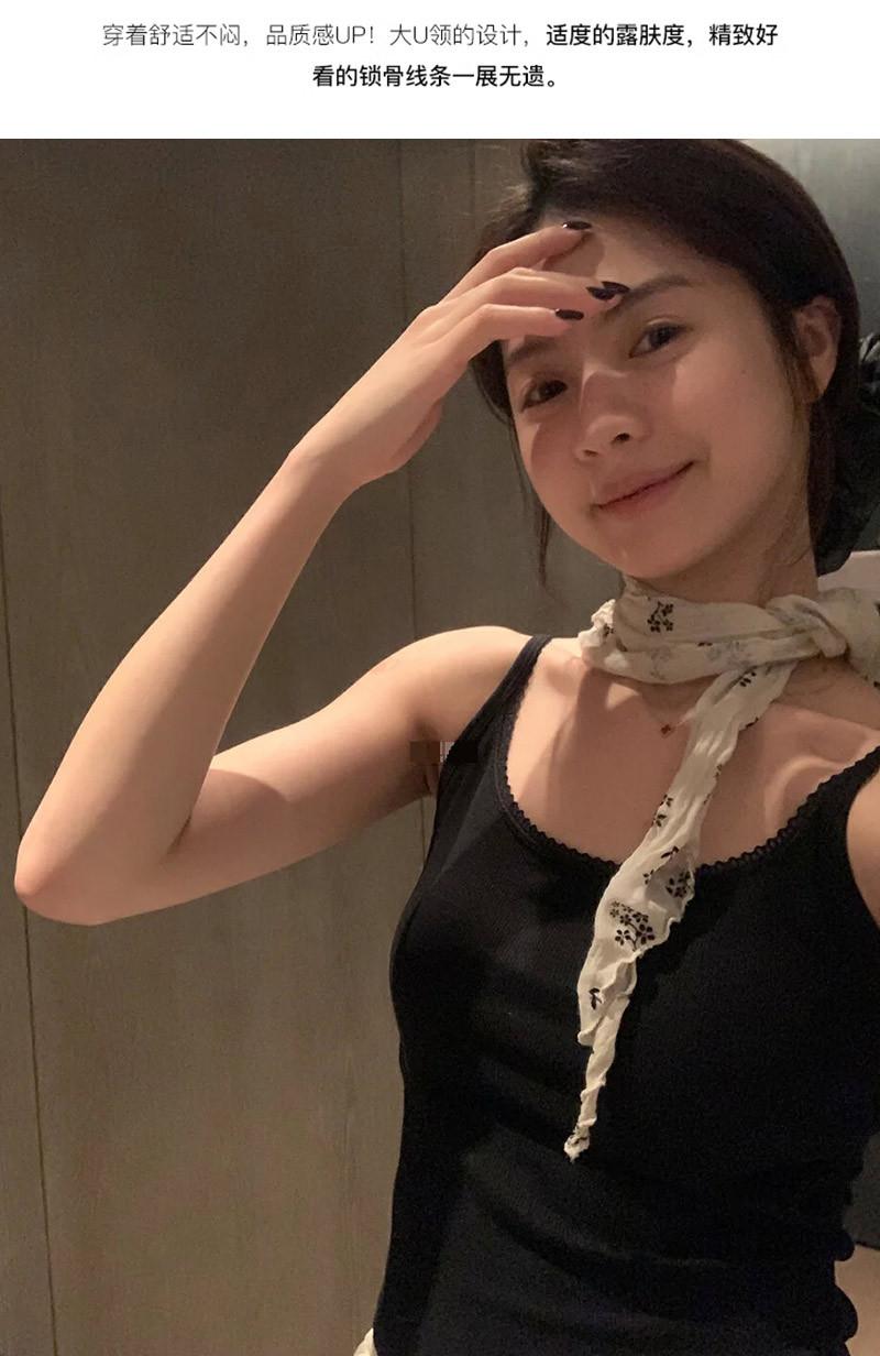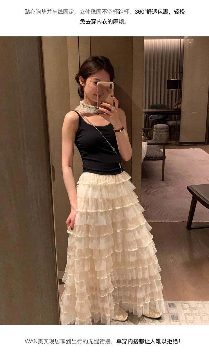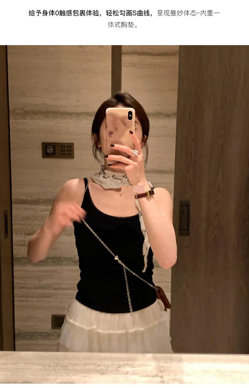 Chaleco pequeño de encaje estilo Deseo Puro Negro con tirantes para mujer, verano dulce y sexy, corte ajustado, top interior básico con almohadilla en el pecho, top exterior
