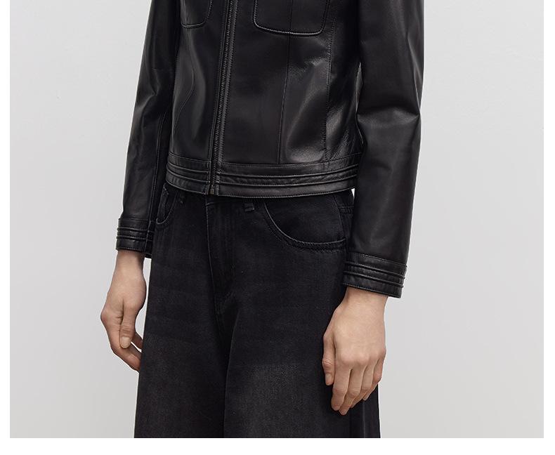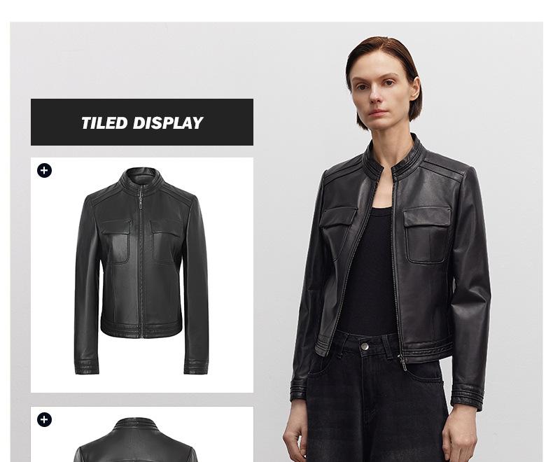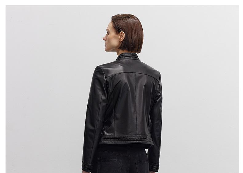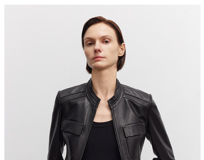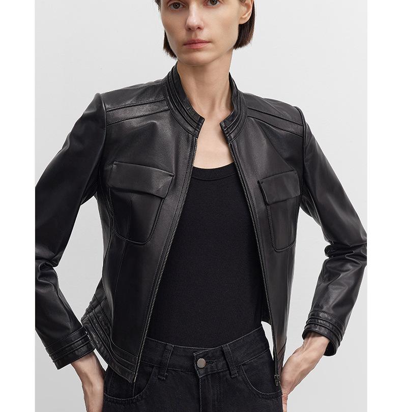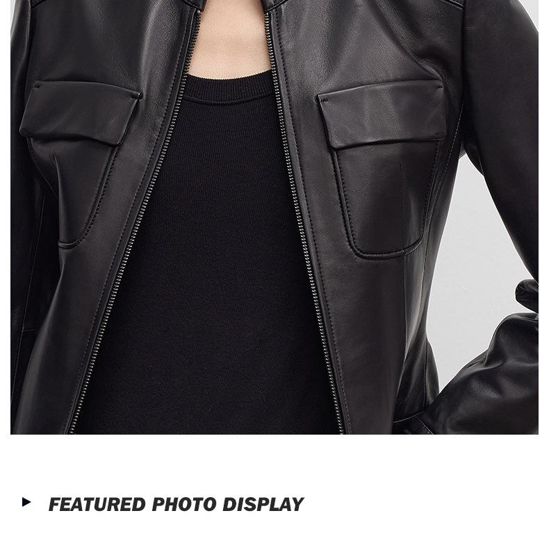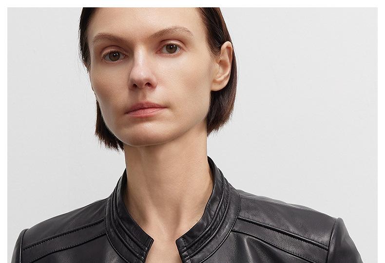 Compra Chaqueta Nueva de Primavera y Otoño de Piel de Oveja Haining Cuero Genuino para Mujer Corta con Cuello Mao Chaqueta de Cuero Negra para Mujer al por mayor en Joom.pro