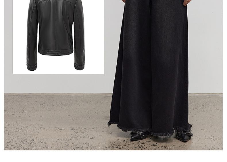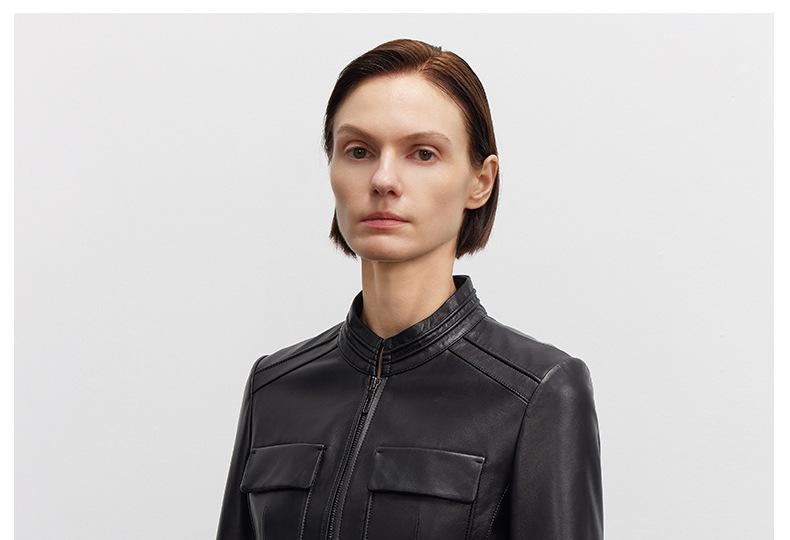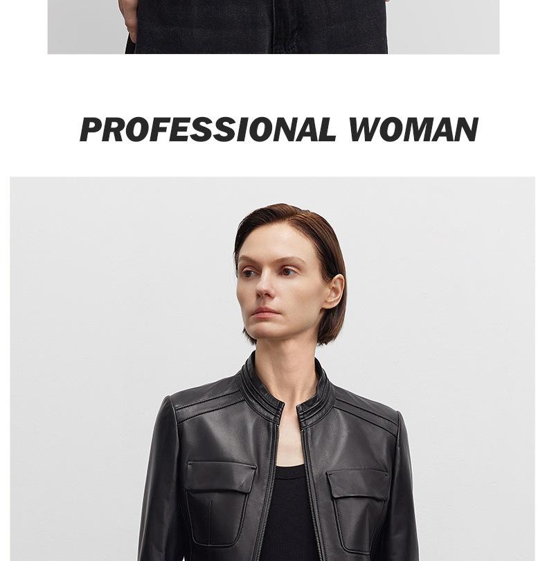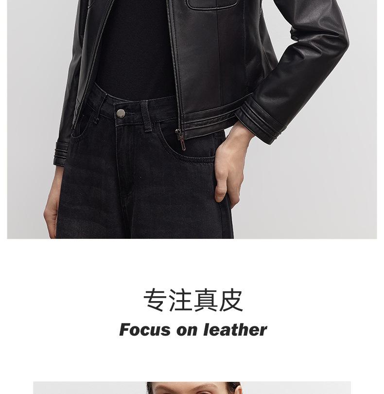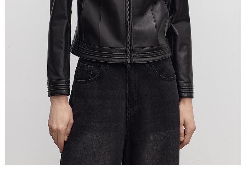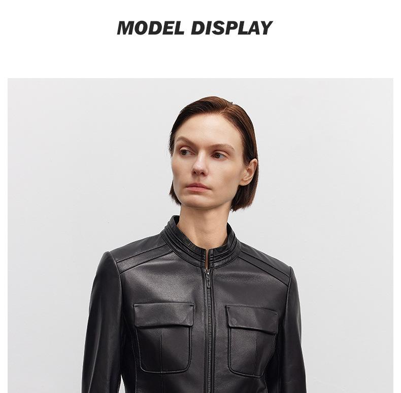 Compra Chaqueta Nueva de Primavera y Otoño de Piel de Oveja Haining Cuero Genuino para Mujer Corta con Cuello Mao Chaqueta de Cuero Negra para Mujer al por mayor en Joom.pro
