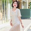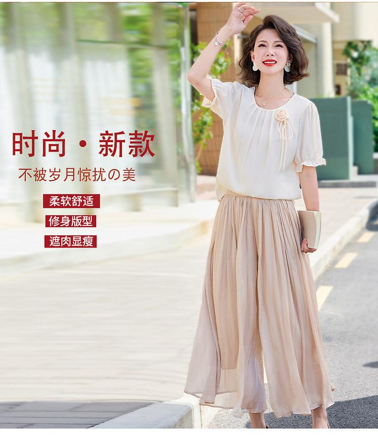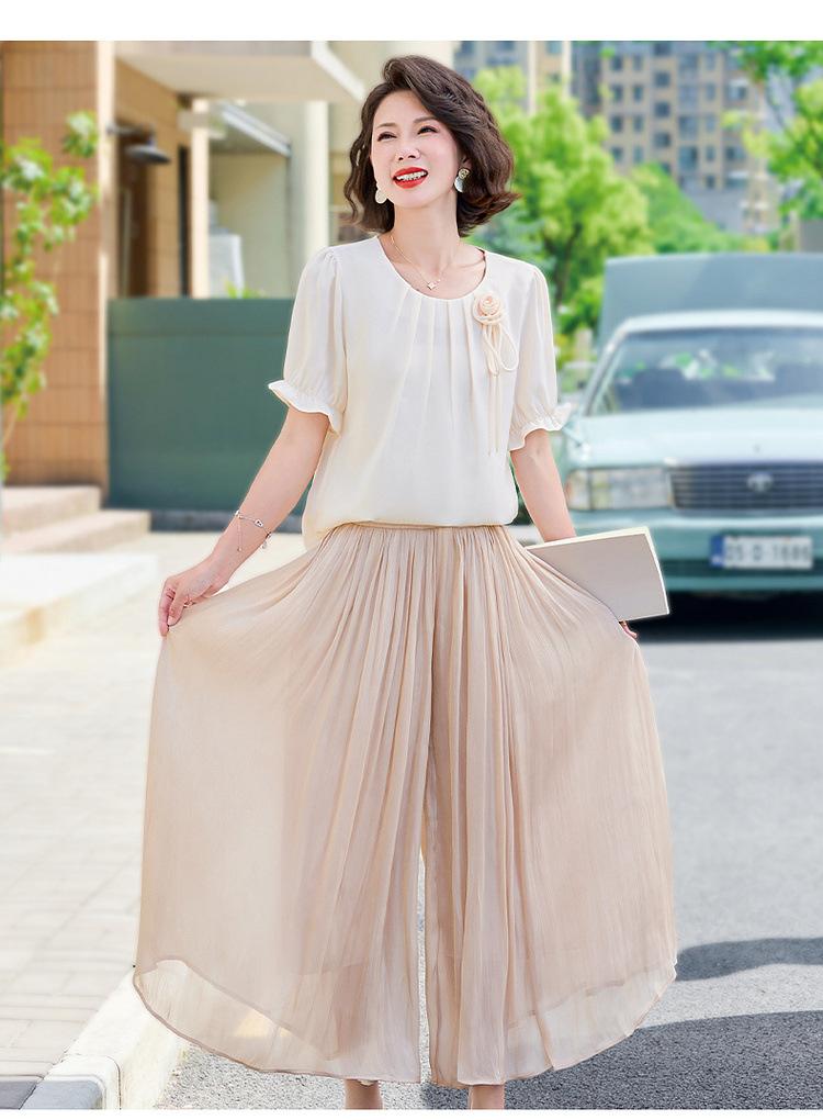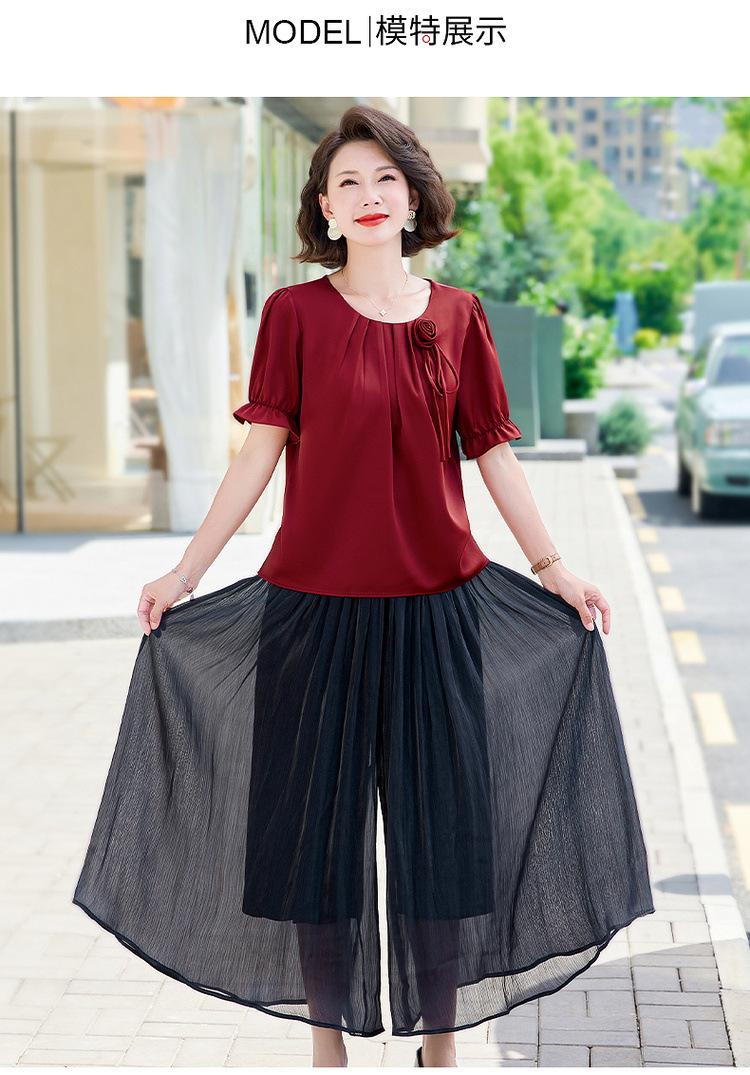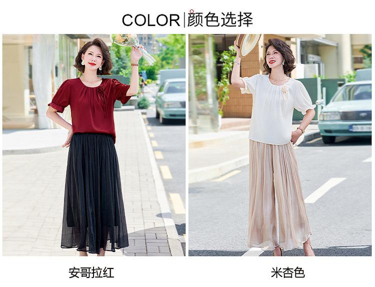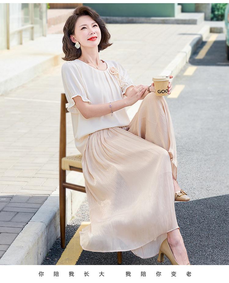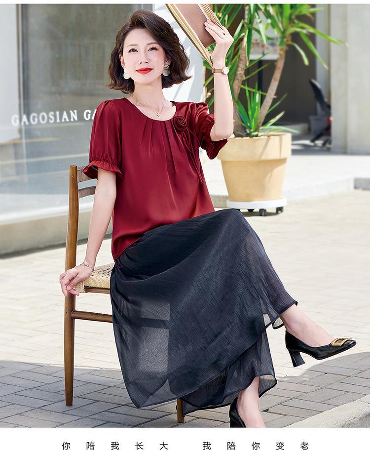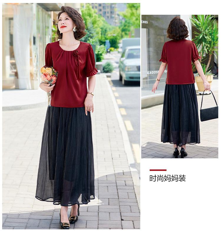 Conjunto de Camisa de Manga Corta y Falda de Moda de Verano para Mujeres de Mediana Edad, Nuevo Atuendo de Dos Piezas de Estilo Fresco
