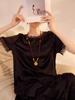 Moda Estilo Nacional Diseño de Encaje Top Negro Cuello Redondo Verano Nuevo Estilo Chino Camisa de Seda de Morera para Mujer Modelo Zx N3066