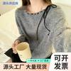 Suéter de Lana Virgen Peinada para Mujer 2025 Primavera y Otoño Nuevo de Alta Gama Manga Media Tejido Base Camisa Suelta Interior Suave Suéter Ceroso
