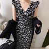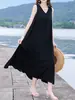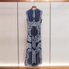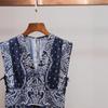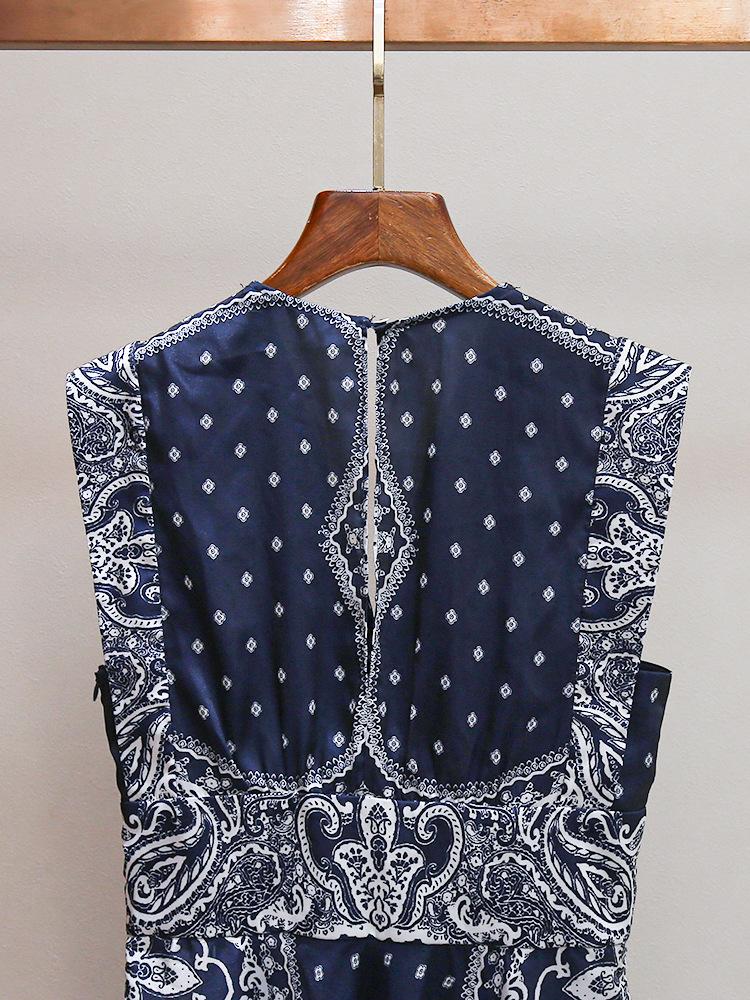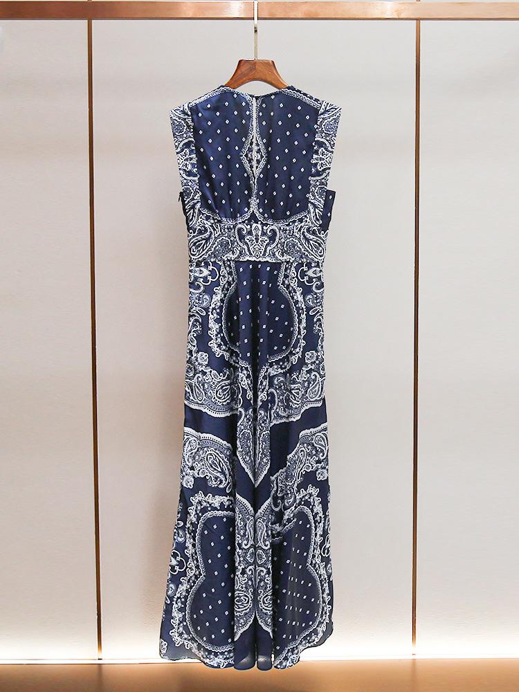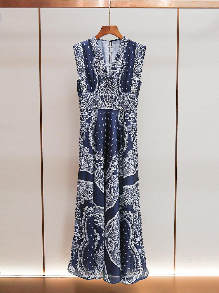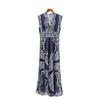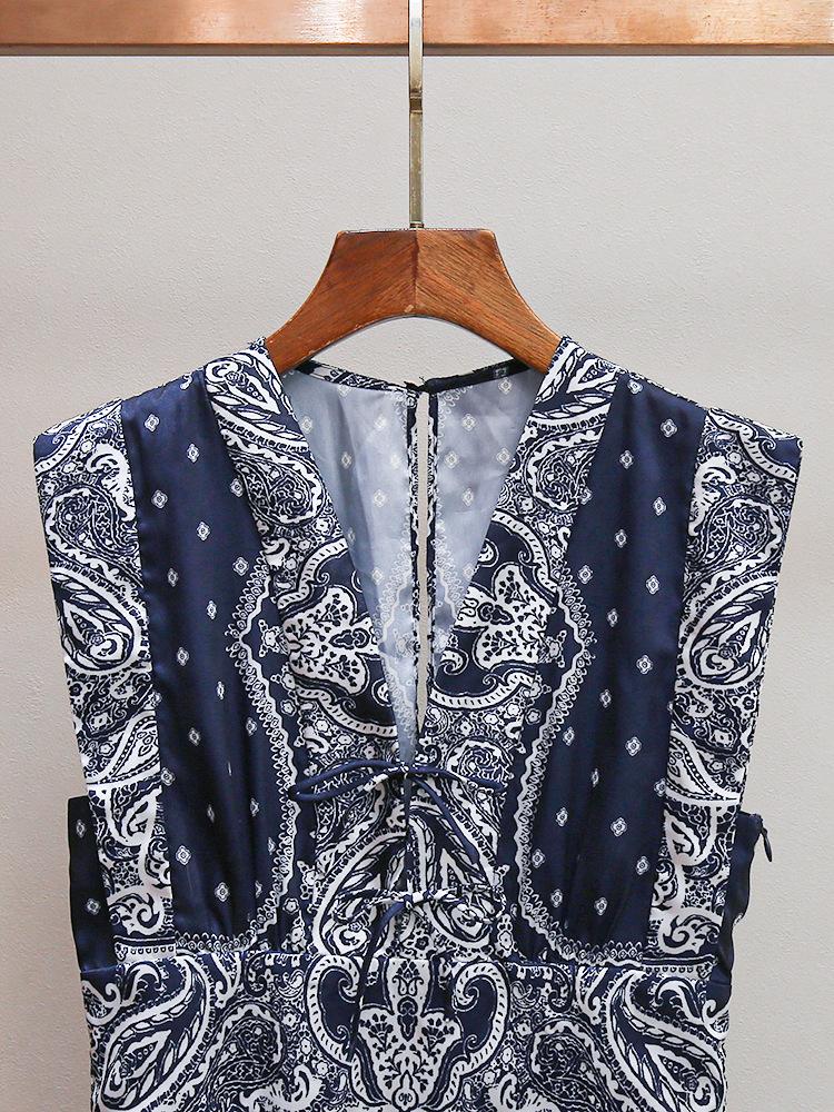 Nuevo Estilo de Verano de S Elegante Francés Estilo Étnico Sin Mangas Cuello en V Cintura Largo Corto Chaleco Vestido Estampado para Mujer