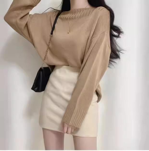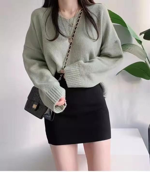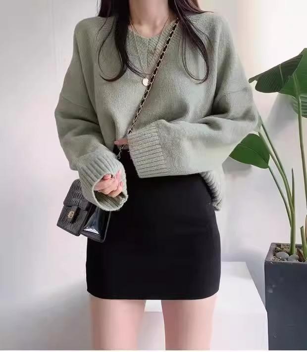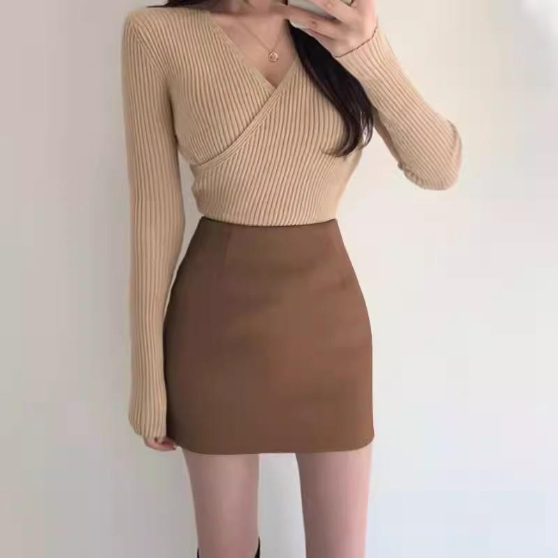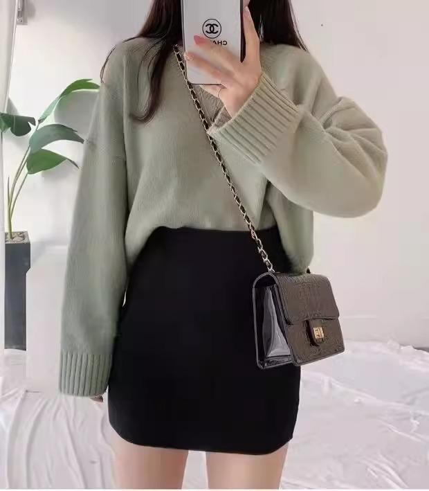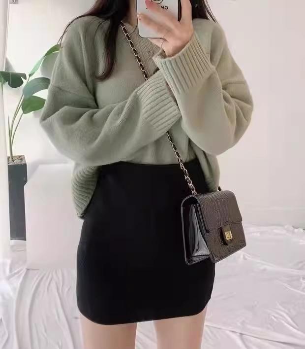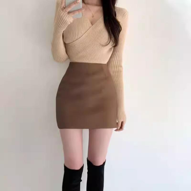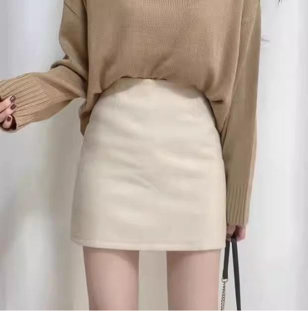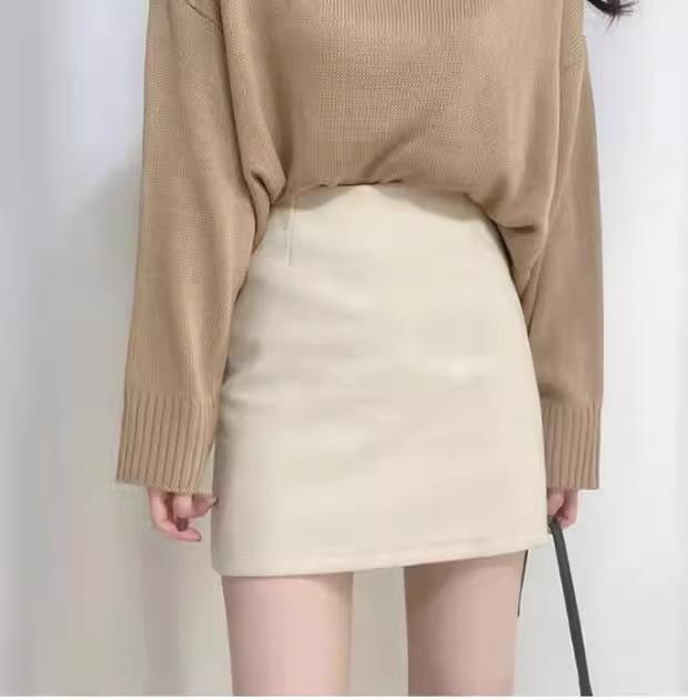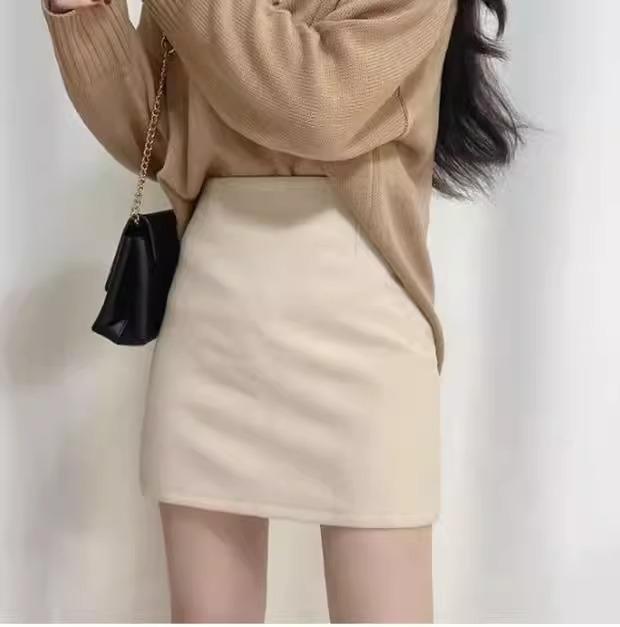 Falda Hip Pequeña Negra para Mujer Otoño Nuevo Cintura Alta Adelgazante Falda de un Paso Línea A Falda de Lana Talla XS