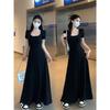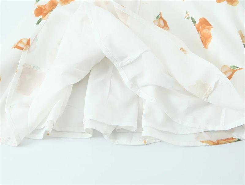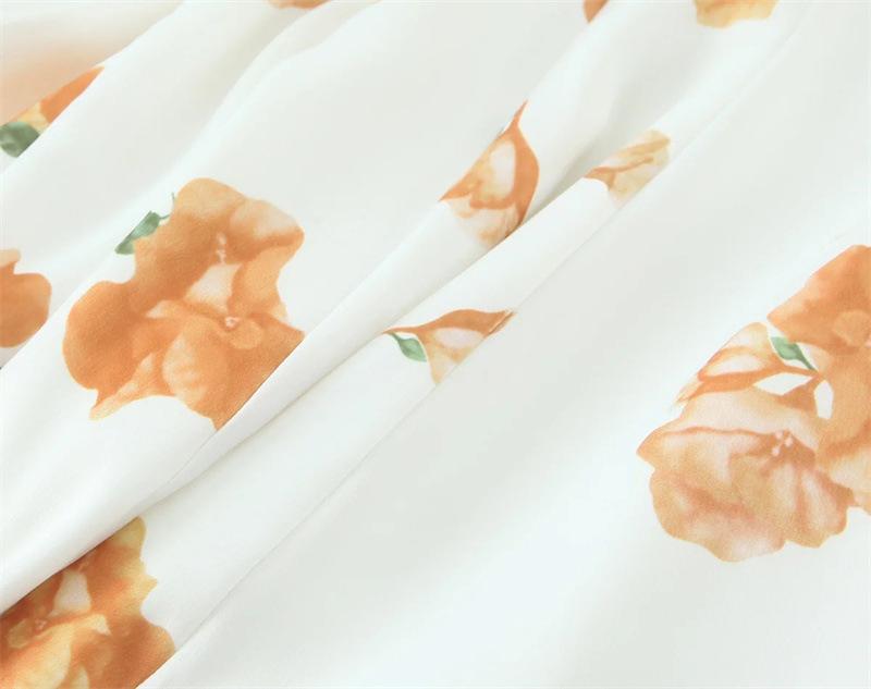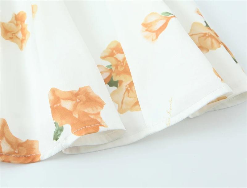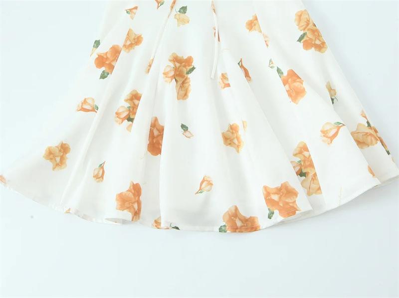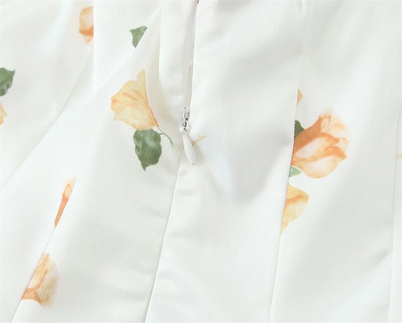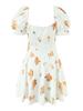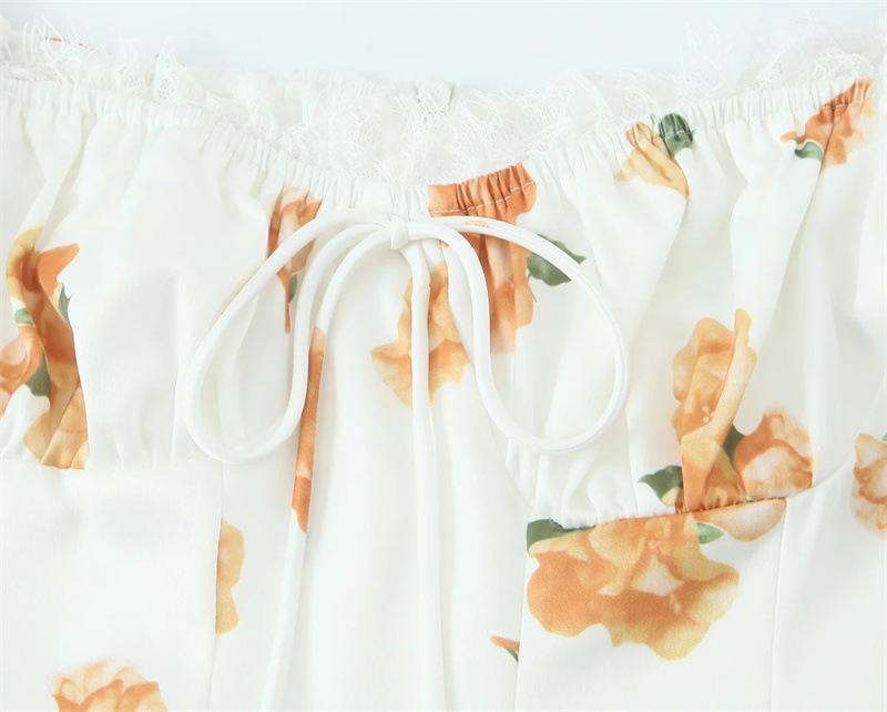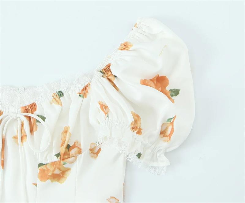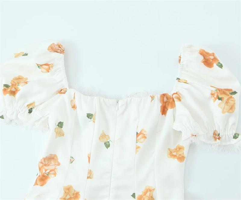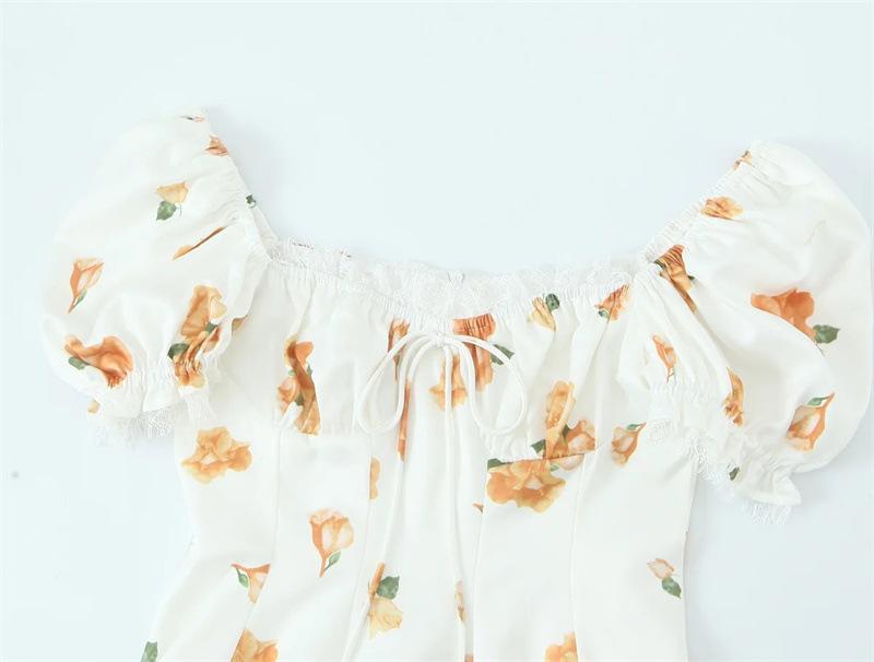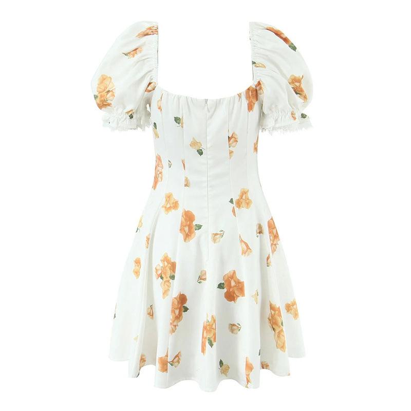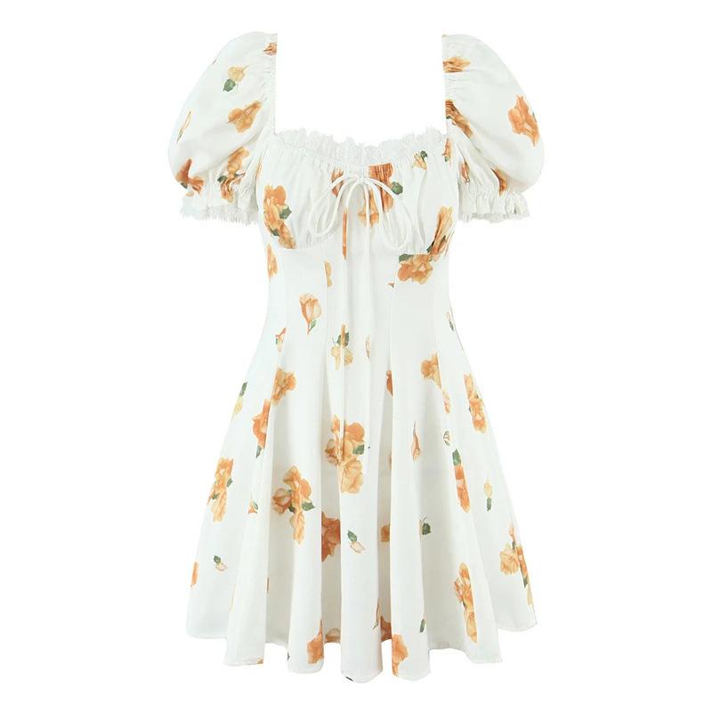 Vestido de Verano Nuevo Francés Retro Floral Encaje Empalmado Cuello Cuadrado Manga Abullonada Cintura Falda Ajustada