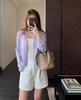 Cárdigan corto con cuello en V y tapeta con volantes, un cárdigan rebosante de feminidad