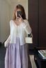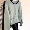 La tapeta del cárdigan utiliza un proceso de borde lechuga de doble capa + un denso proceso de tres hilos