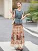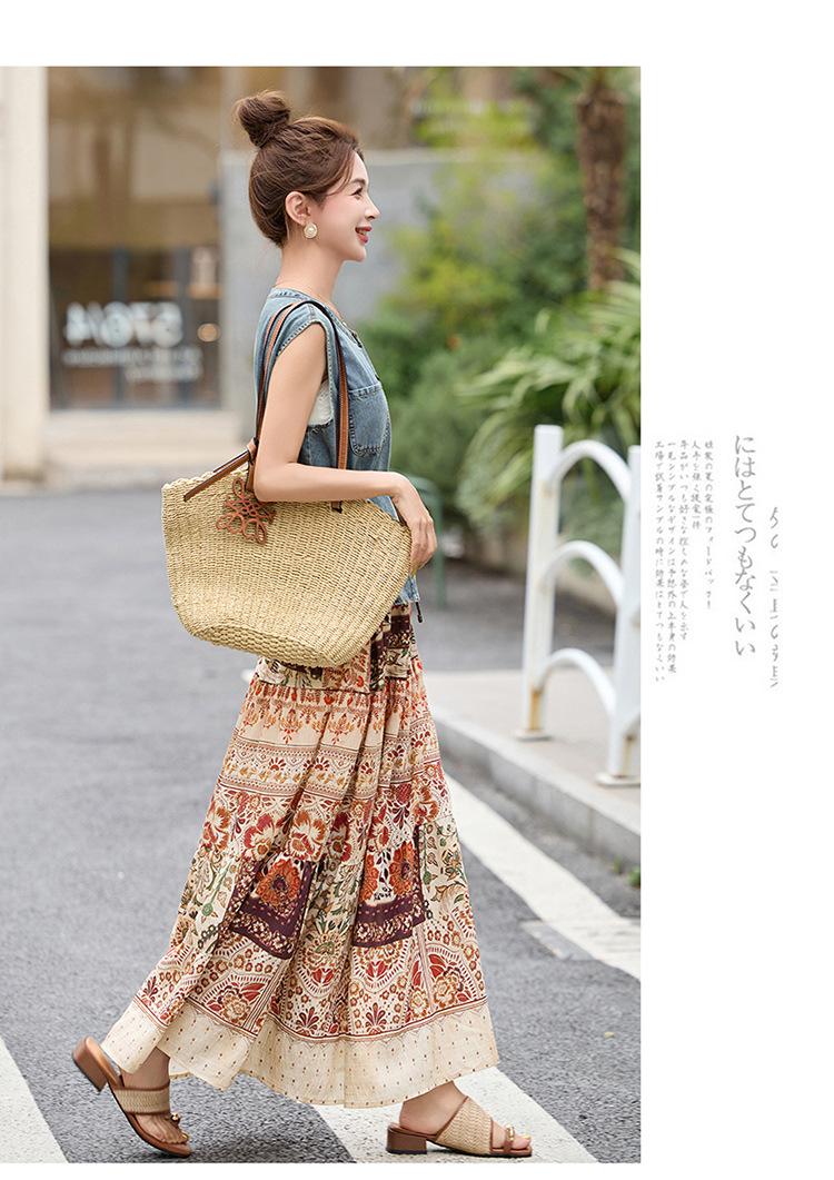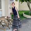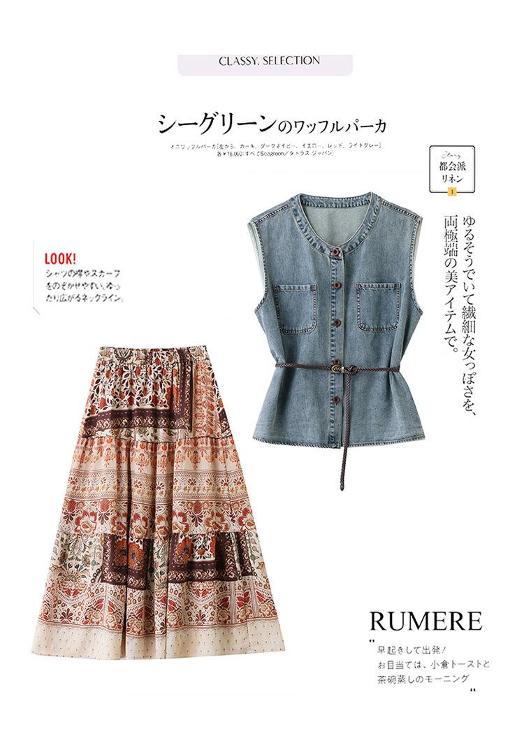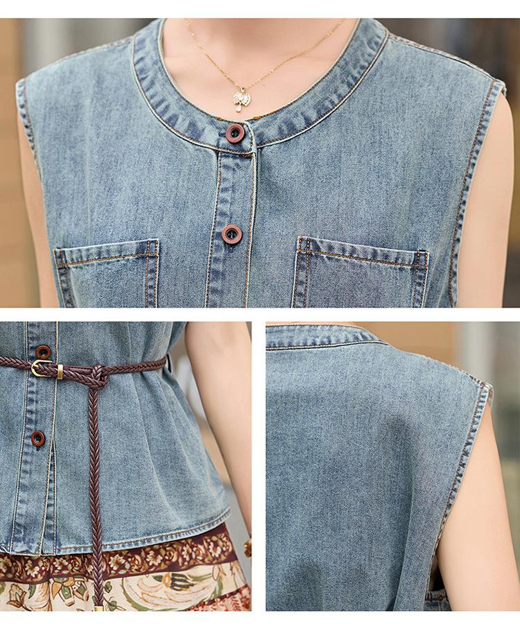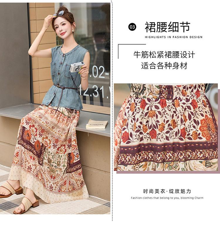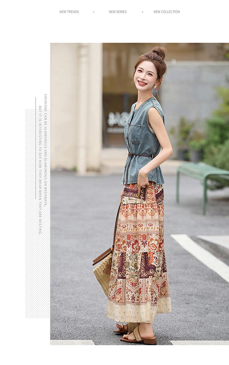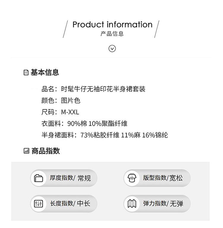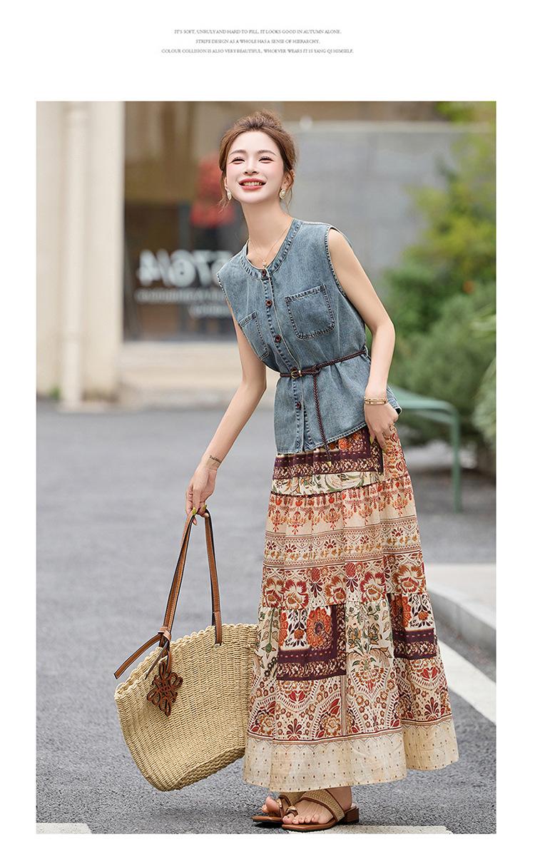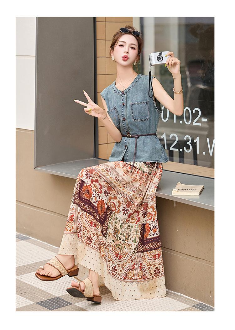 2025 Nueva Moda de Verano Casual Versátil Reductor de Edad Cómodo Amigable con la Piel Denim Sin Mangas Estampado Traje de Falda