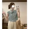 Chamarra de mezclilla rosa corta 2025 Nuevo estilo coreano Vestido holgado para mujer con estilo ligero y maduro para damas