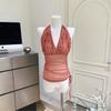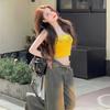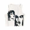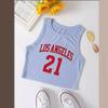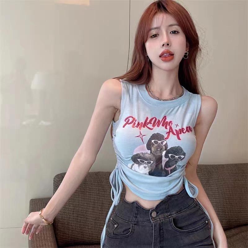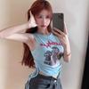 Top Chic Retro Americano Dulce Sexy Ajustado Diseño de Verano Camiseta sin Mangas Chaleco Estampado con Letras