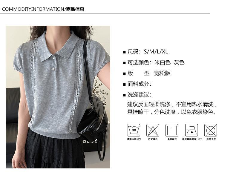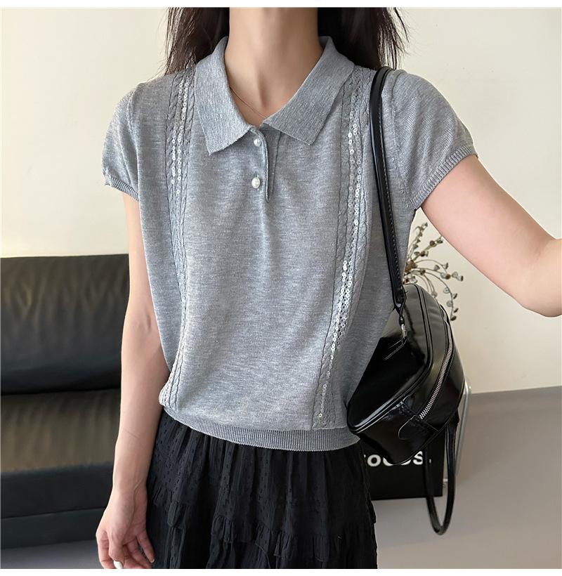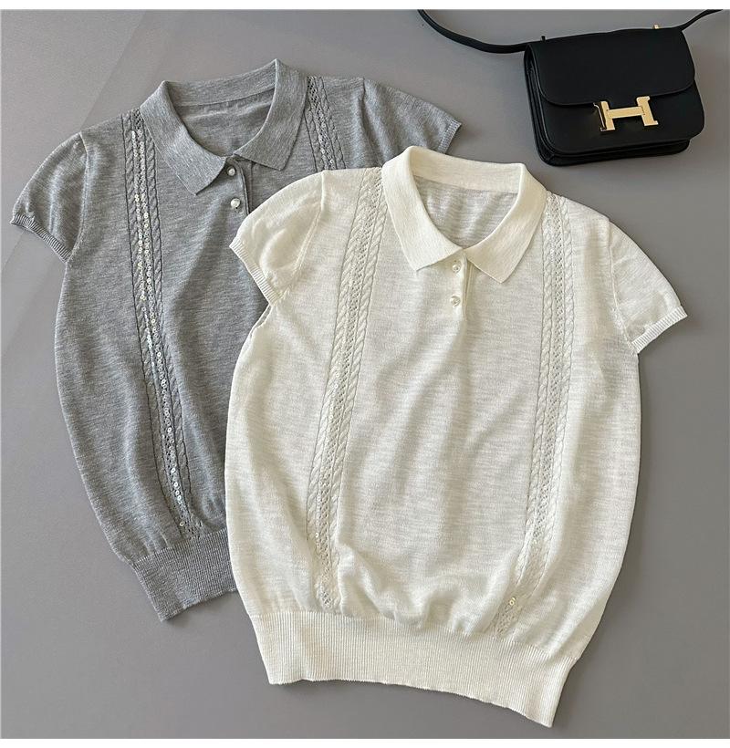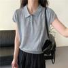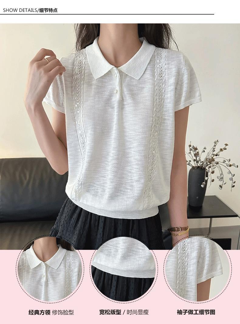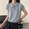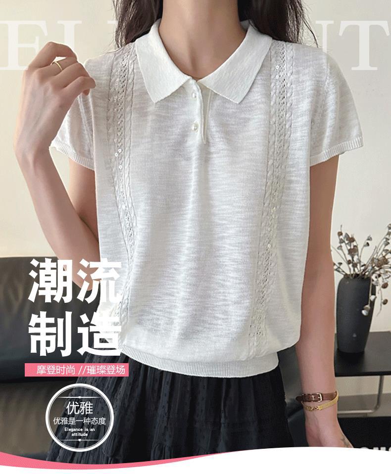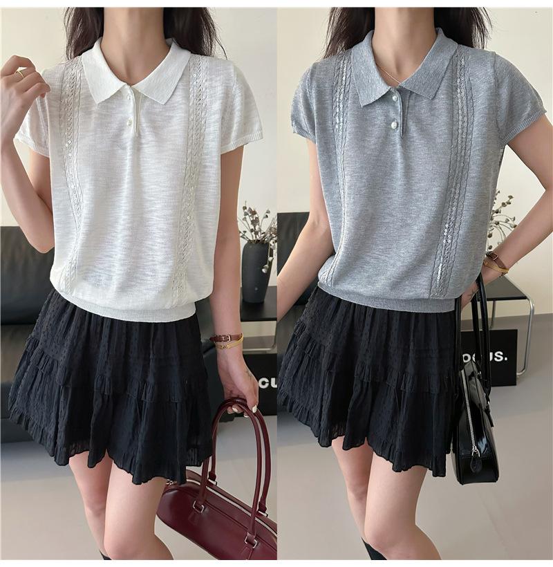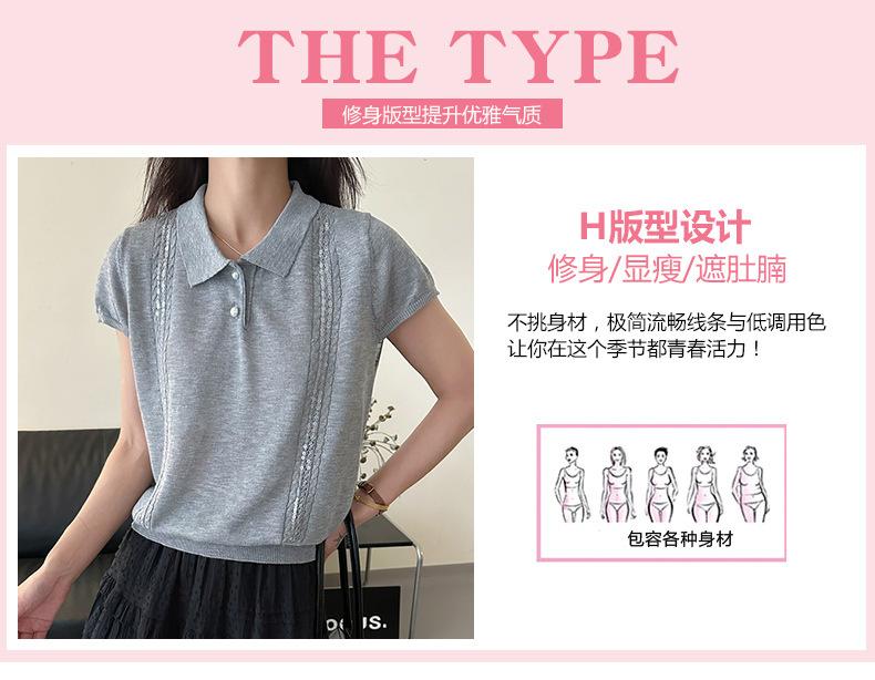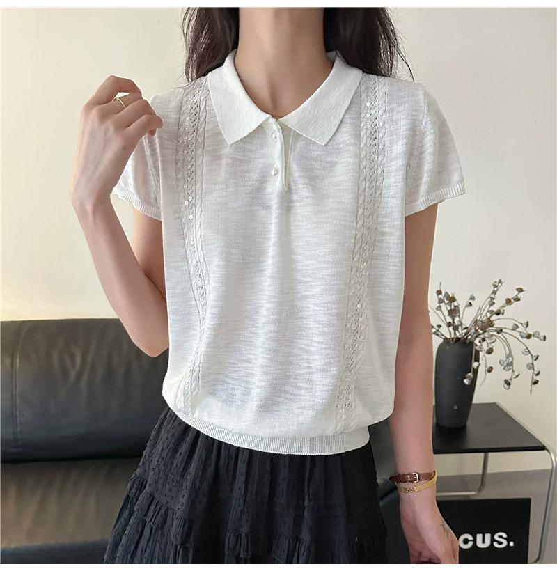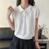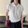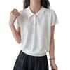 Verano Simple Delgado Blanco Cuello Polo Seda de Hielo Manga Corta para Mujer 2025 Nuevo Diseño Top de Punto para Mujer