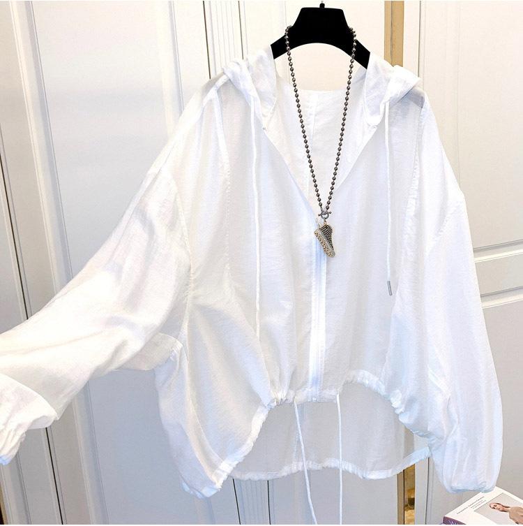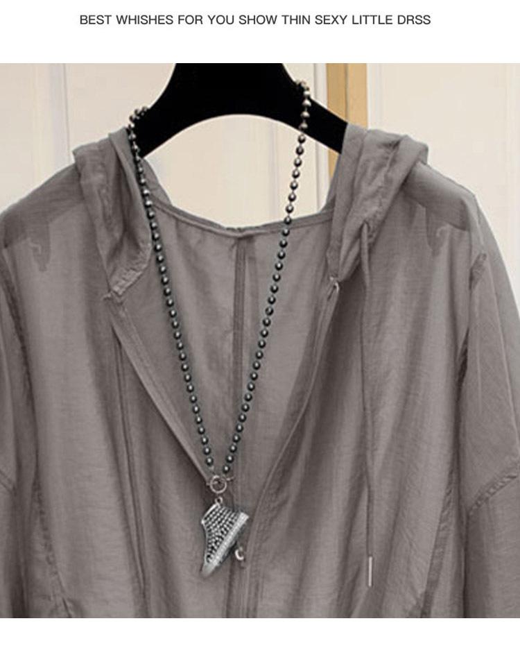 2025 Nuevo Verano Seda de Hielo Ligero Ropa de Protección Solar Chaqueta Ligera para Mujer Camisa Holgada Adelgazante de Protección Solar Top con Capucha para Mujer