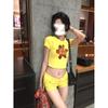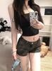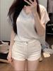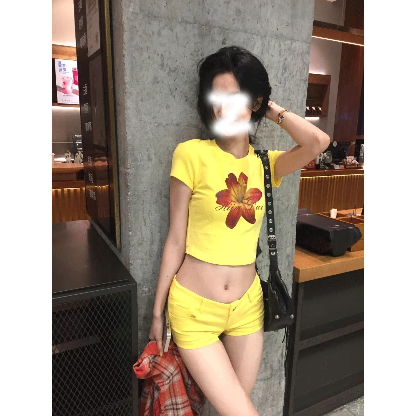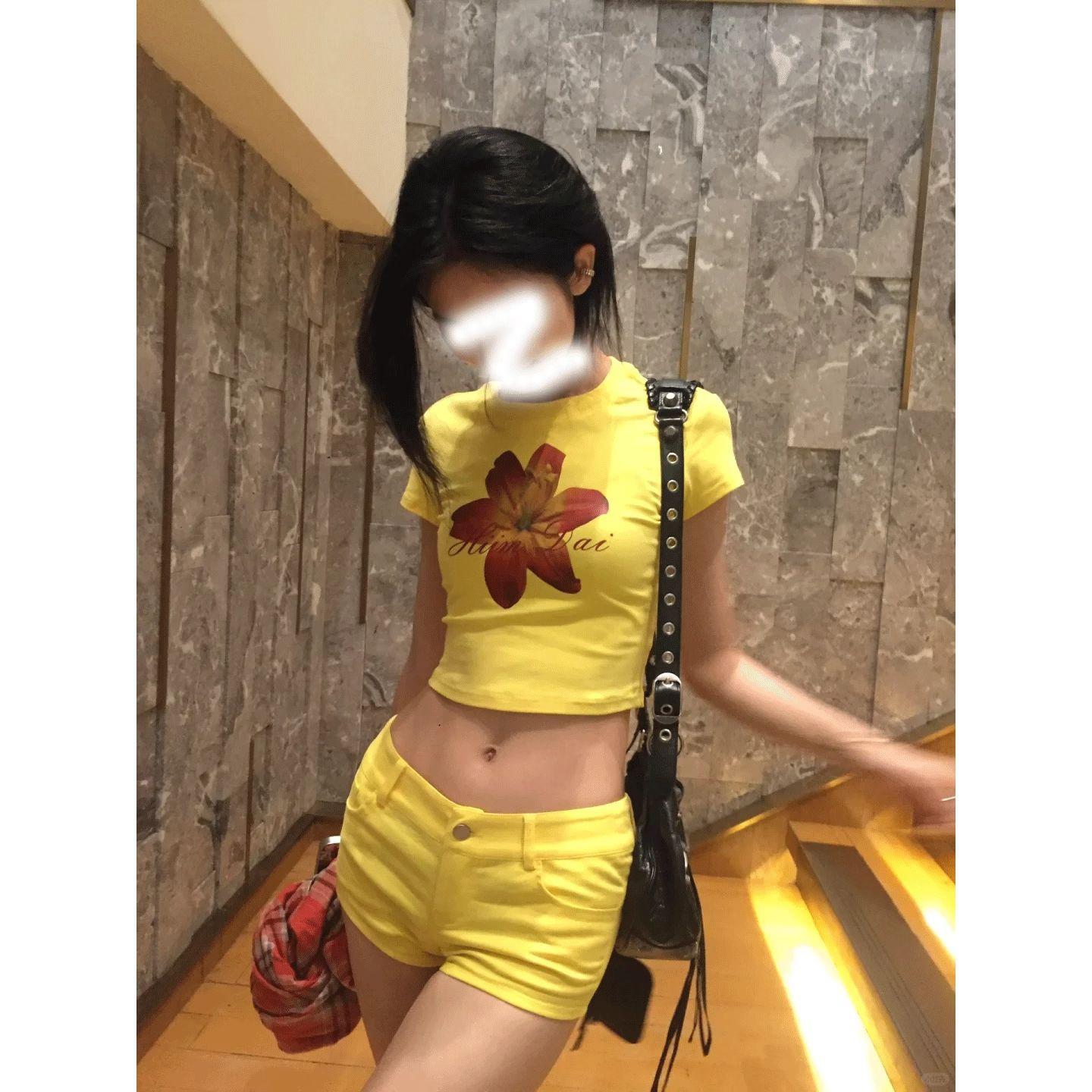 Shorts de mezclilla amarillos ajustados de cintura baja para mujer en verano, look adelgazante y ceñidos a la cadera, línea A elásticos